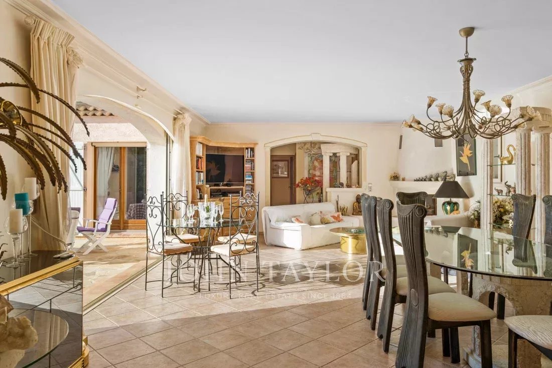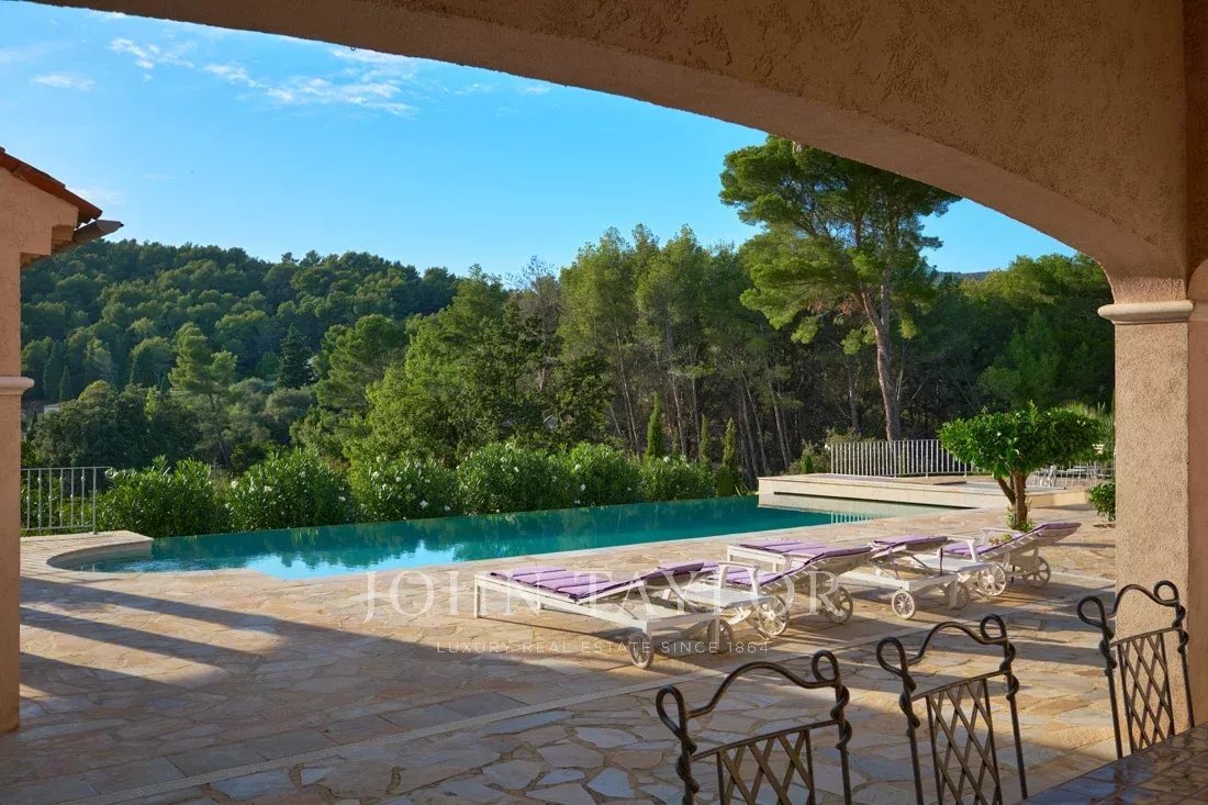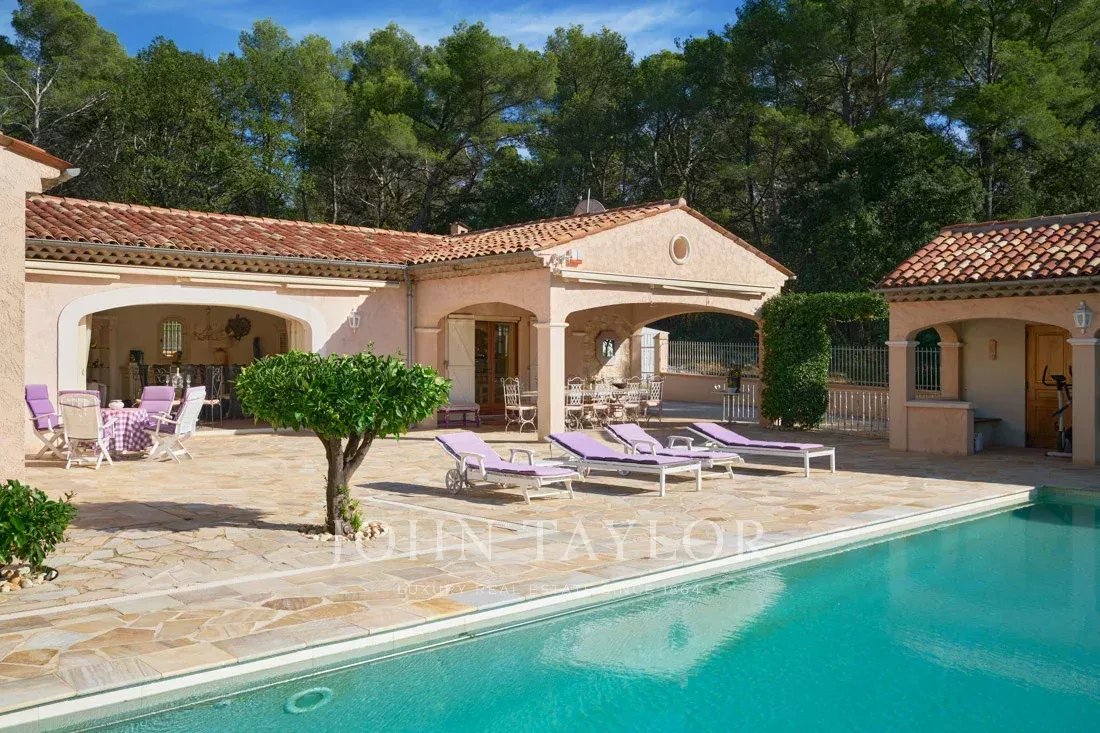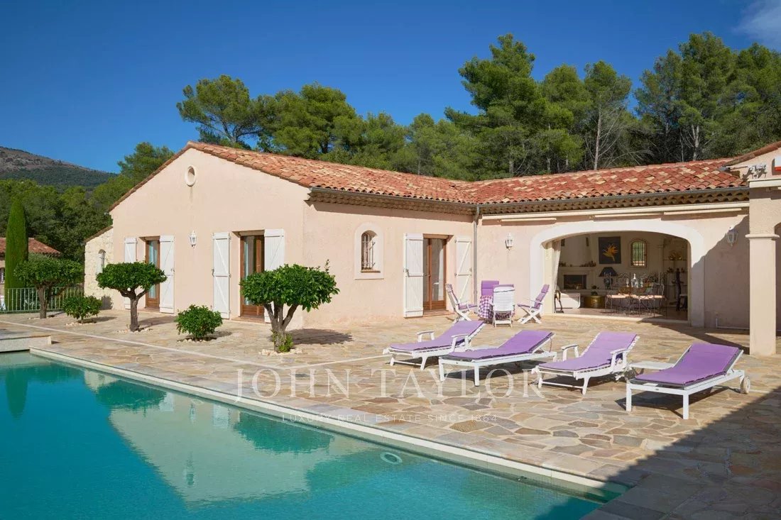 A grande sala de estar/jantar e a bonita cozinha provençal abrem-se através de portas de correr para um enorme terraço parcialmente coberto e uma grande piscina com casa de piscina totalmente equipada.
