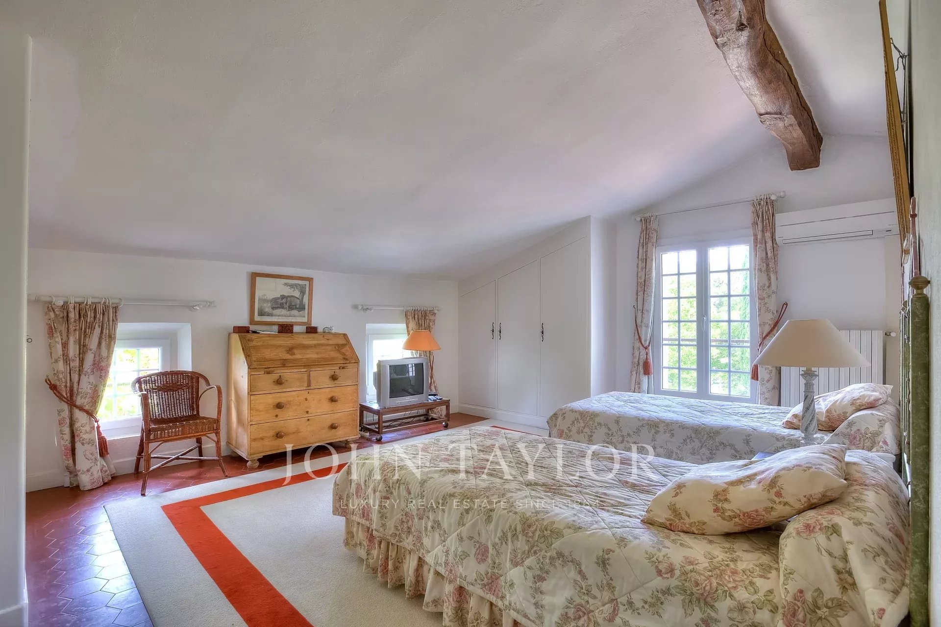 Uma soberba piscina retangular de 63 m², uma casa de piscina adjacente de 47 m², um campo de ténis e um heliporto completam esta propriedade excecional, uma propriedade perfeitamente mantida com vista para o campo de Grasse.