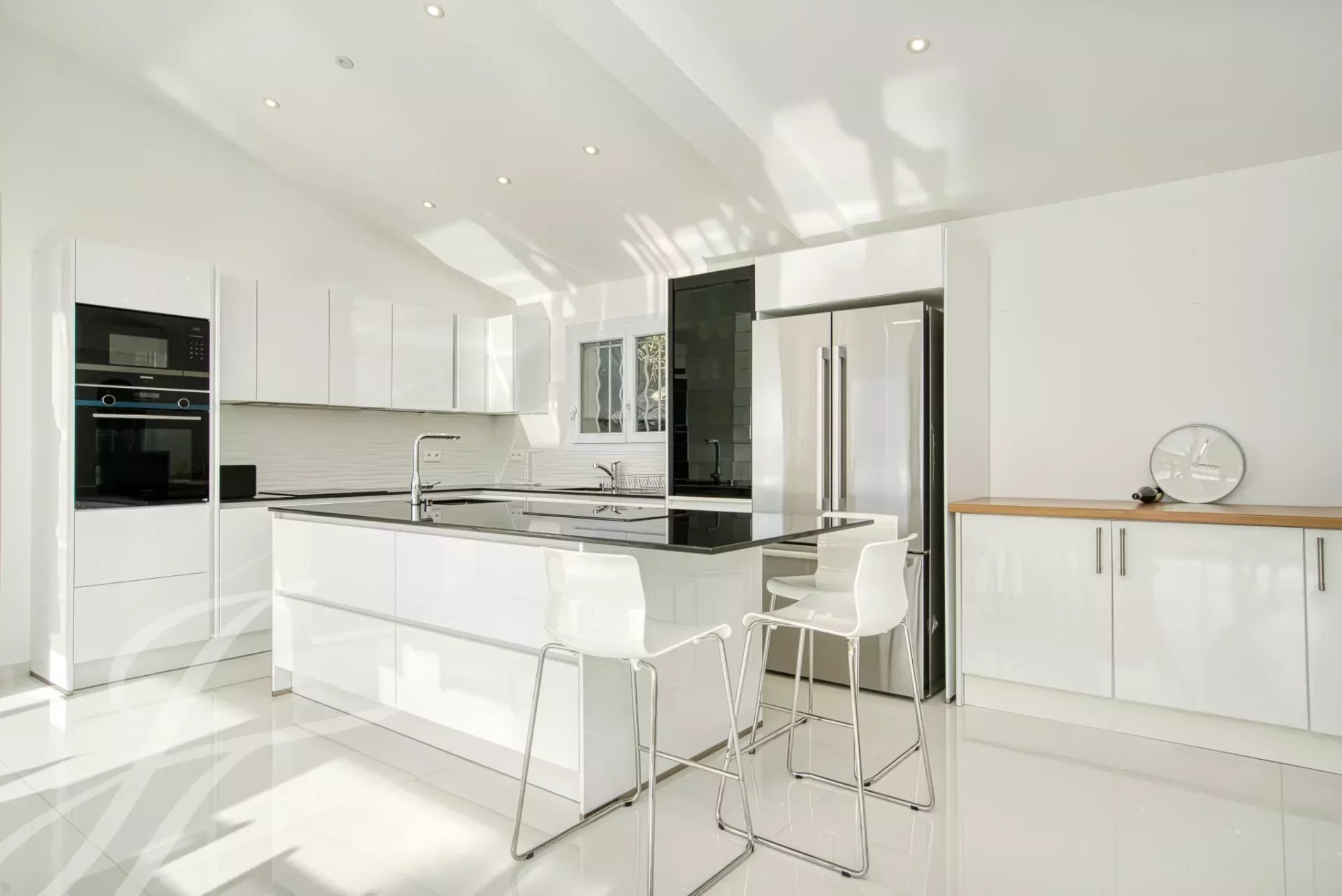 Renovada em 2023, a moradia está inserida num terreno de mais de 1.500 m2 plantado com árvores mediterrânicas. Inclui um jardim, terraços bem expostos, estacionamento, uma garagem de 35 m2 e uma bela piscina.