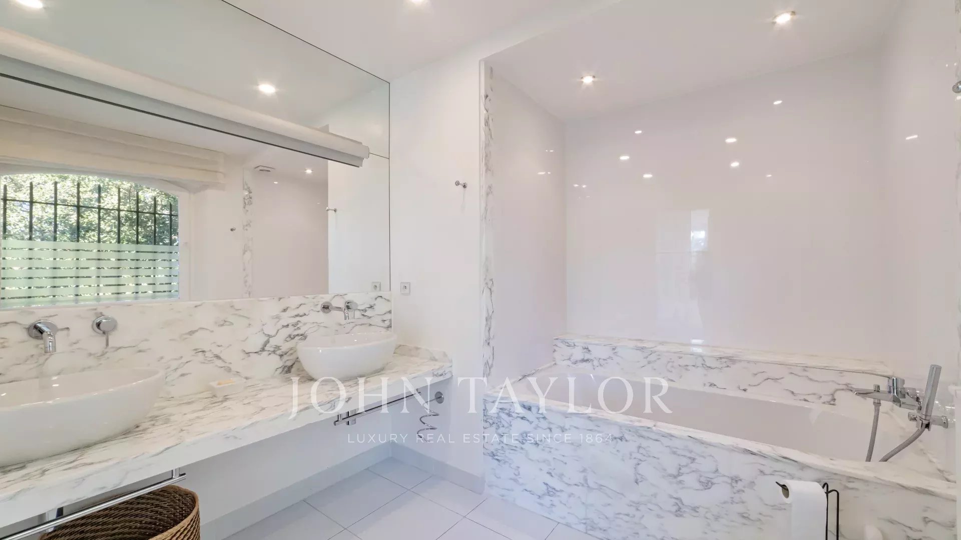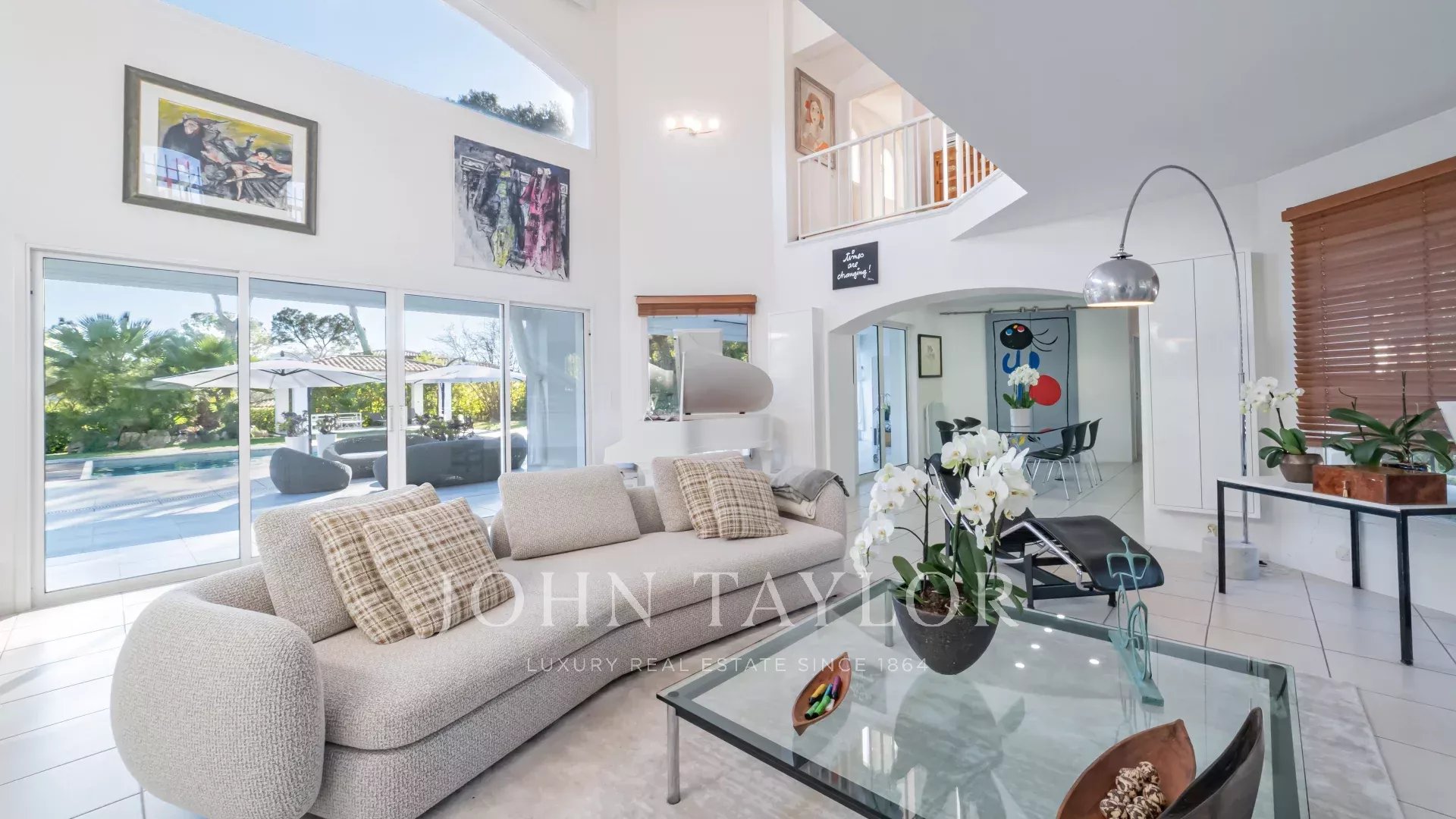 Construída no coração de um parque paisagístico de 2.400 m², revela espaços de recepção notáveis, sublimados por uma espetacular sala de estar catedral envidraçada, que se abre harmoniosamente para o exterior e a piscina.