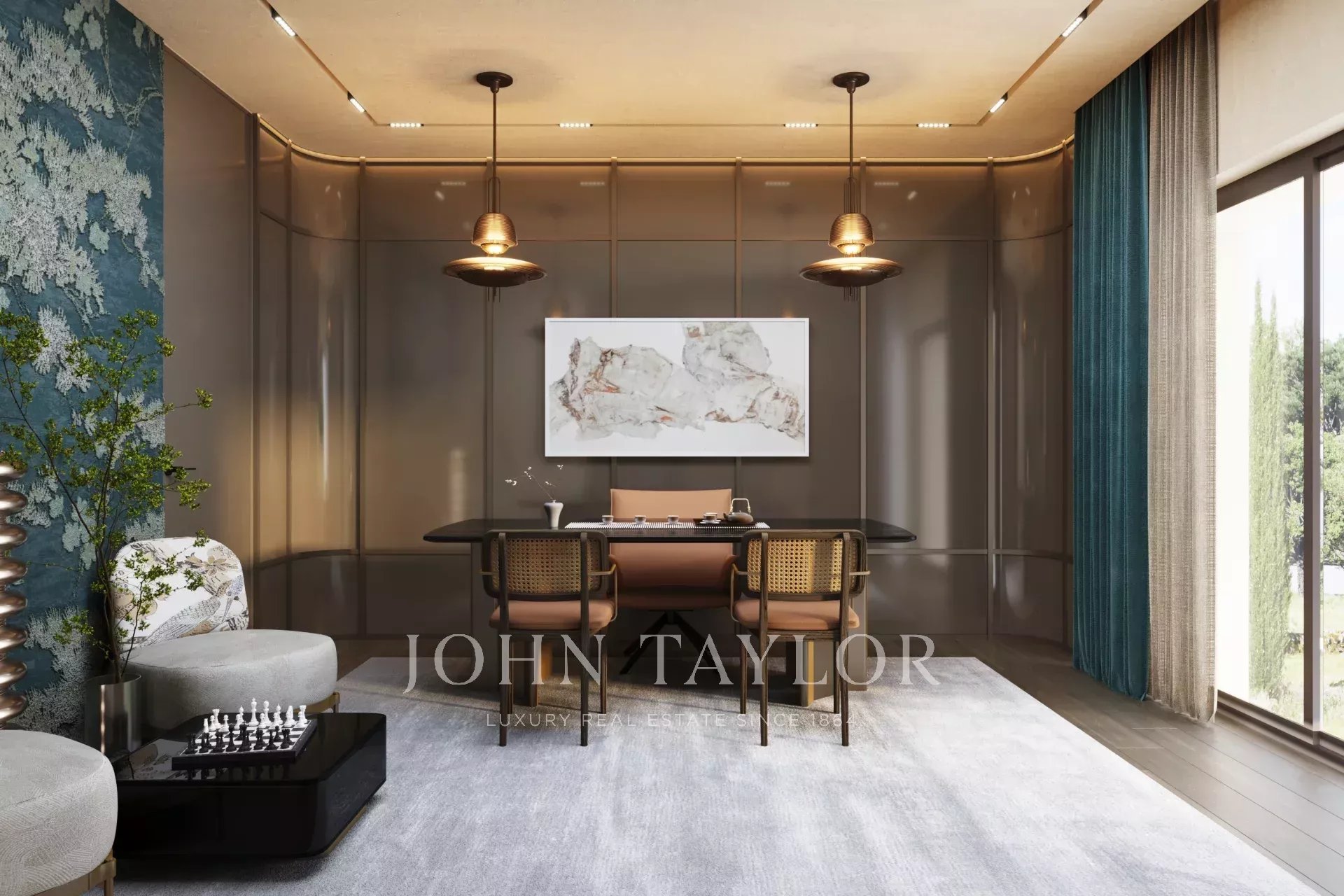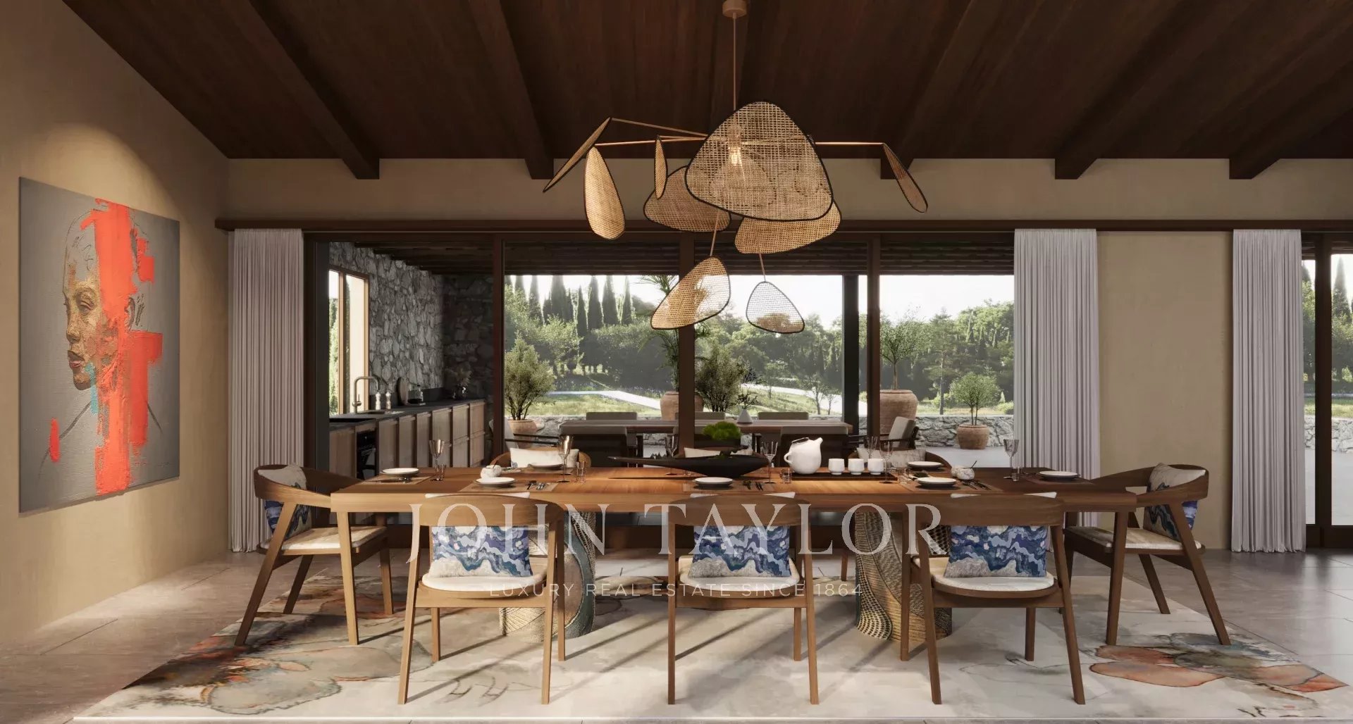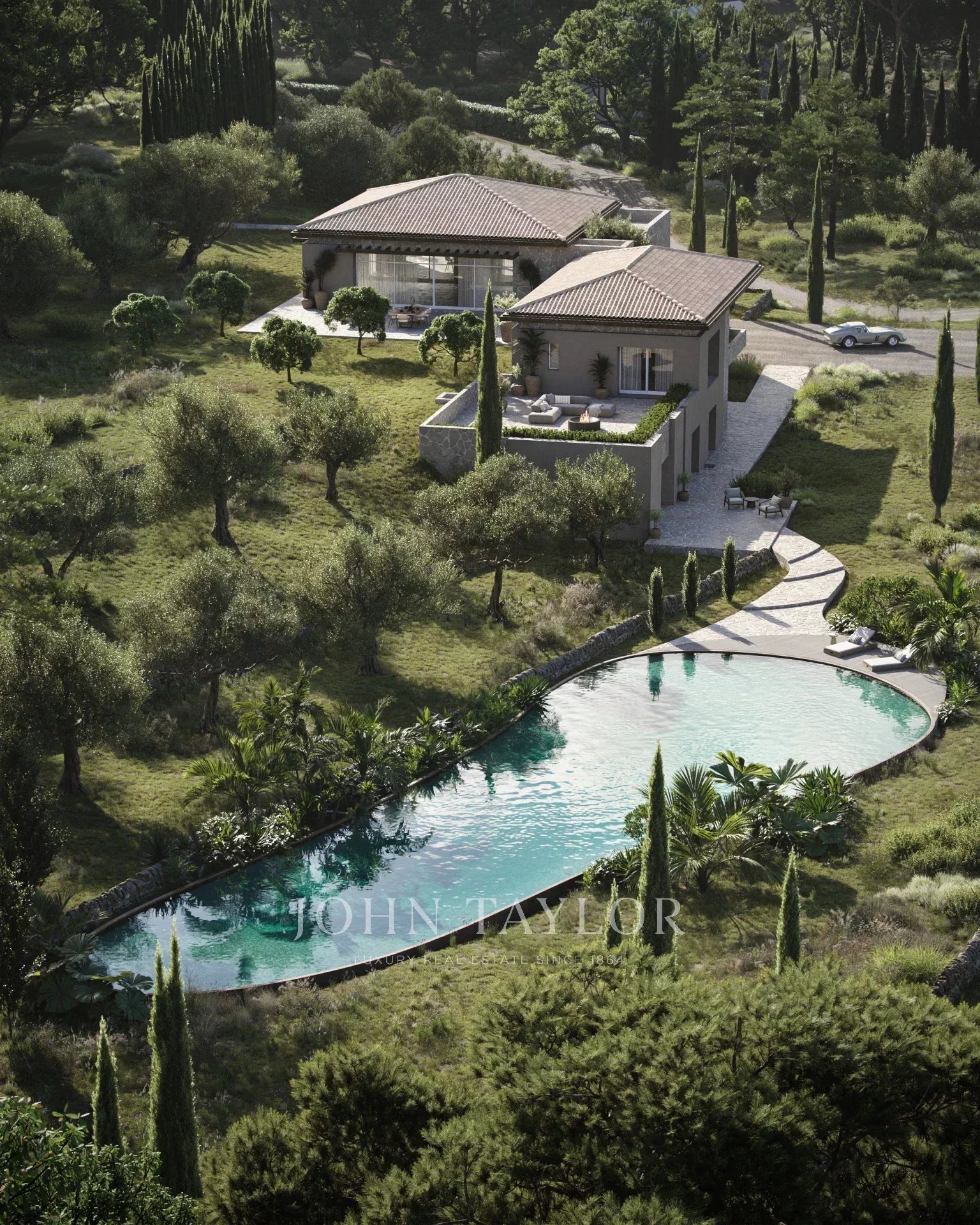 Com cerca de 772 m2, a propriedade oferece volumes generosos, com tectos altos, uma vasta sala de receção, 7 quartos em suite e numerosos anexos, incluindo um spa privado, um ginásio e uma vasta garagem.