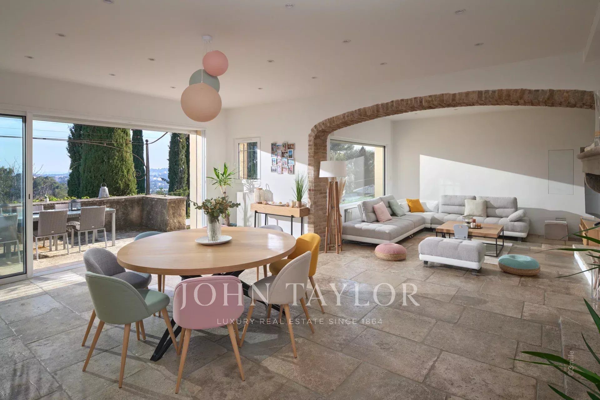 Excelente oportunidade: localizada numa das zonas mais bonitas de Mougins, perto das lojas e da aldeia antiga, esta casa grande e encantadora de cerca de 285 m2 goza de vistas panorâmicas sobre o mar e as colinas.