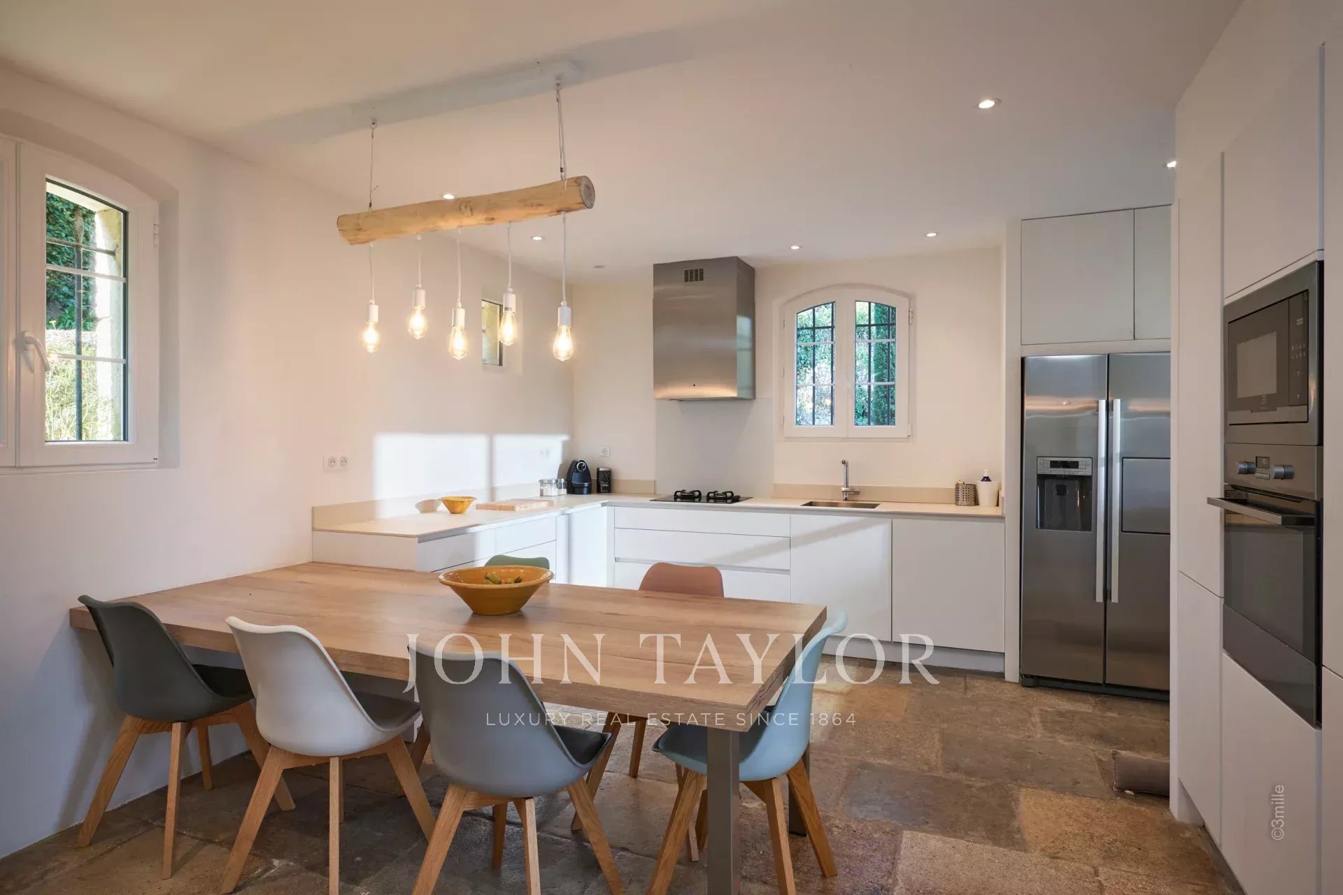 Renovada em 2020, a casa oferece caraterísticas interiores modernas, mantendo o seu encanto original. É composta por 1 quarto em suite no rés do chão, 3 quartos no andar de cima, incluindo um quarto principal em suite, prolongado por um terraço encantador, e um estúdio confortável no nível do jardim.