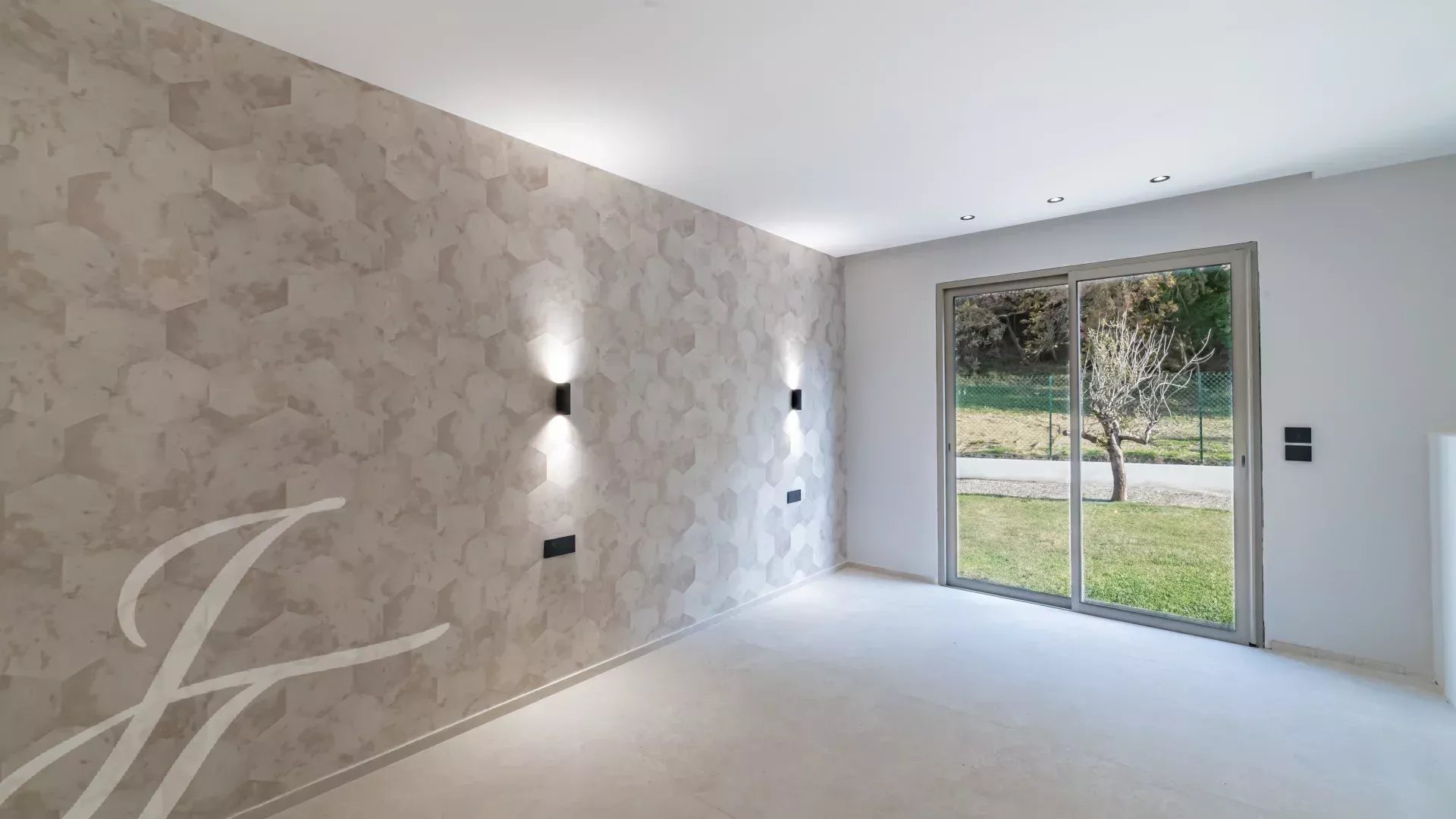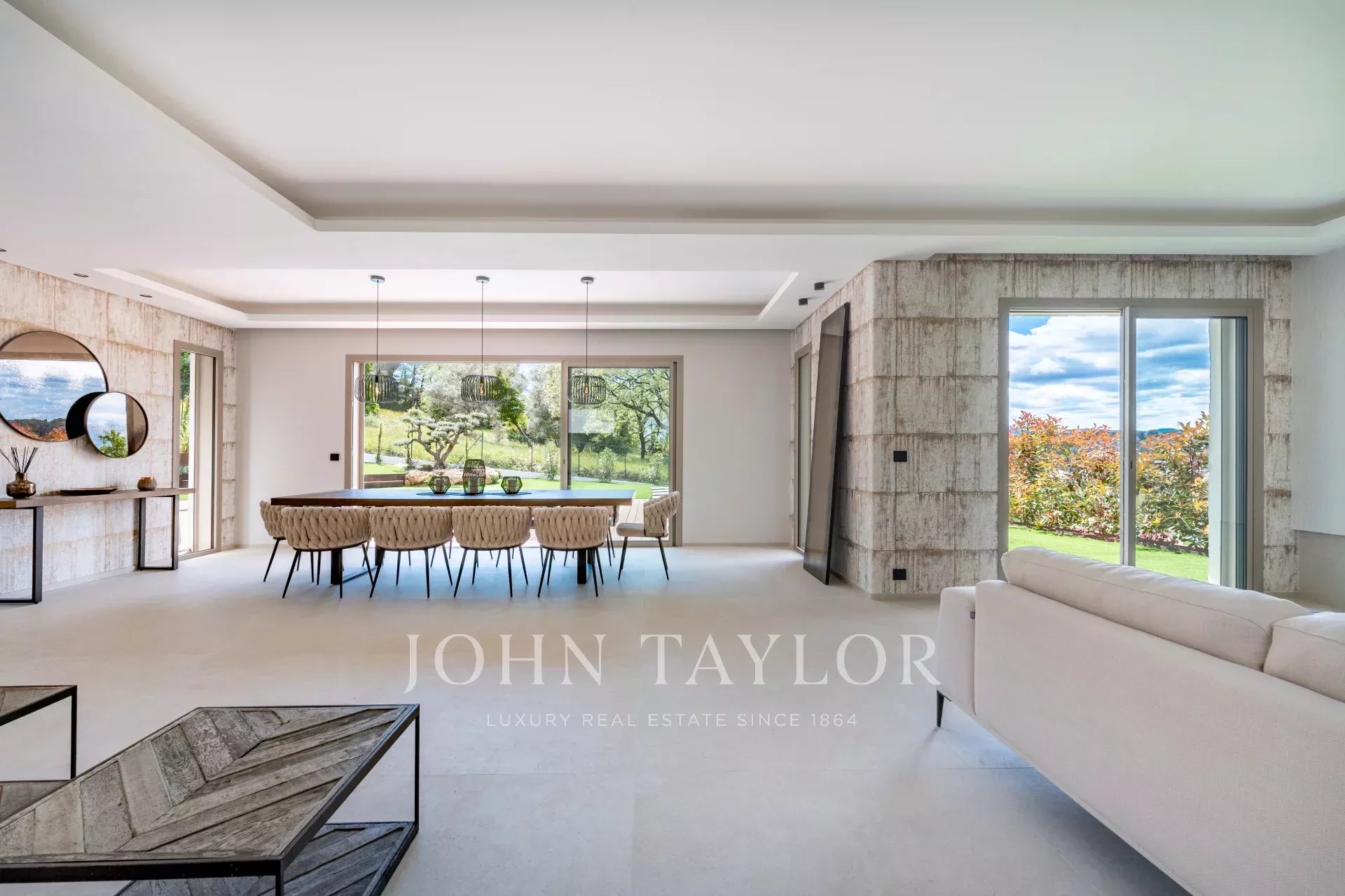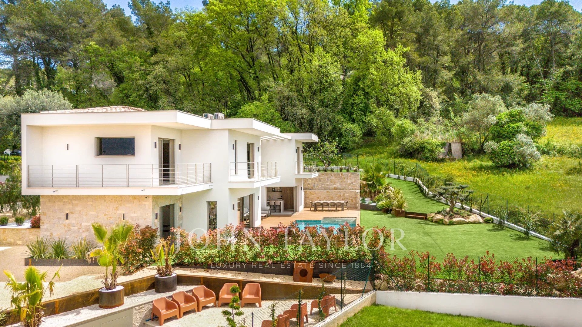 Com ar condicionado para total conforto em todas as estações, a propriedade está situada em 1.572 m² de terreno, com uma elegante piscina e lugares de estacionamento. Uma casa de hóspedes com 85 m² completa o conjunto, ideal para receber convidados com total privacidade.