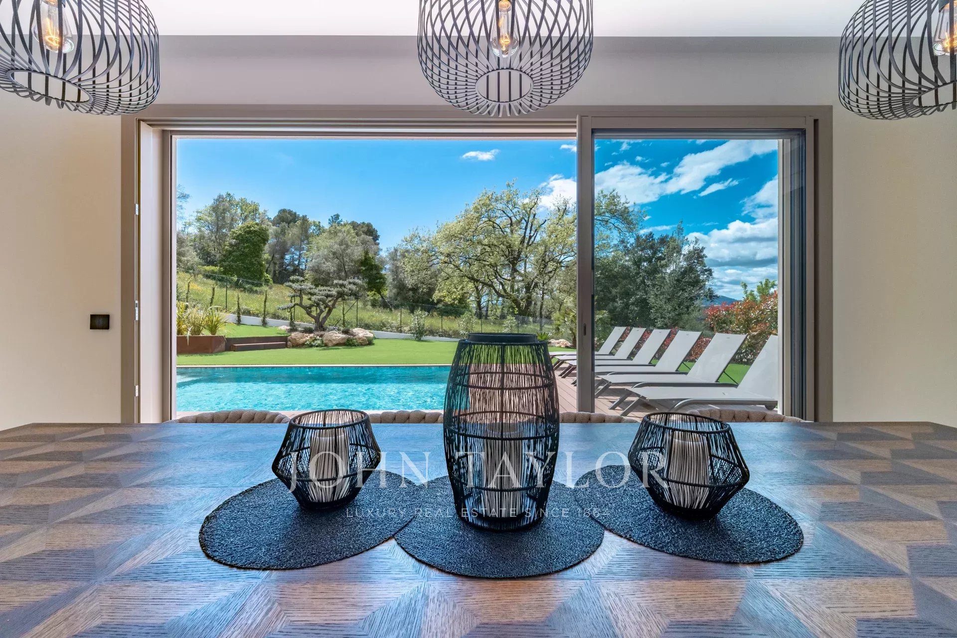 Com ar condicionado para total conforto em todas as estações, a propriedade está situada em 1.572 m² de terreno, com uma elegante piscina e lugares de estacionamento.
