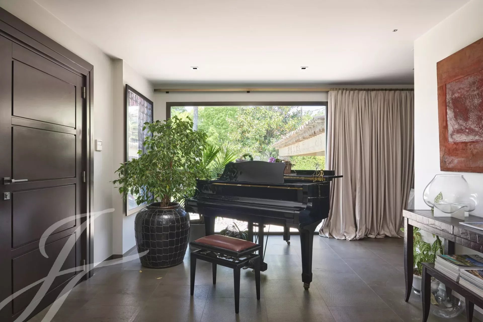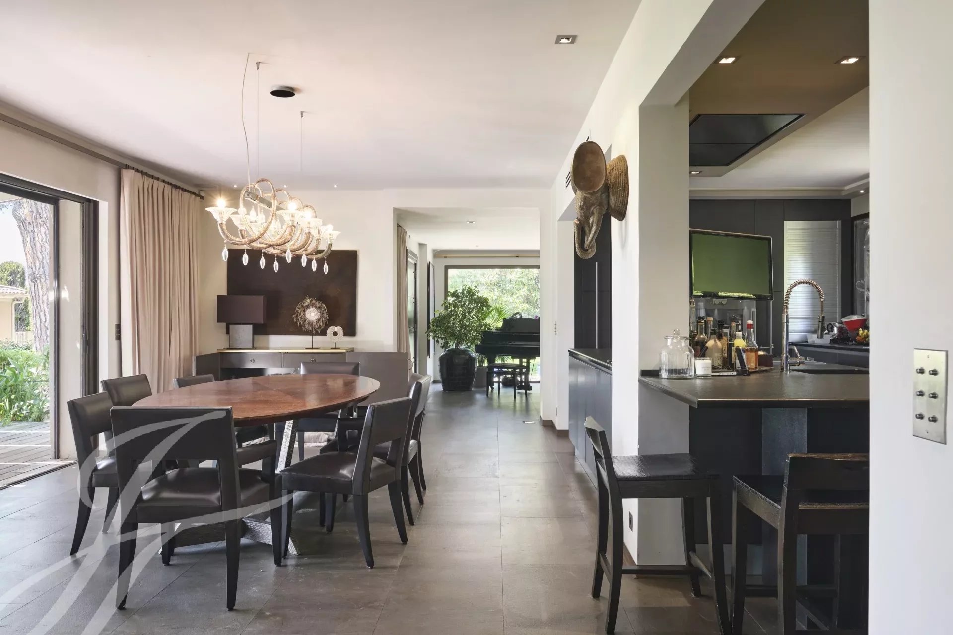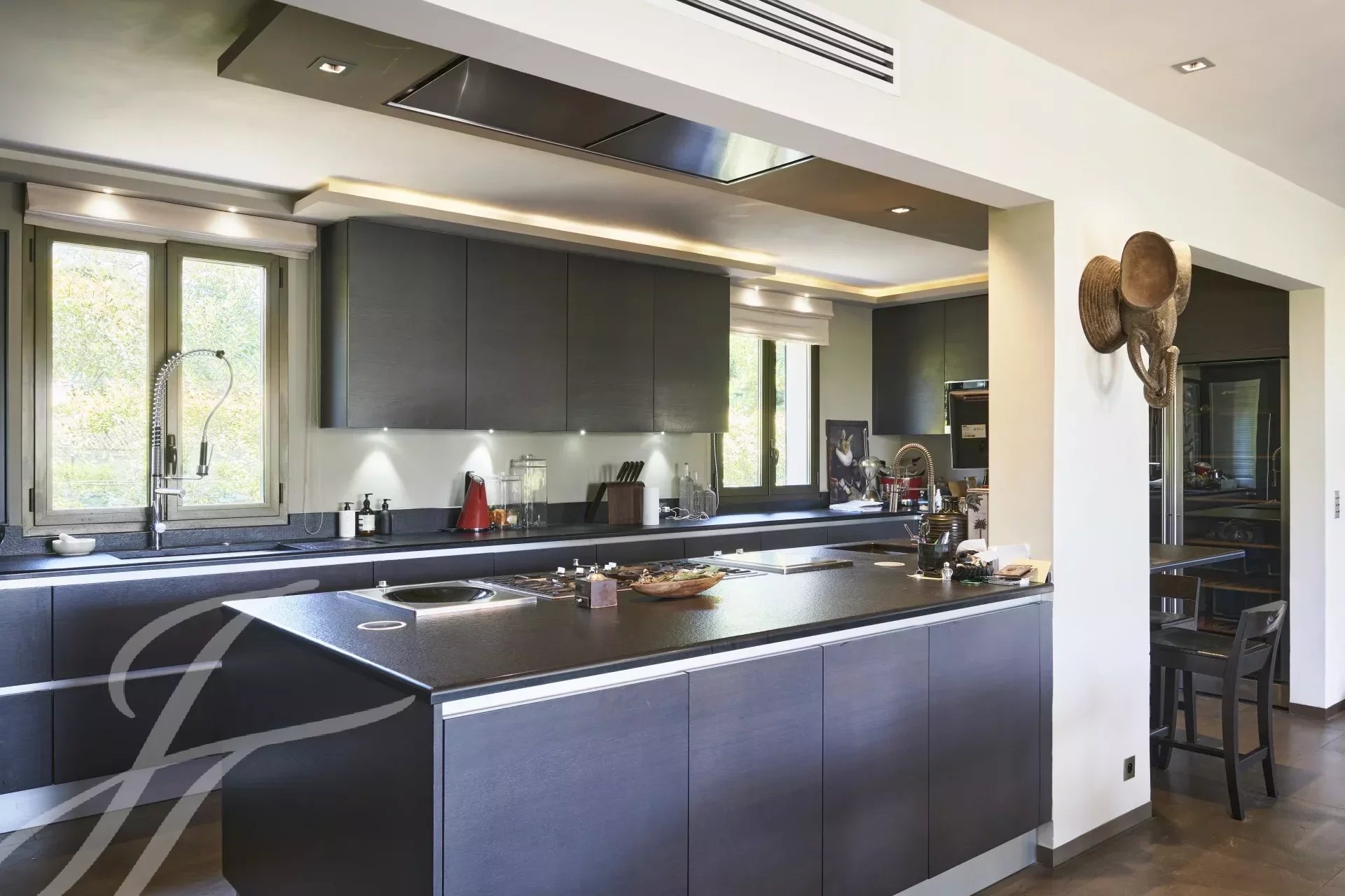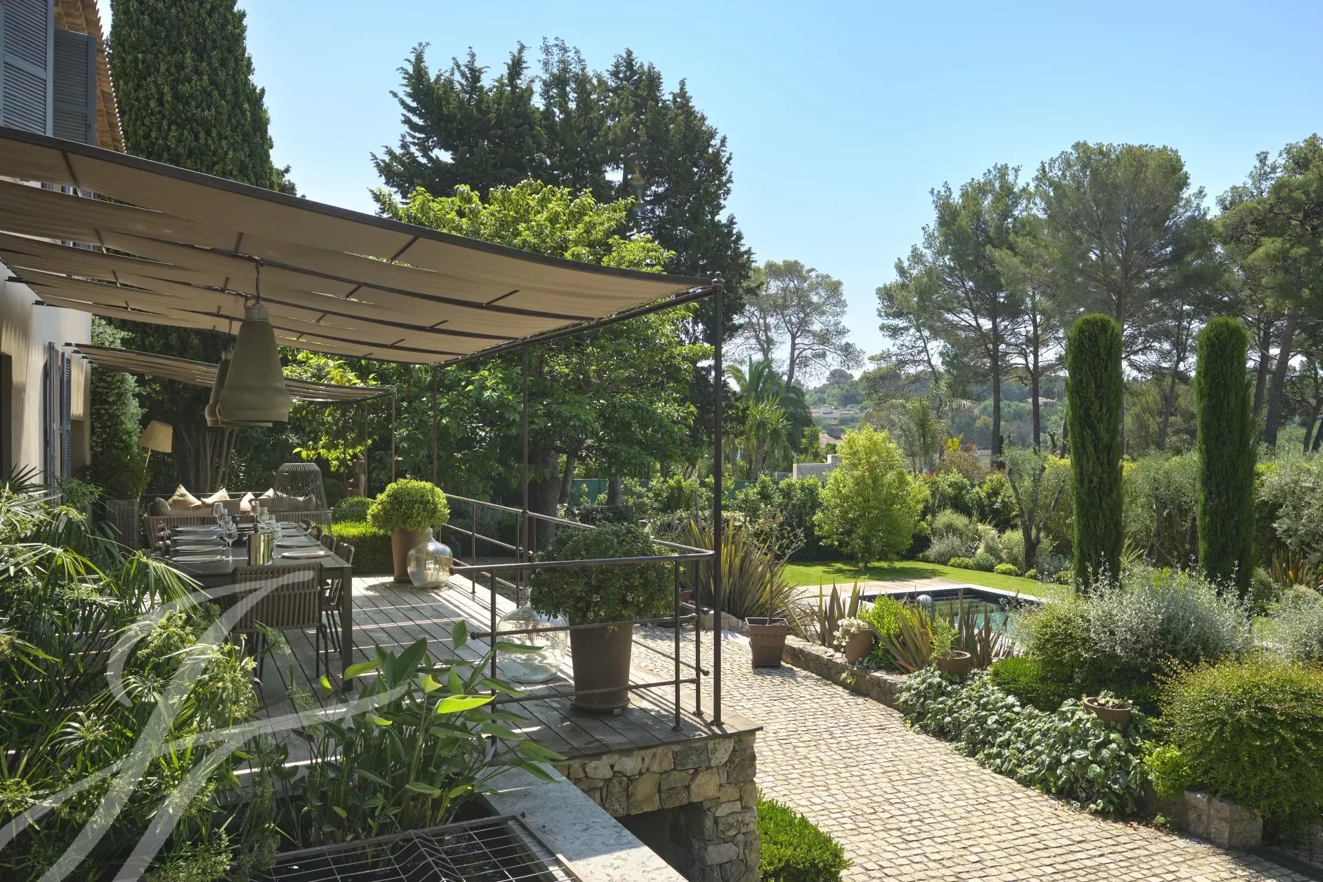 Situada em Mougins, esta moradia de 250 m2 num terreno de cerca de 1800 m2 oferece fácil acesso às principais estradas, serviços, escolas internacionais, campos de golfe de renome mundial e restaurantes com estrelas Michelin, ao mesmo tempo que está protegida da vista.