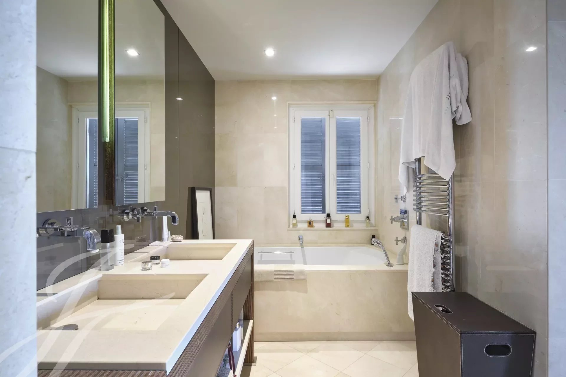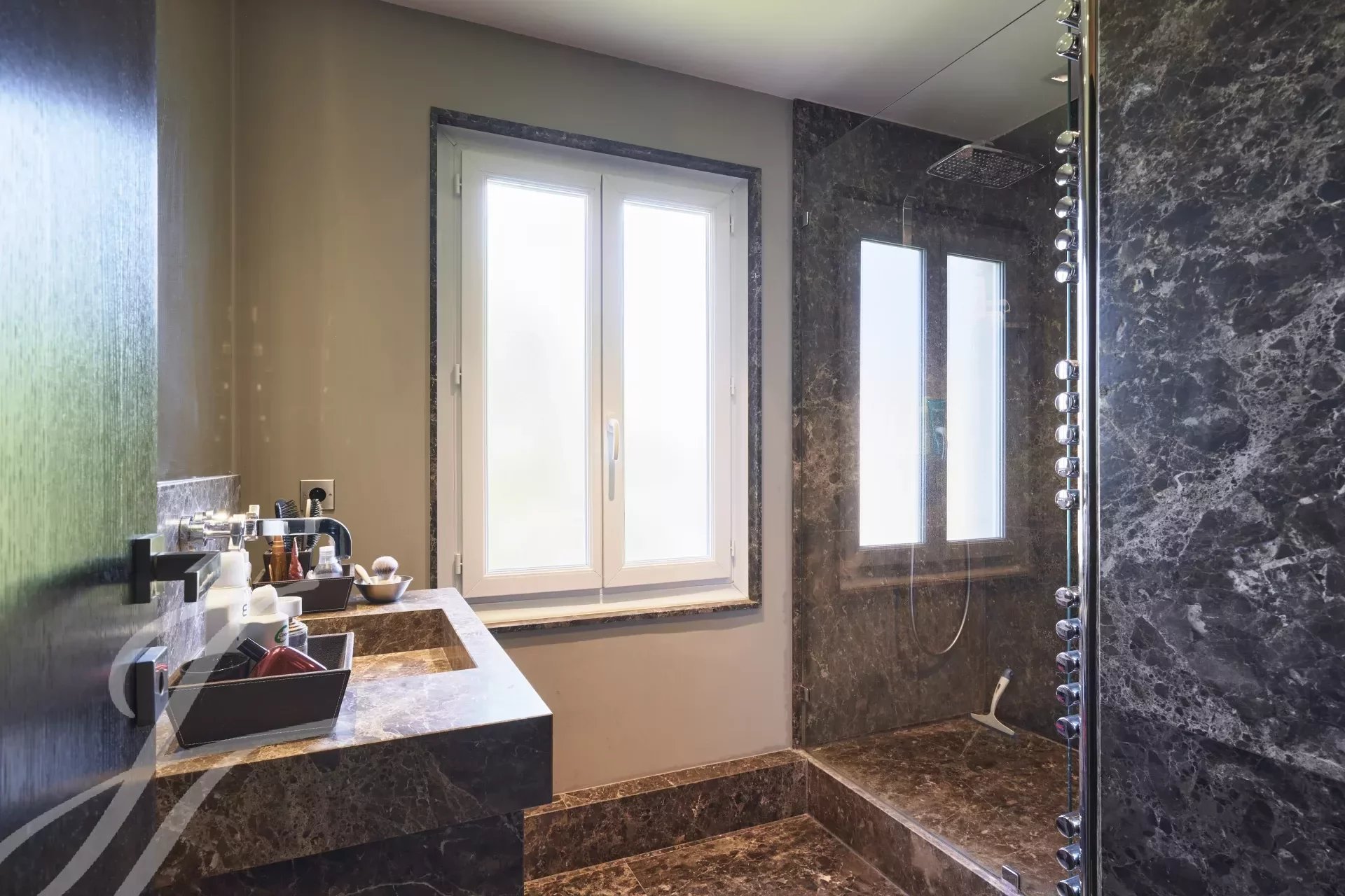 No rés do chão, encontrará um hall de entrada, uma casa de banho social, uma bela cozinha equipada com electrodomésticos topo de gama e um quarto principal com casa de banho privativa. Todos se abrem para uma série de áreas exteriores para momentos de descontração.