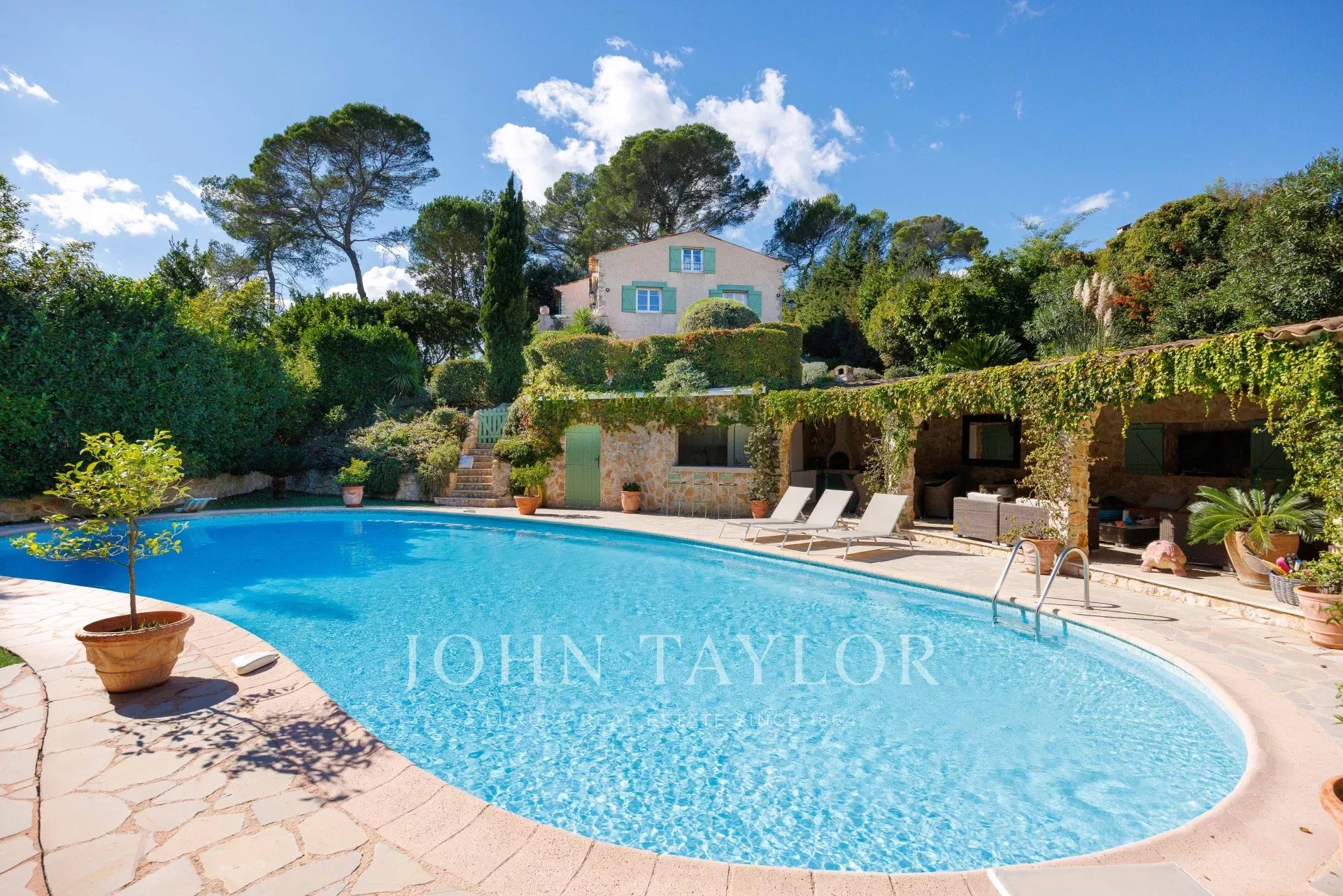 Aninhada no Domaine de la Peyrière, esta moradia de 400 m² oferece uma localização privilegiada e um potencial de desenvolvimento excecional. O seu jardim impecável de 1.900 m² fica a um curto passeio do campo de golfe e oferece paz e sossego total.