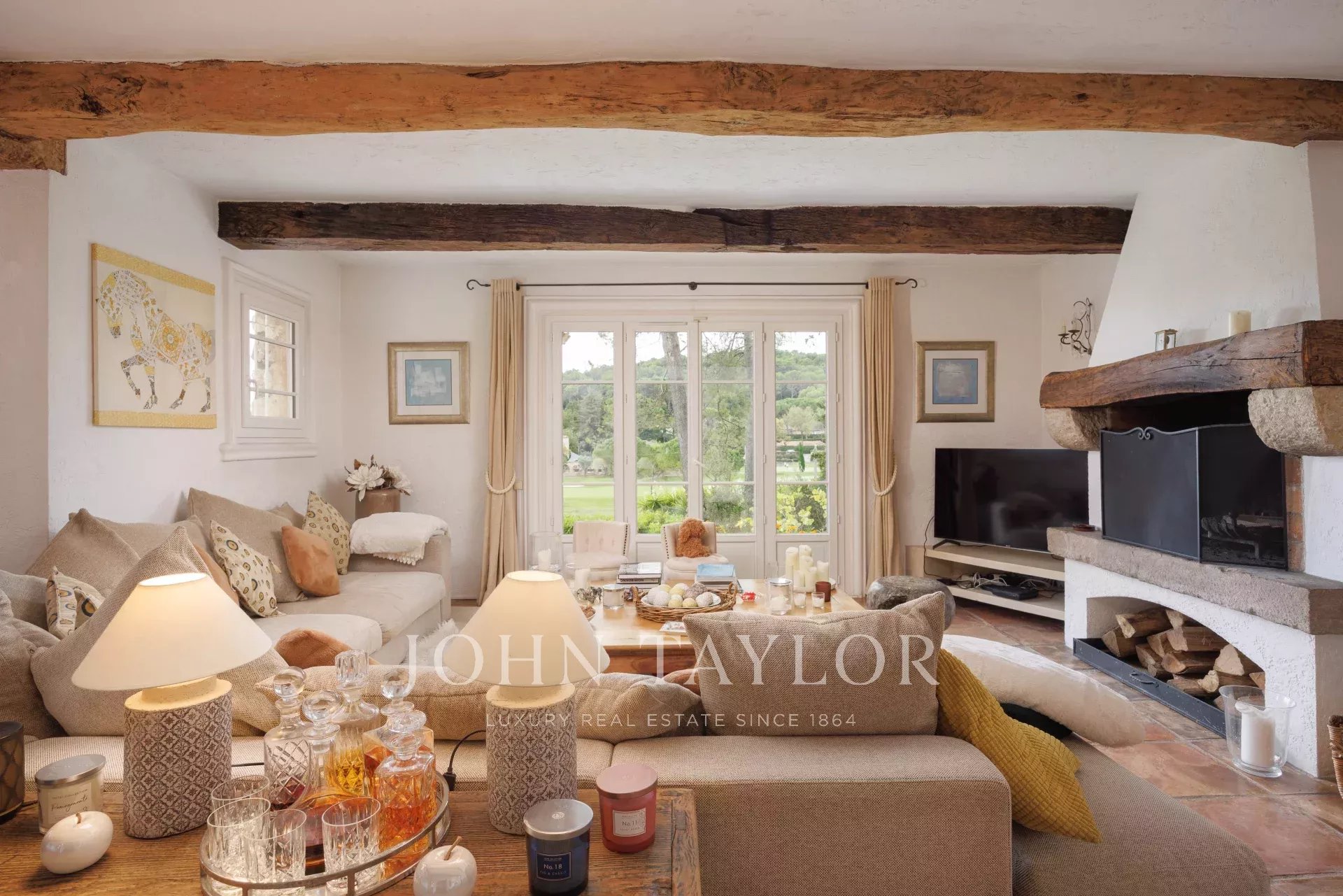 A casa está distribuída por três pisos e oferece volumes generosos. O piso térreo abre-se para uma sala de estar dupla com vista para o campo de golfe, uma cozinha separada e duas suites. No andar de cima, há uma suite principal e um quarto de hóspedes. No piso do jardim, uma área de bem-estar é complementada por duas suites adicionais, uma sala de jogos e um bar.