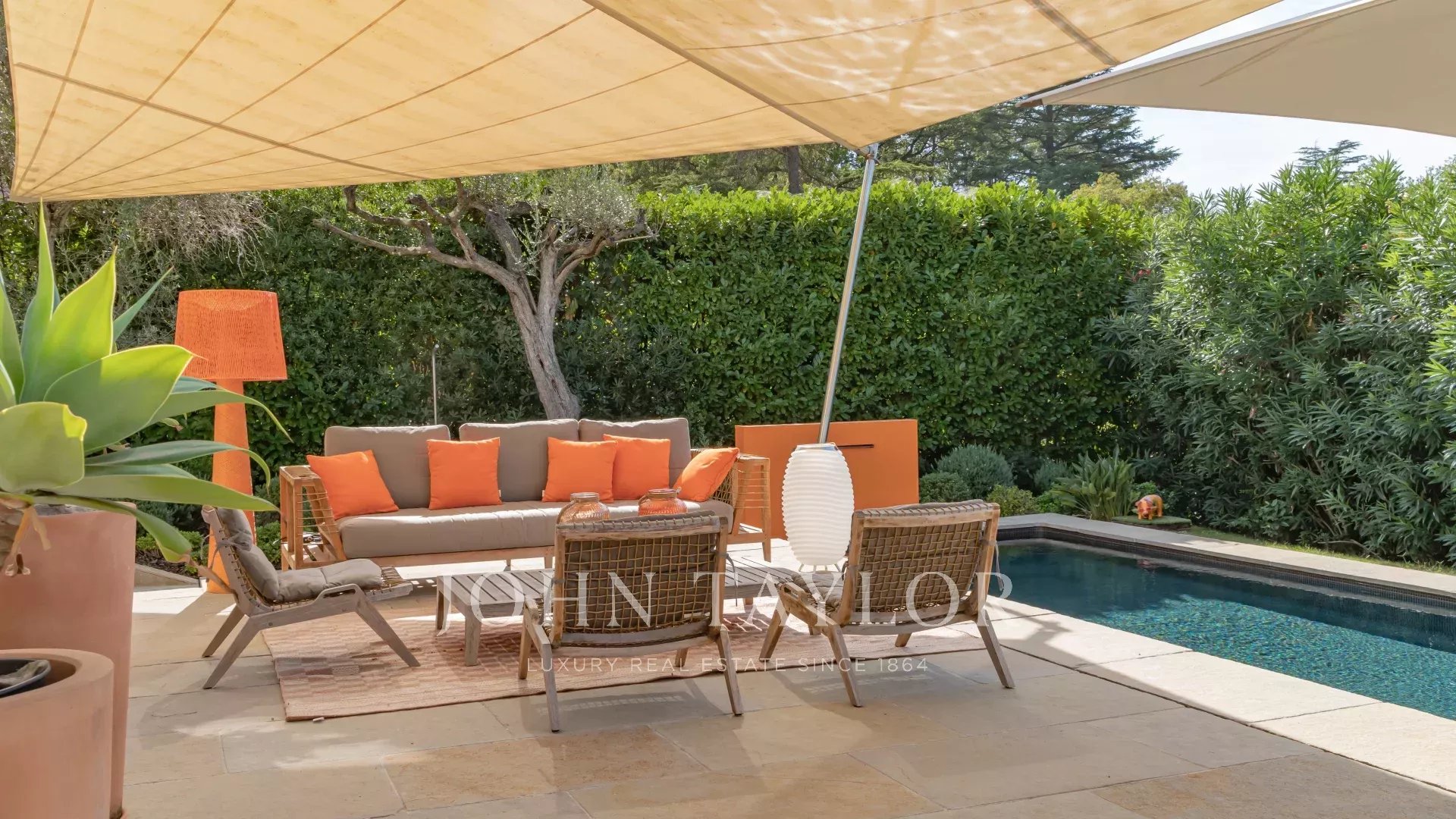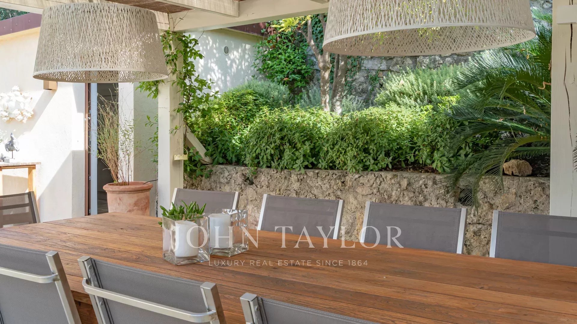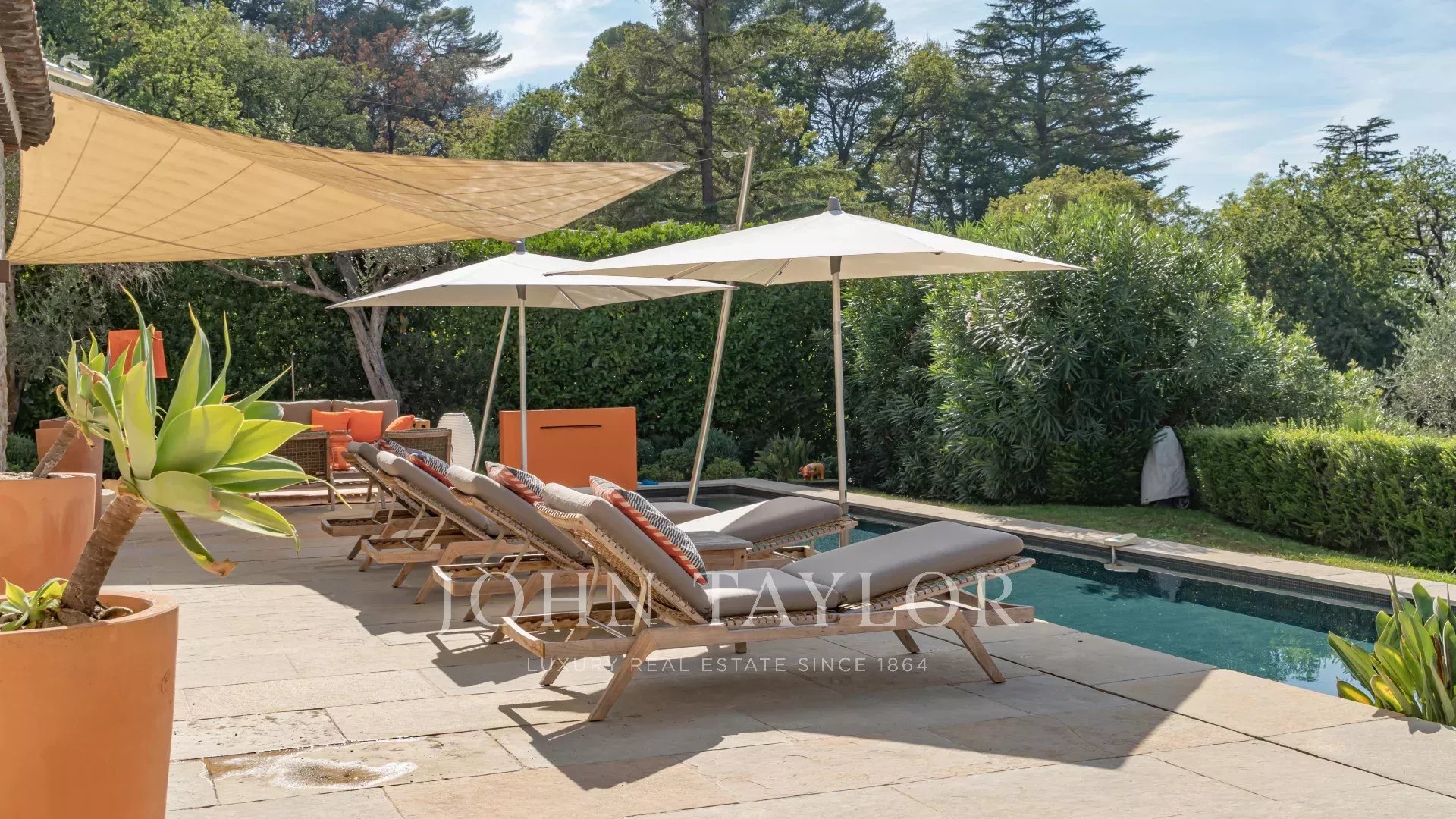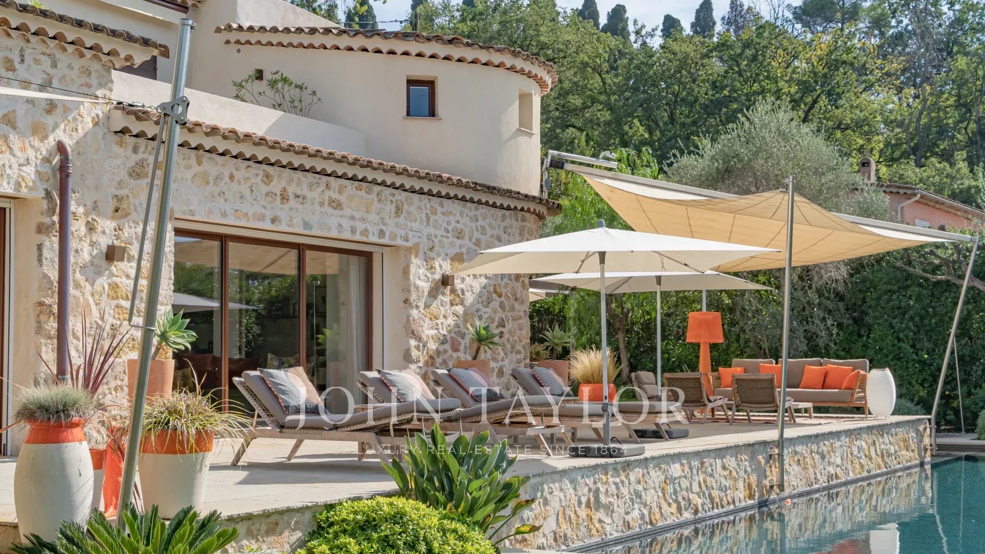Situada apenas a 1 km da aldeia de Mougins, famosa pelas suas galerias de arte e restaurantes gourmet, esta villa, ao lado da propriedade de Pablo Picasso, goza de um ambiente residencial na muito procurada zona de Chapelle Notre-Dame-de-vie.