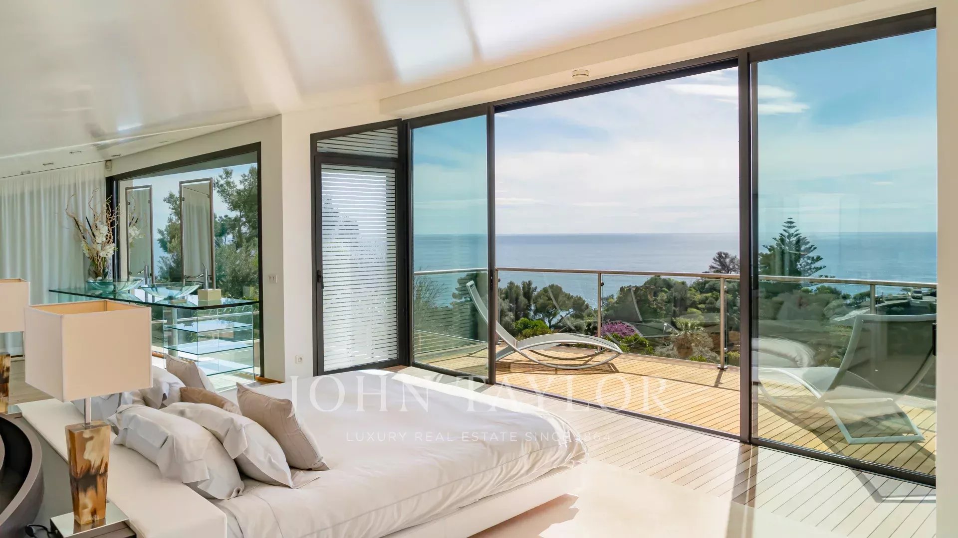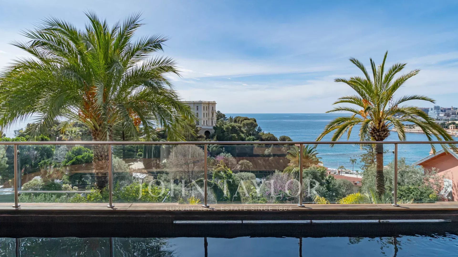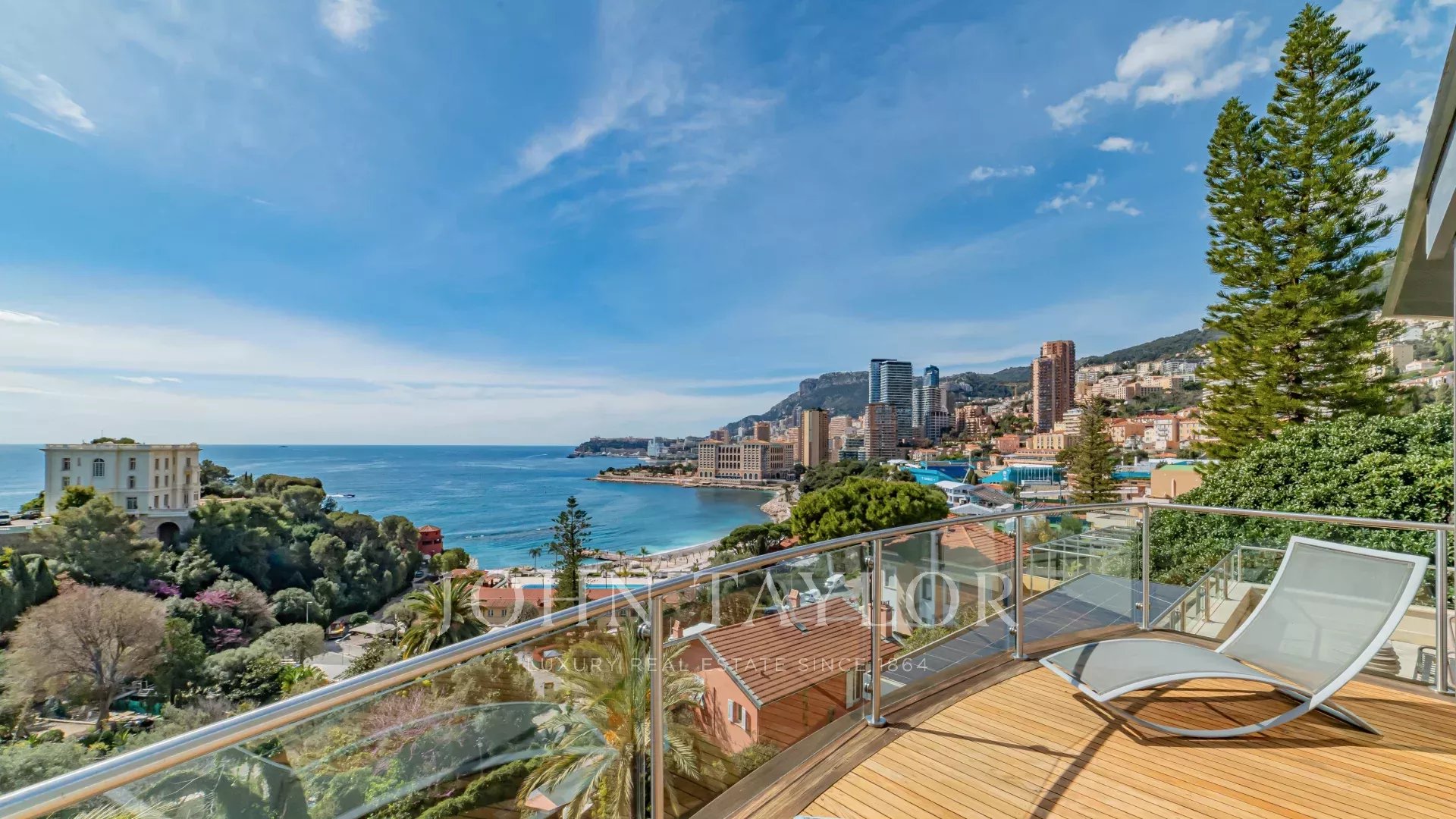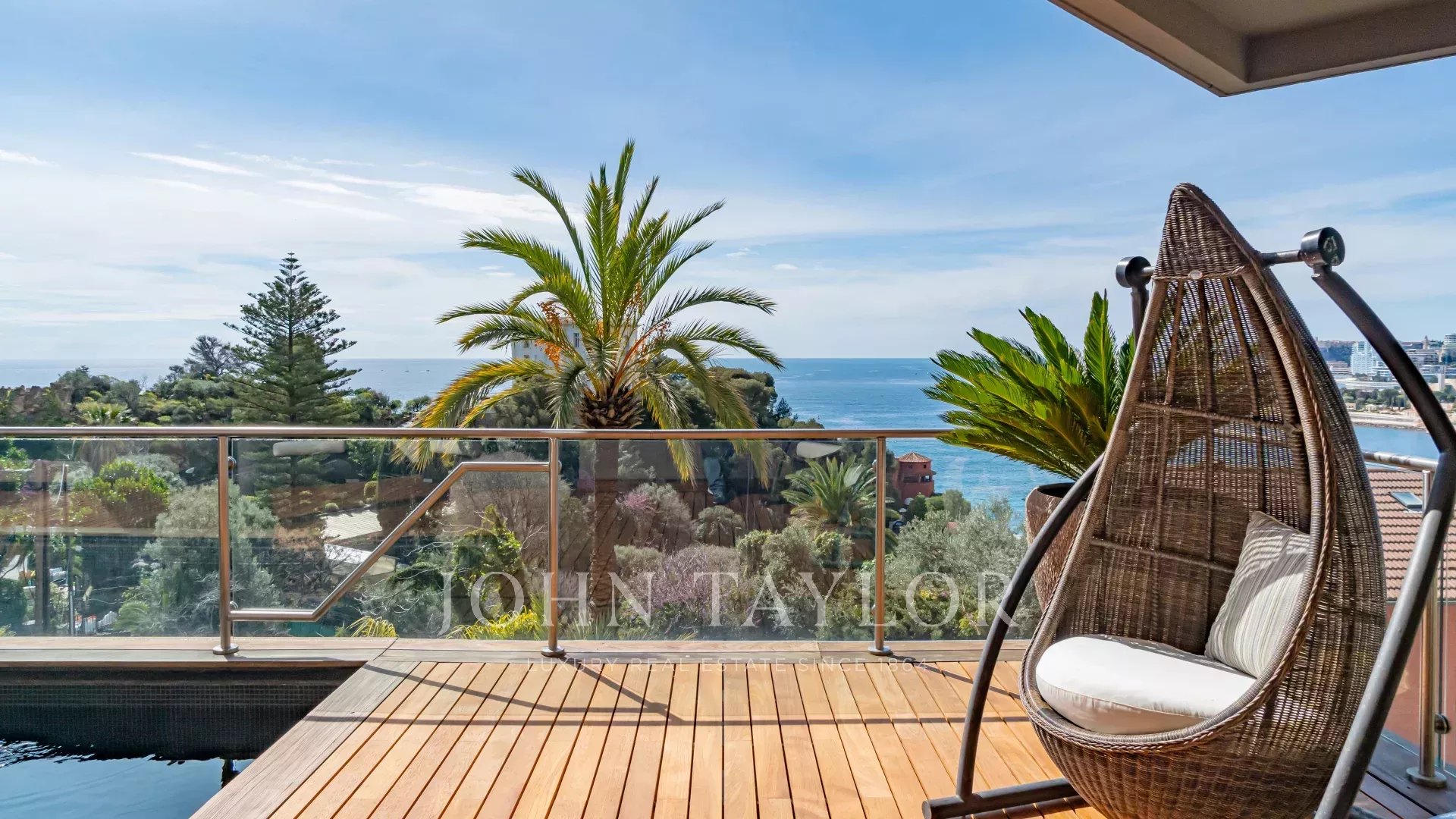 Os 580 m² de área habitacional em 5 níveis incluem 5 quartos, incluindo um quarto principal com vista panorâmica para o mar e para o Mónaco.