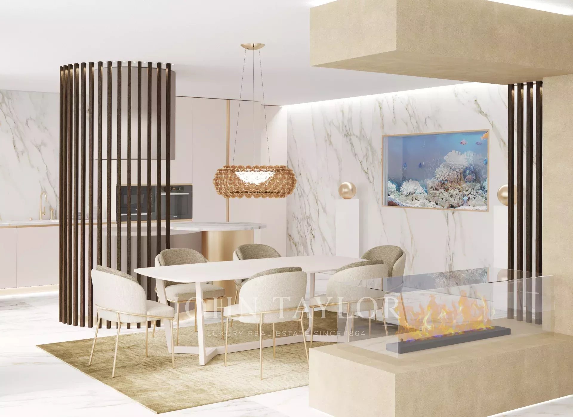 - Cozinha equipada em plano aberto com lareira integrada