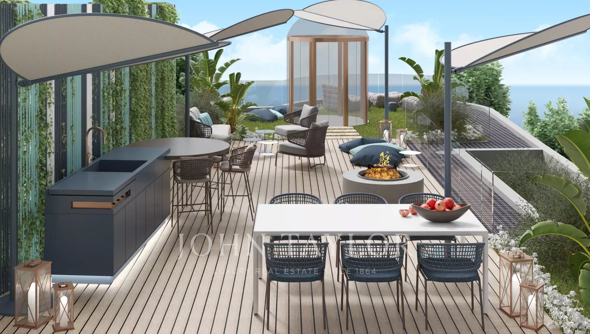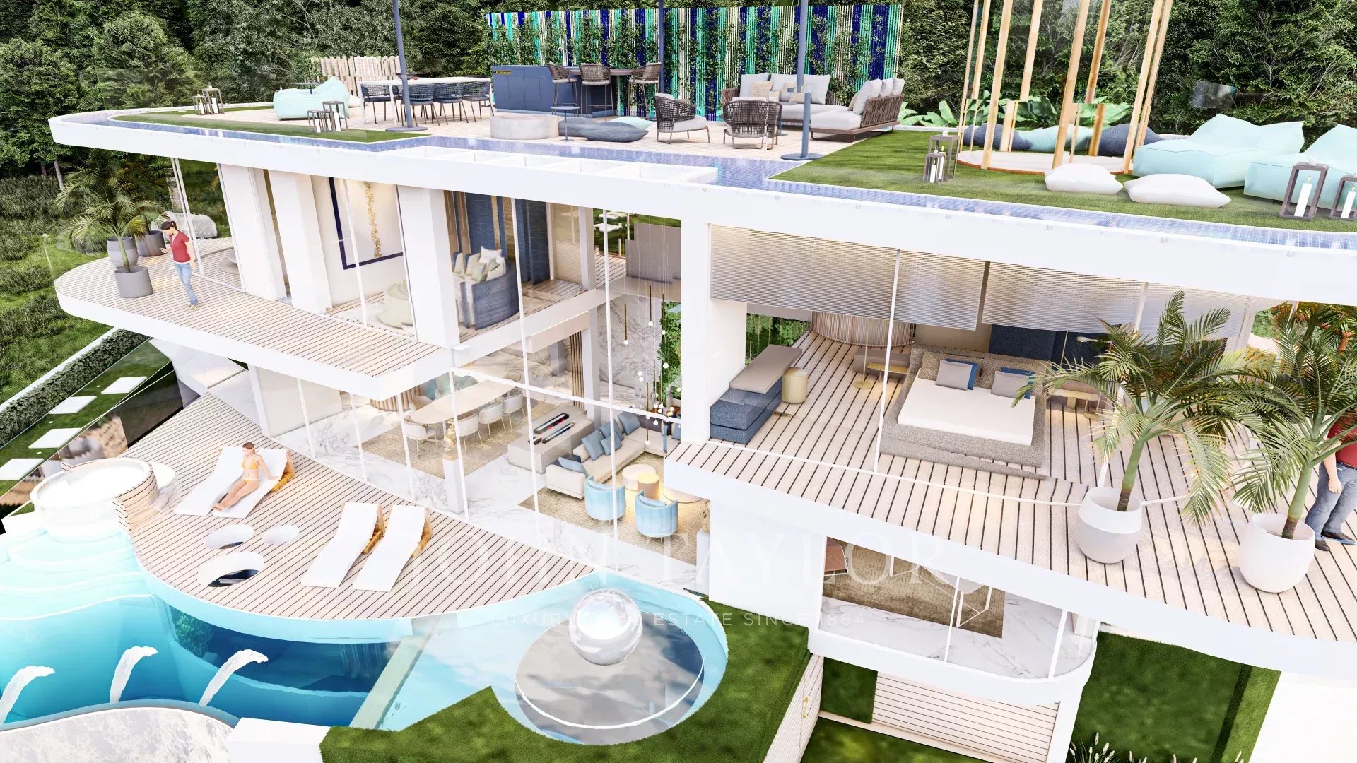 Desde o seu terraço com vista panorâmica sobre o Mar Mediterrâneo, até aos seus jardins harmoniosos com numerosas fontes, a Health House irá proporcionar-lhe momentos únicos de vida com a sua família e amigos num ambiente excecional. Graças às curvas e aos materiais nobres utilizados no design, como a madeira, o mármore e o vidro, viver nesta propriedade única é um verdadeiro privilégio.