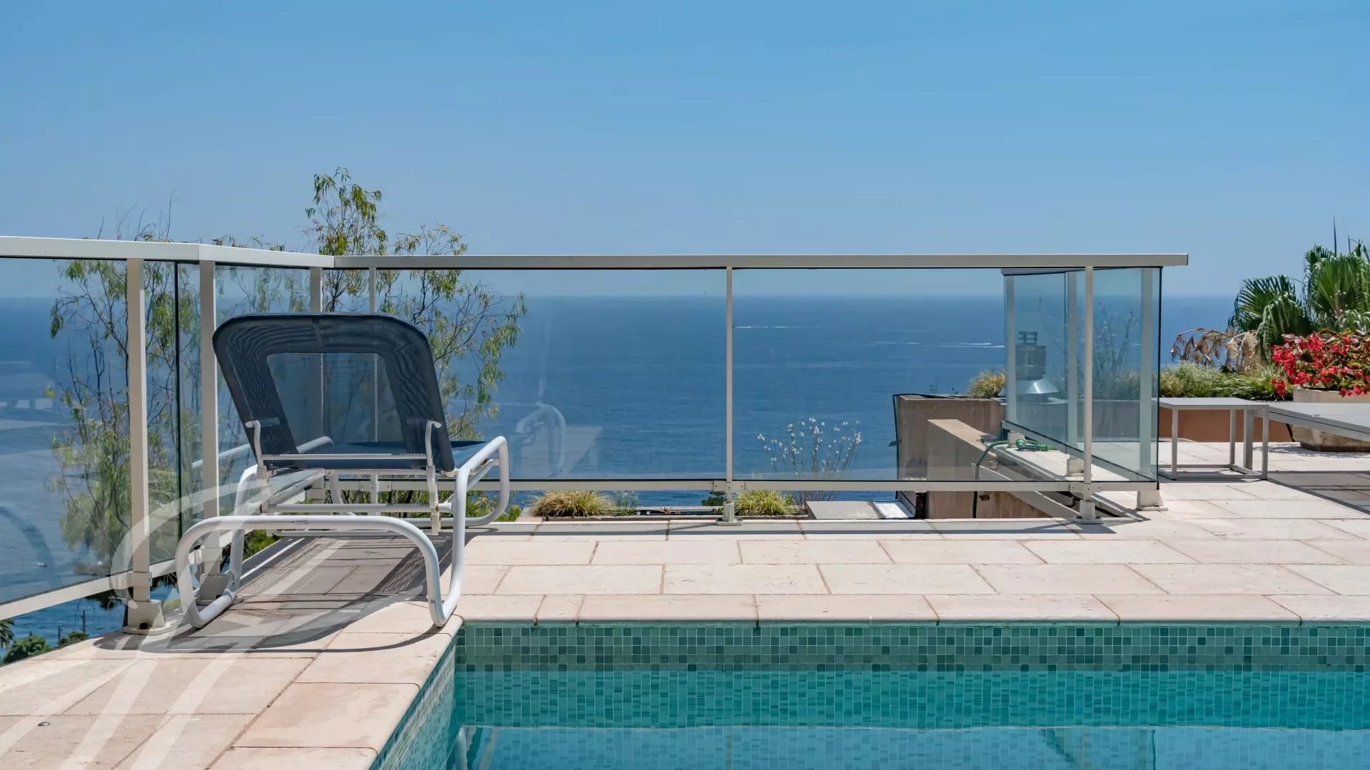 Esta moradia de arquiteto com 240 m² oferece um estilo de vida tranquilo, realçado por uma vista deslumbrante sobre o mar, uma piscina no terraço e inúmeros espaços exteriores, incluindo magníficas esplanadas que permitem desfrutar plenamente do clima da Côte d’Azur e do estilo de vida descontraído da Costa Azul.
