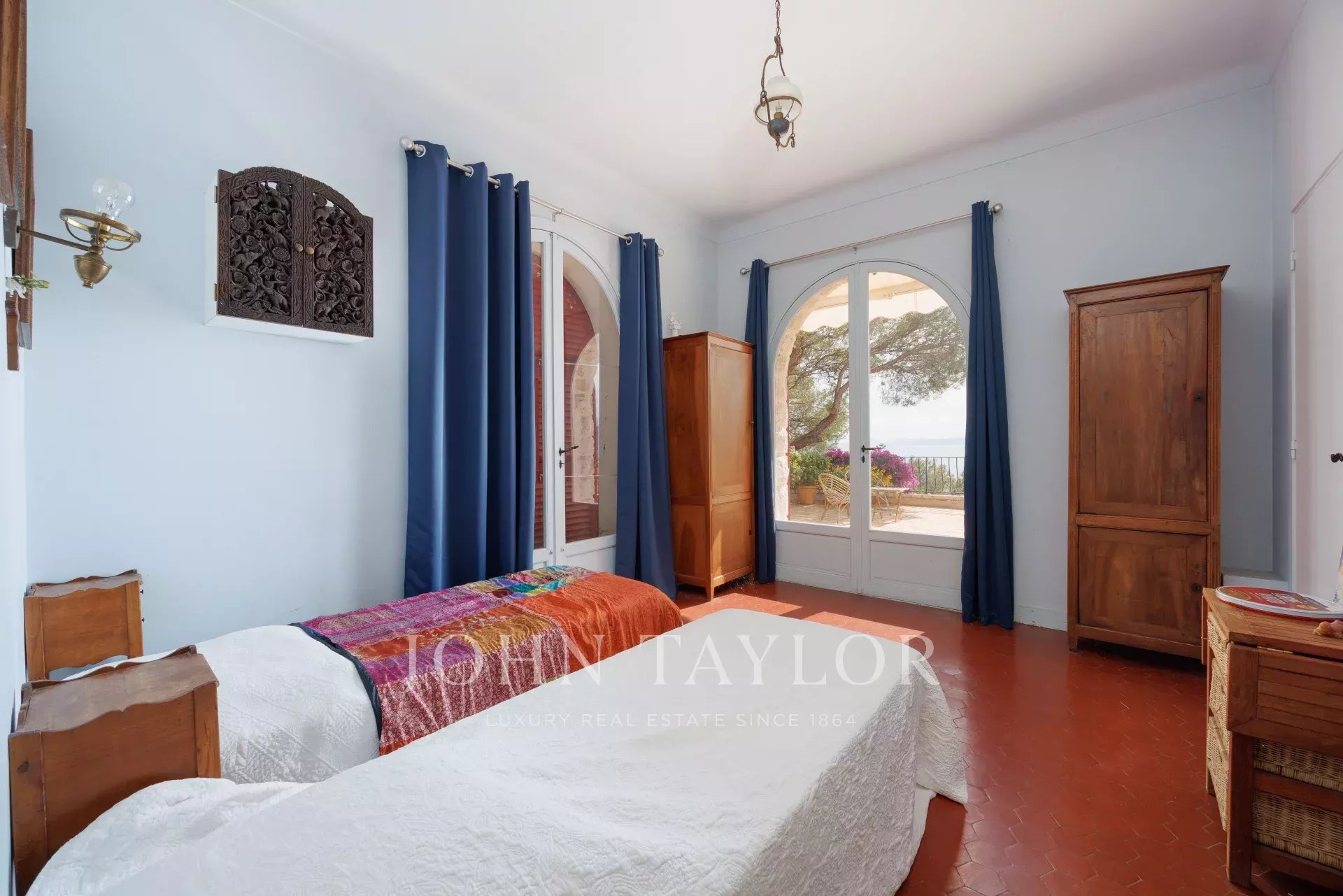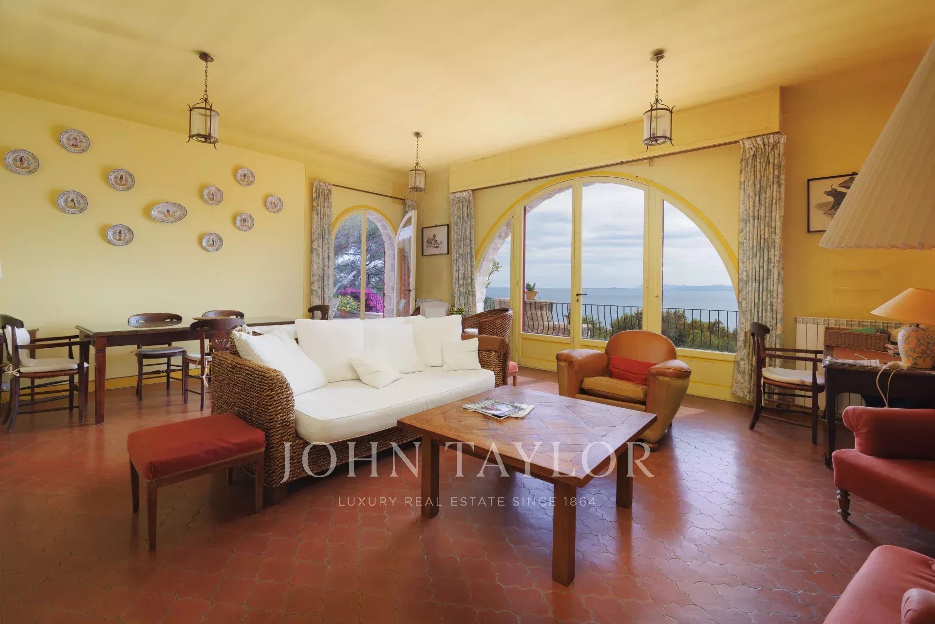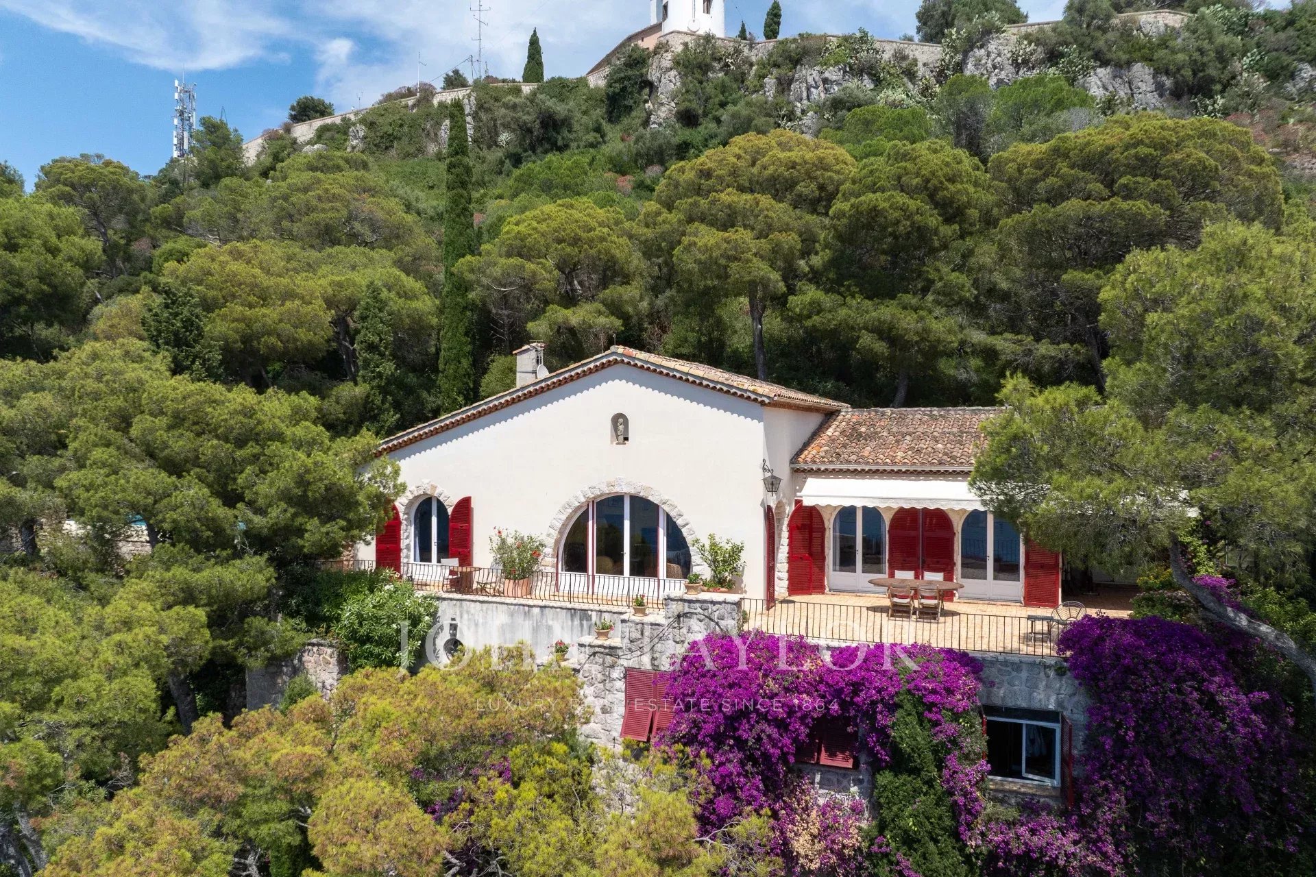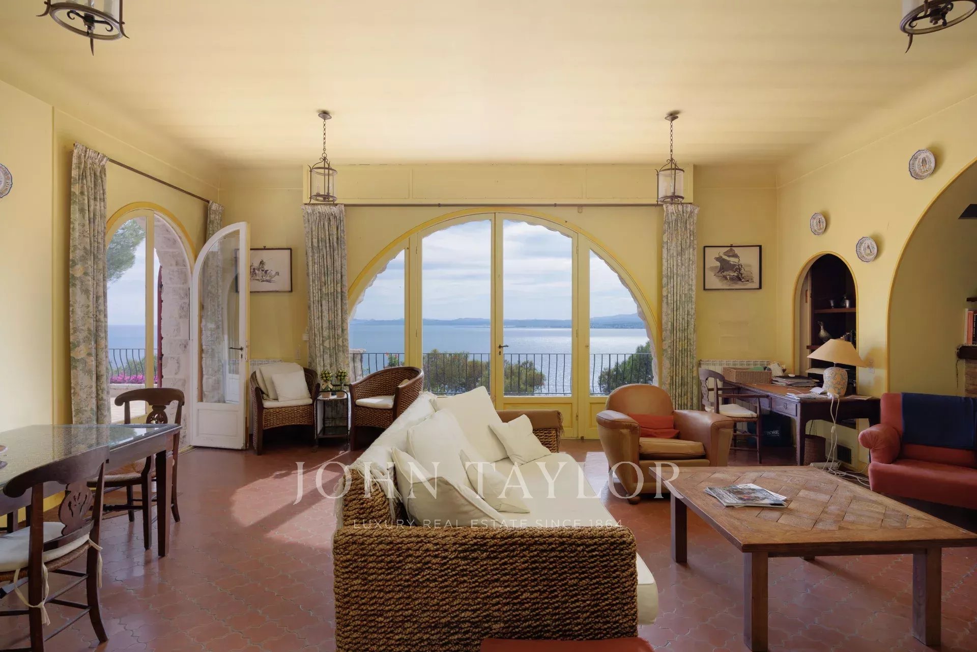 Esta encantadora moradia de 2 andares foi construída em estilo provençal. Está situada no cimo deste magnífico jardim. Ela compreende 5 quartos e 3 casas de banho, uma sala de estar/jantar que se abre para um grande terraço com uma sala de jantar de verão com uma vista espetacular sobre o mar, uma cozinha espaçosa e um pátio com sombra...