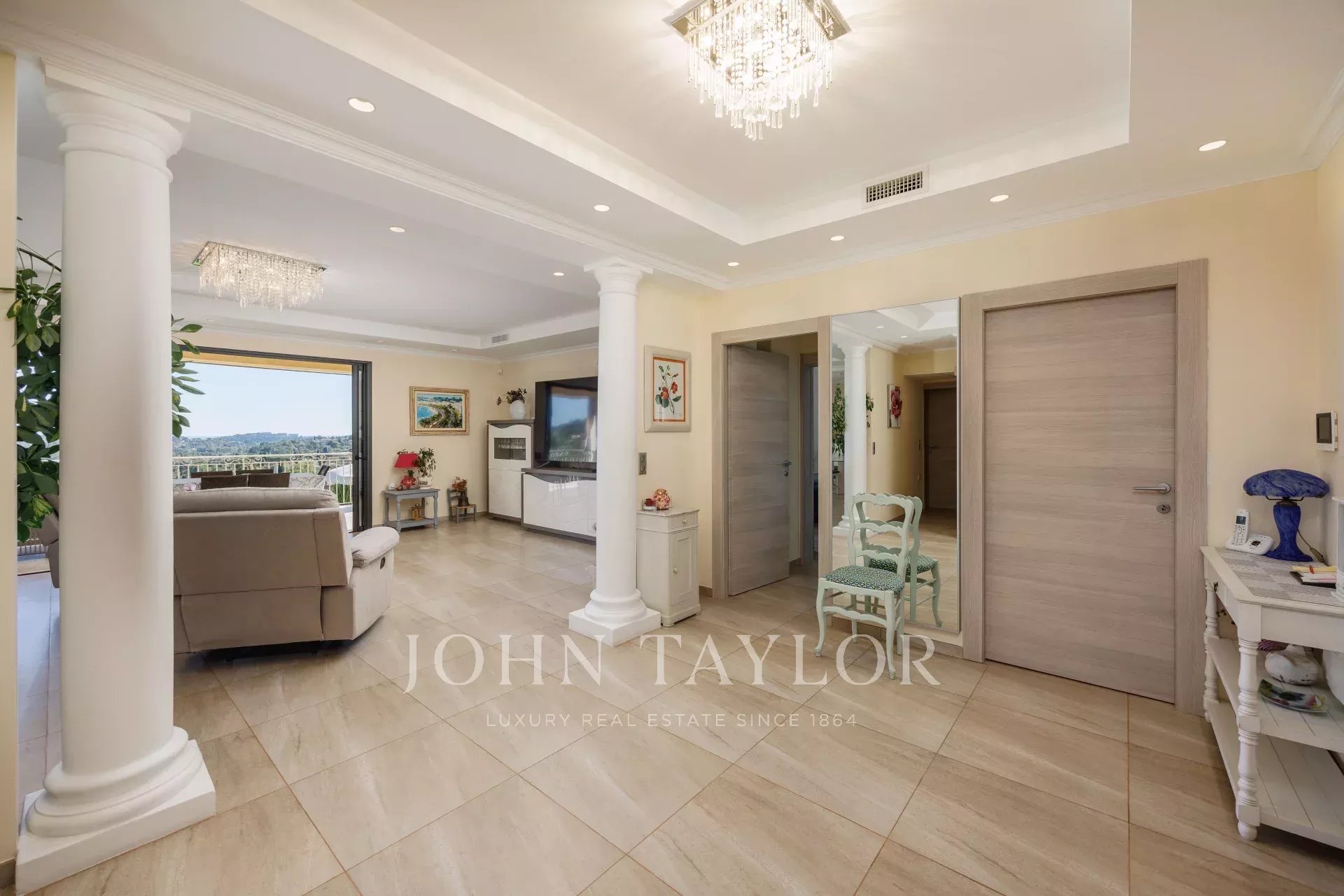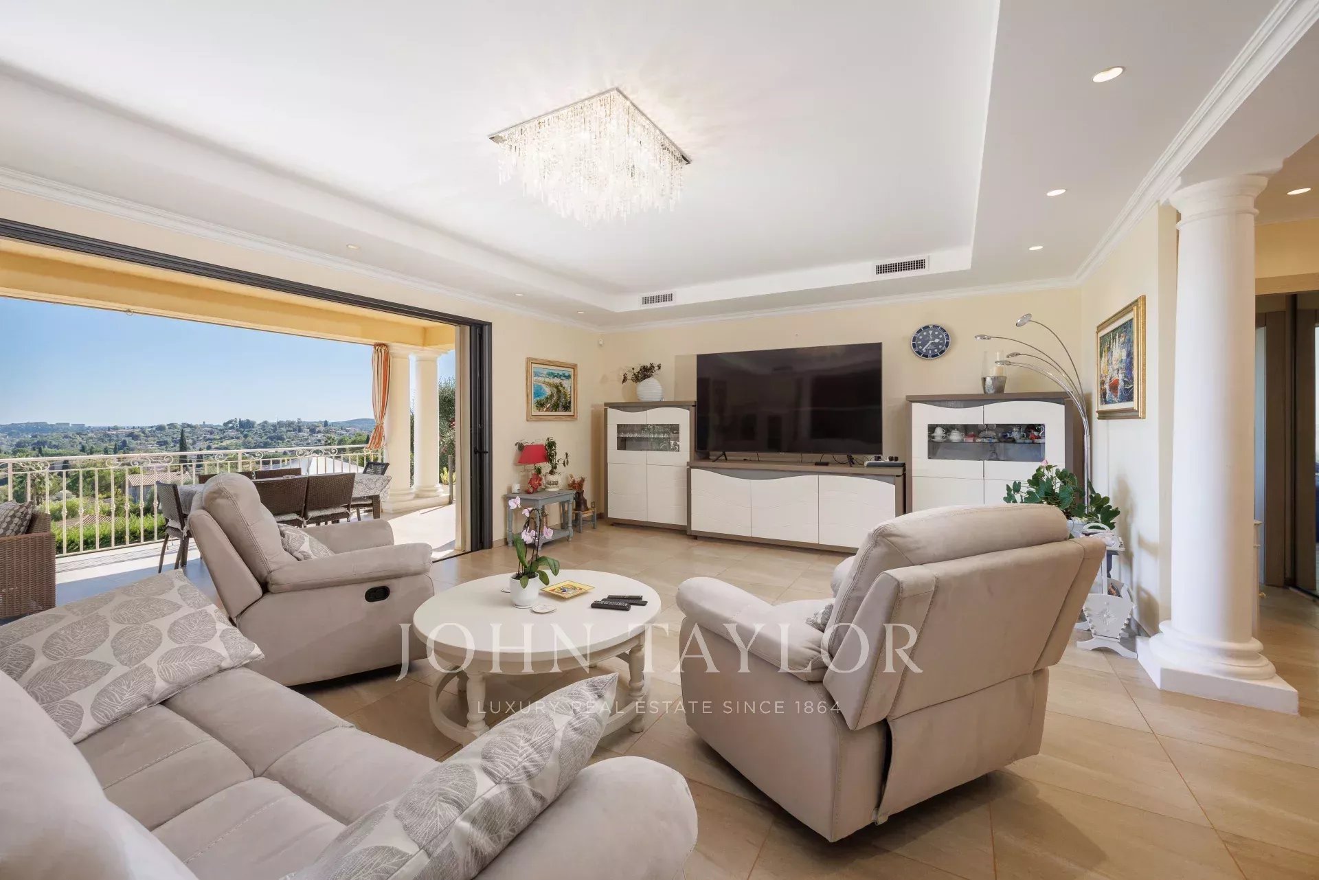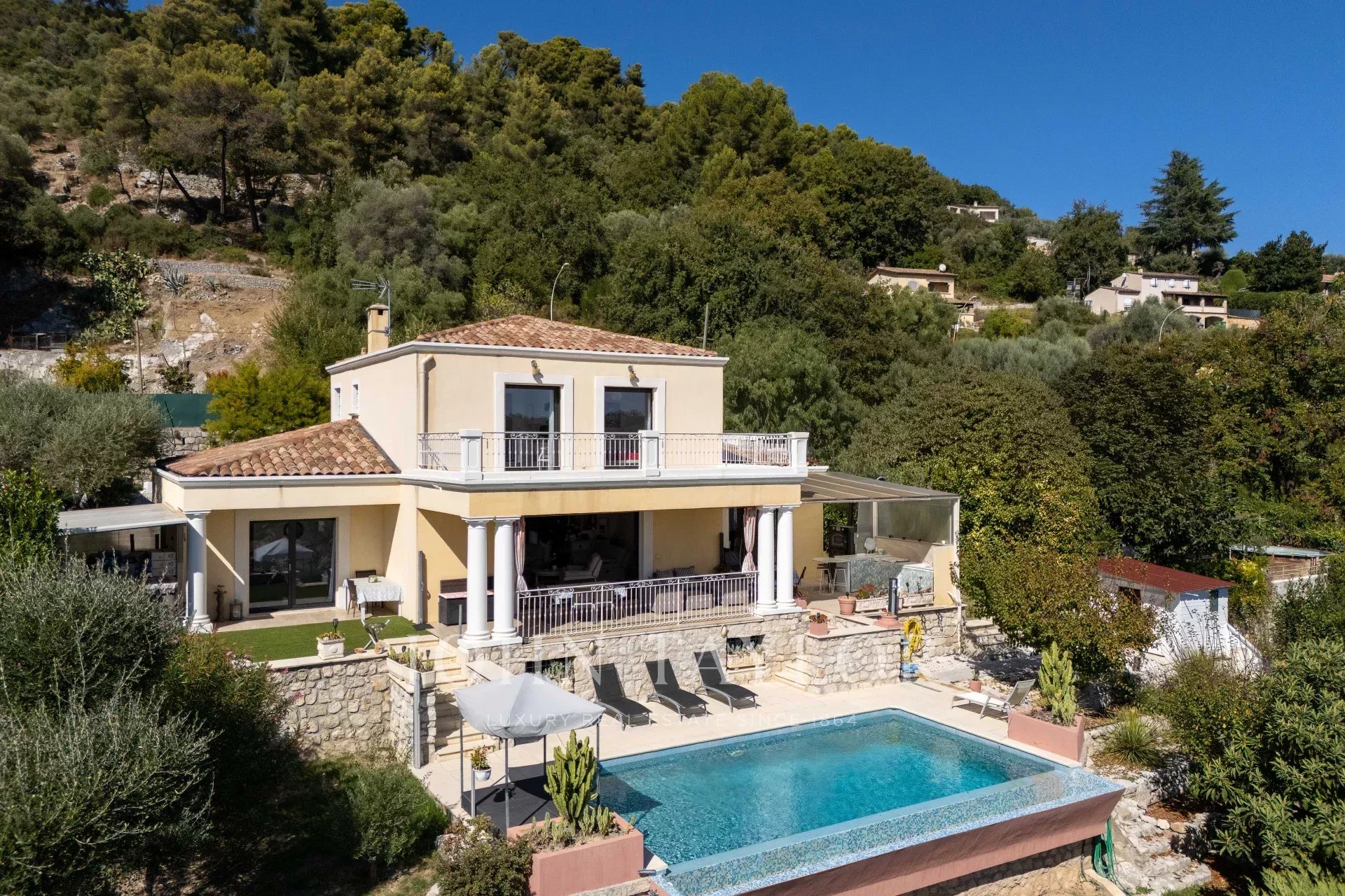 Apenas a dois minutos da emblemática aldeia de Saint-Paul-de-Vence, esta elegante moradia tem 190 m² de área de habitação e cerca de 60 m² de cave convertida. Oferece vistas excepcionais, que se estendem desde a aldeia medieval até ao mar. Situada em 1.397 m² de terreno ajardinado, tem uma garagem dupla e vários lugares de estacionamento. No interior, há quatro quartos, três dos quais em suite, um escritório e um elevador que serve os três níveis. Uma soberba piscina infinita completa este cenário excecional.