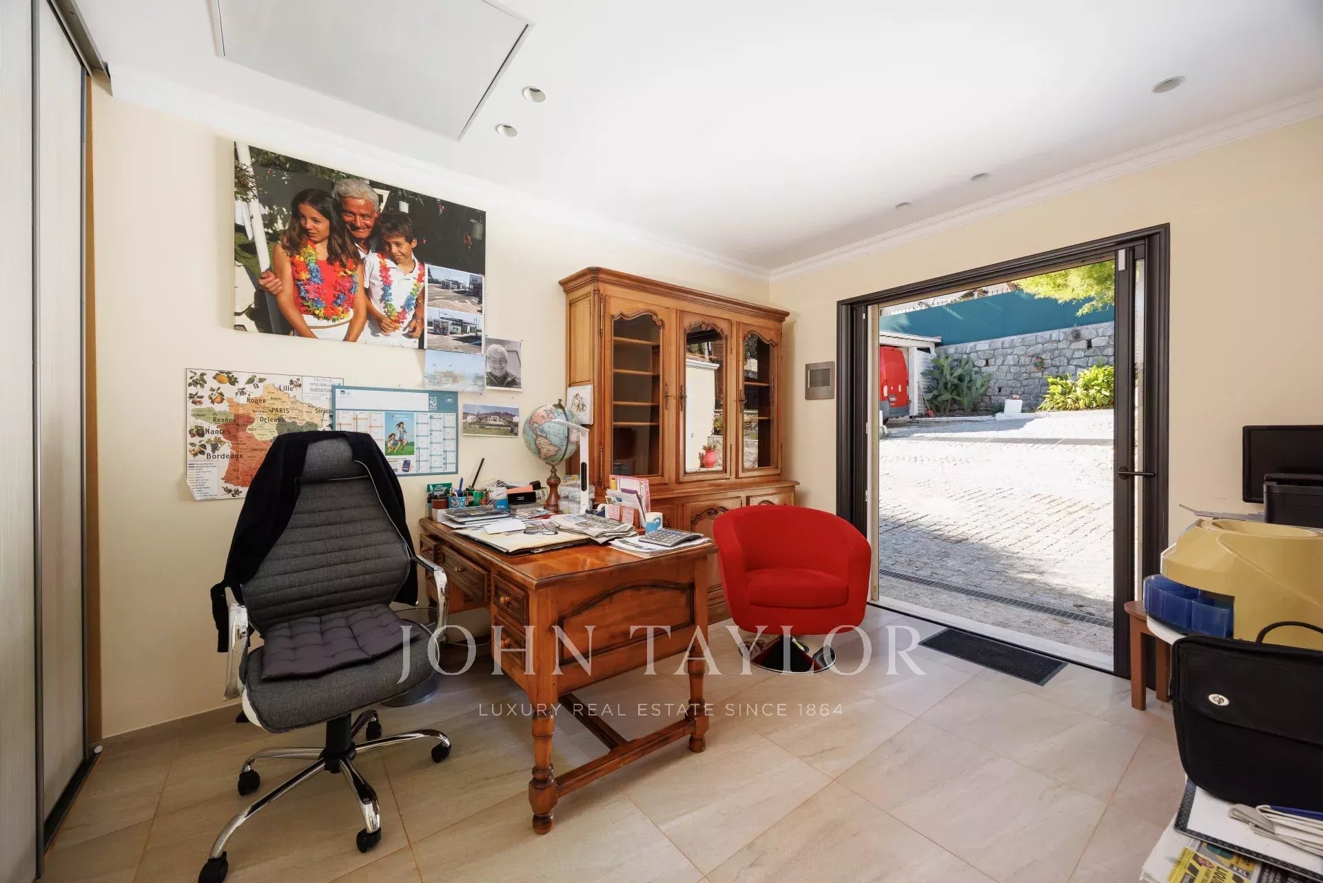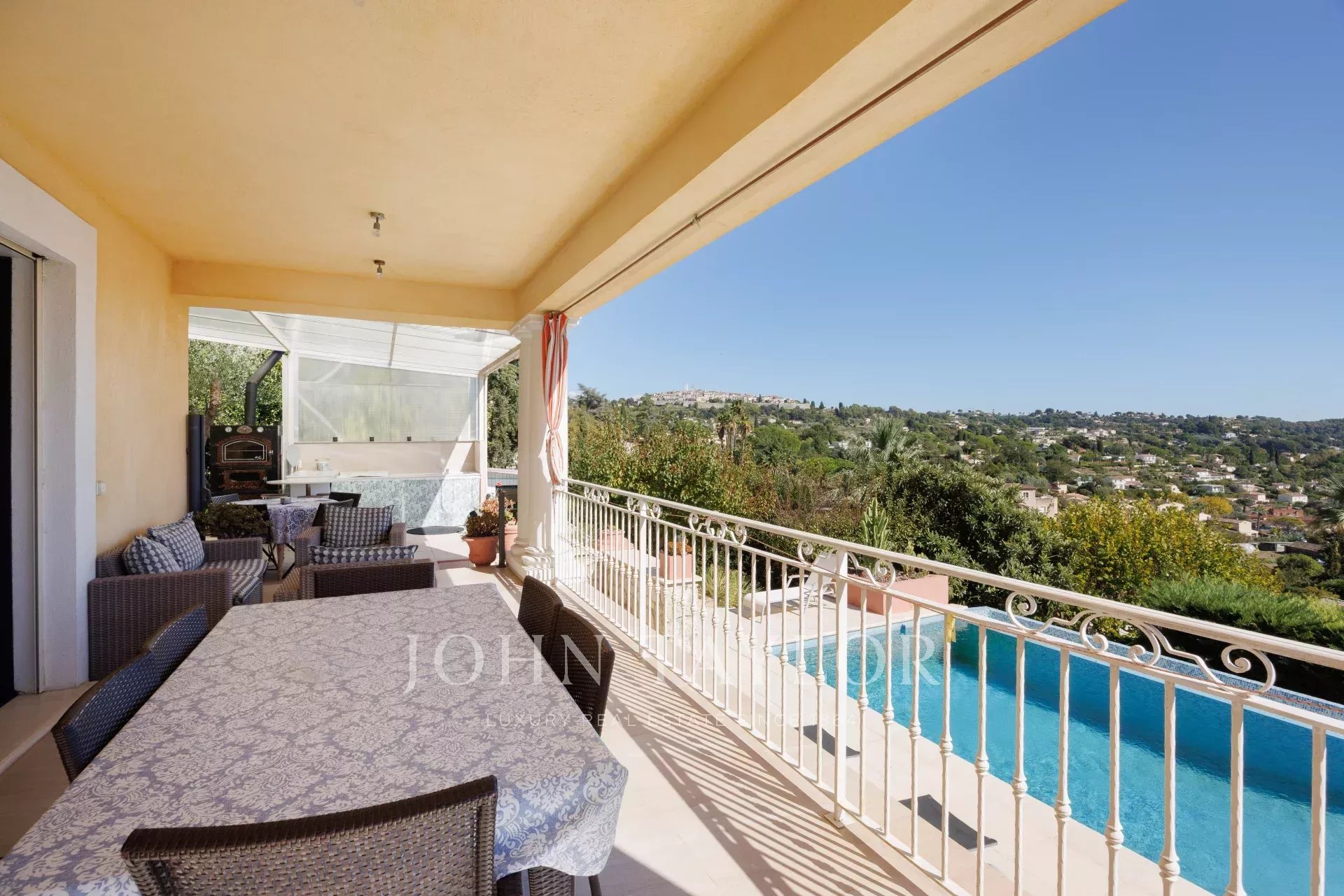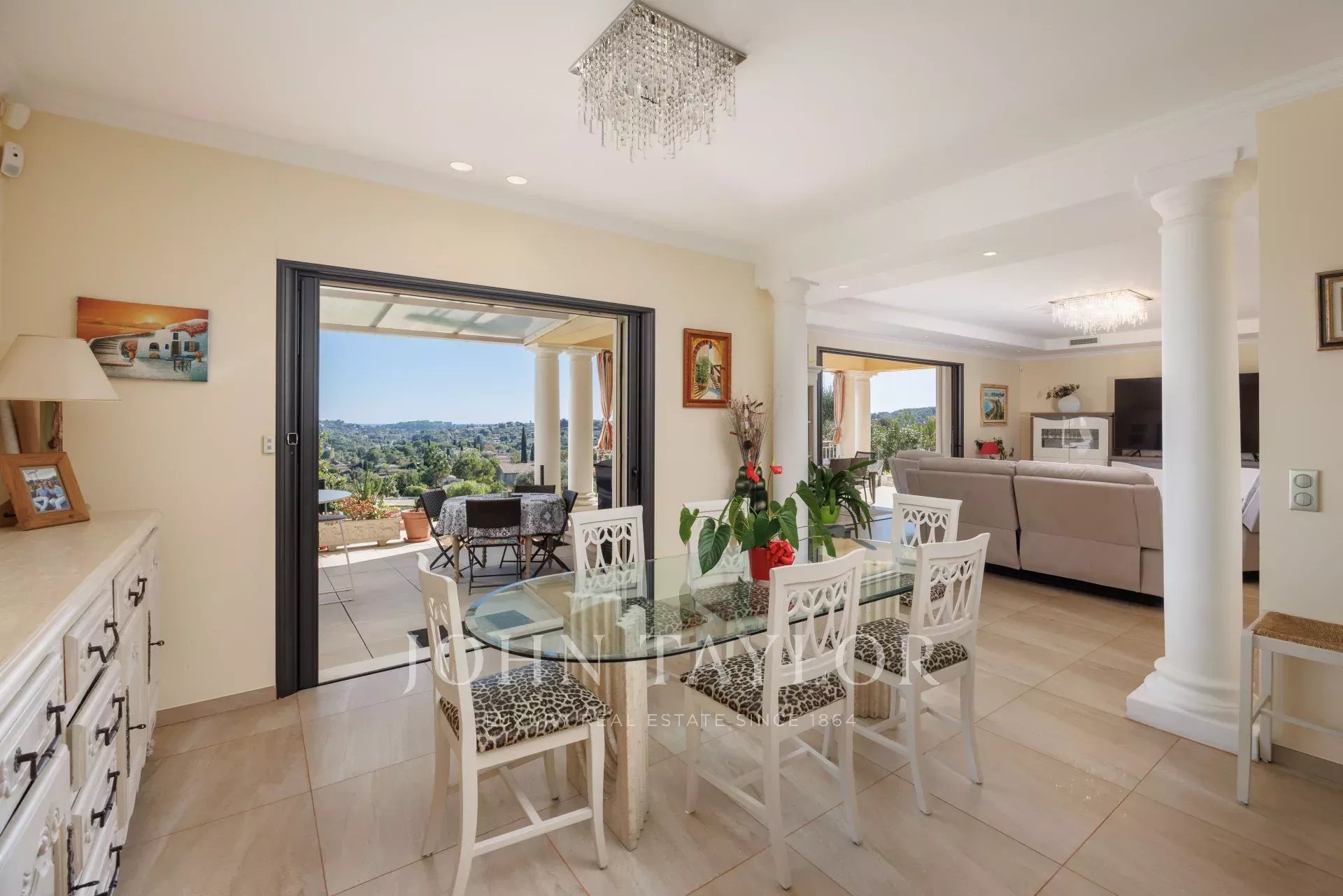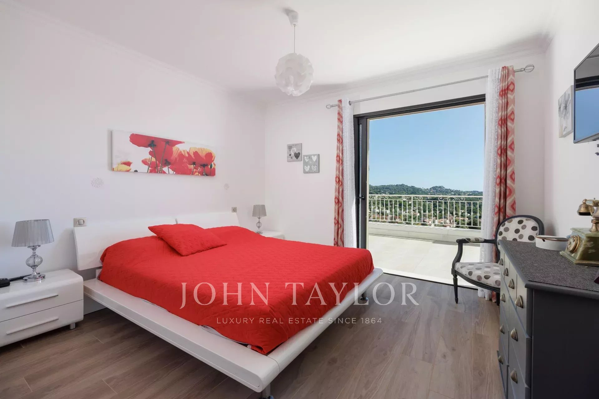 Apenas a dois minutos da emblemática aldeia de Saint-Paul-de-Vence, esta elegante moradia tem 190 m² de área de habitação e cerca de 60 m² de cave convertida. Oferece vistas excepcionais, que se estendem desde a aldeia medieval até ao mar. Situada em 1.397 m² de terreno ajardinado, tem uma garagem dupla e vários lugares de estacionamento. No interior, há quatro quartos, três dos quais em suite, um escritório e um elevador que serve os três níveis. Uma soberba piscina infinita completa este cenário excecional.