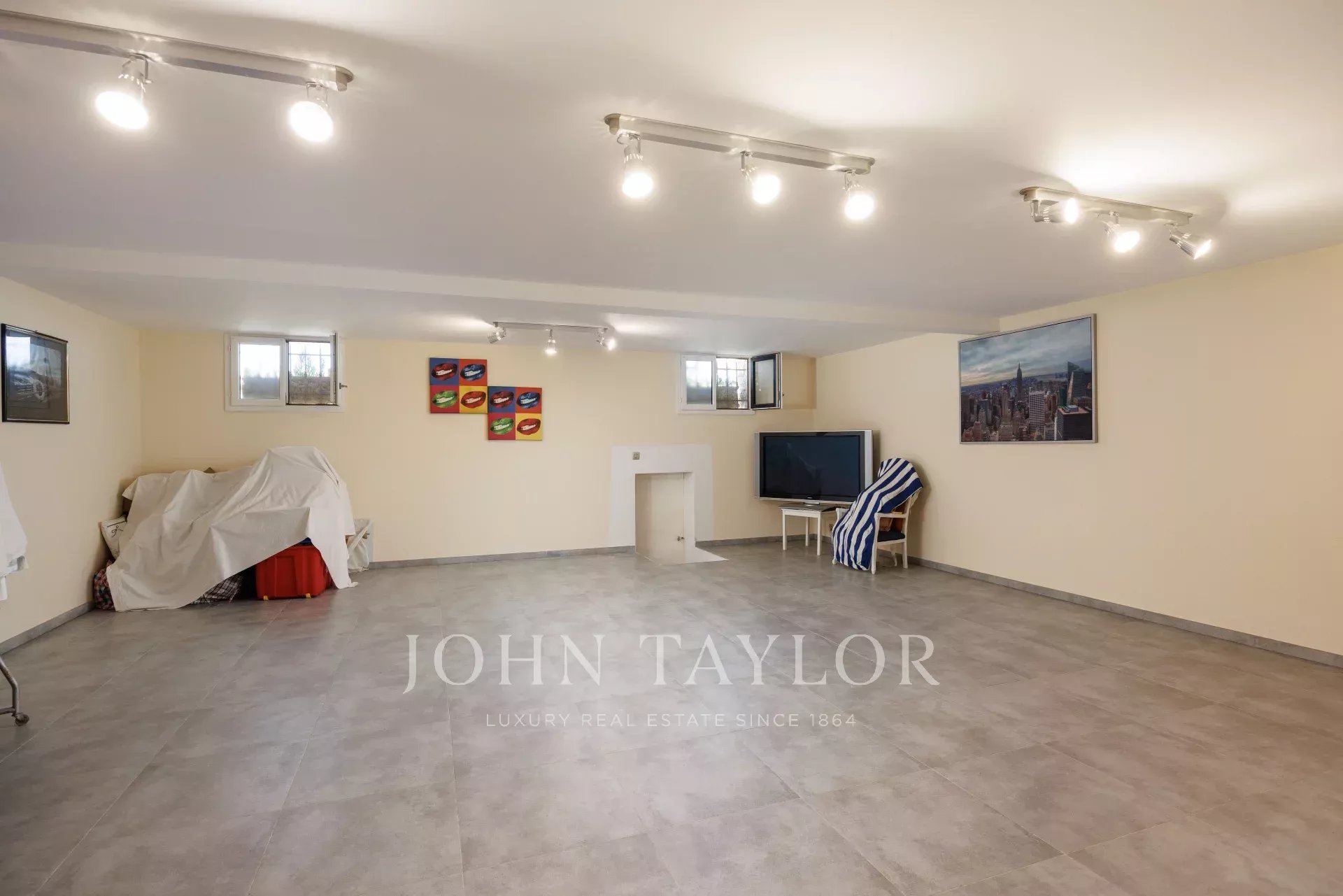 A cave inclui uma casa de banho, uma adega/adega de vinho e uma grande sala ladrilhada com cerca de 60 m² com duas janelas, oferecendo a possibilidade de criar uma sala de desporto, cinema, dormitório ou outro espaço conforme necessário.