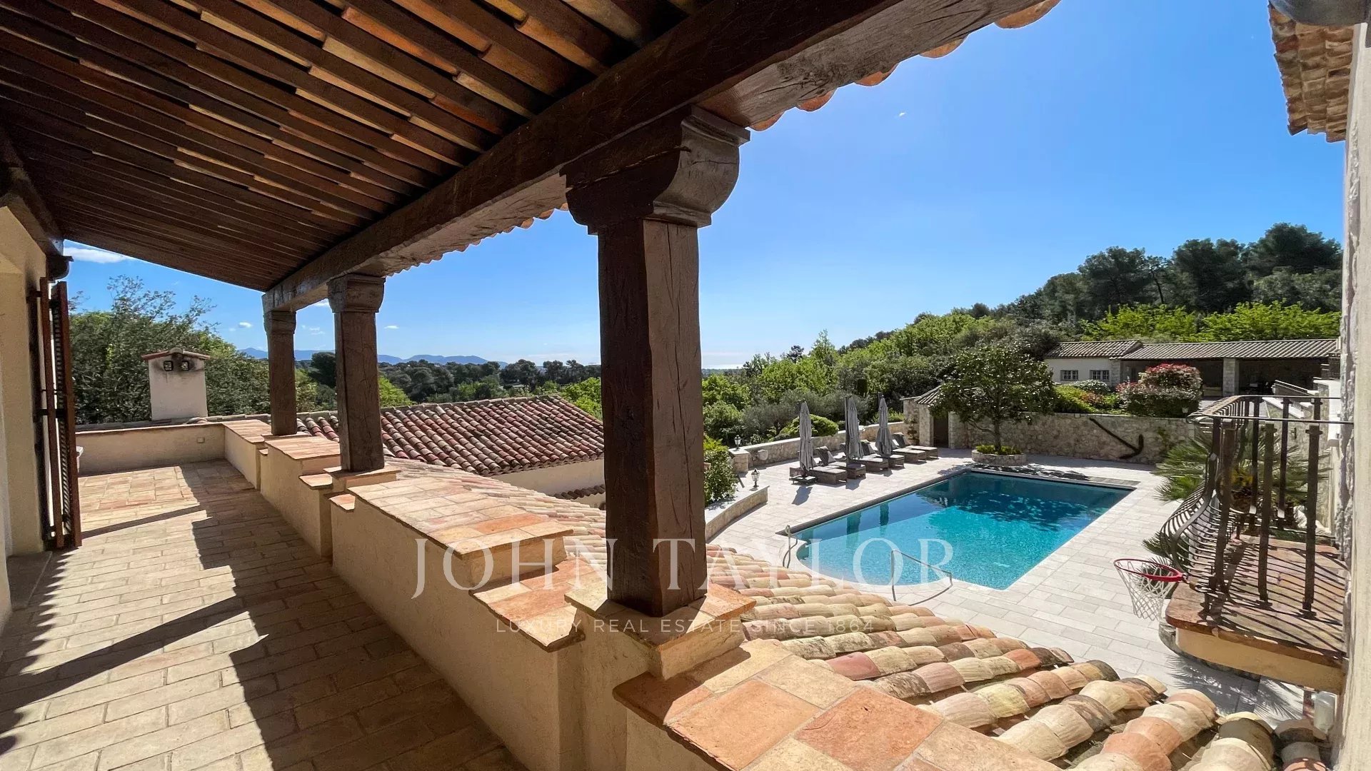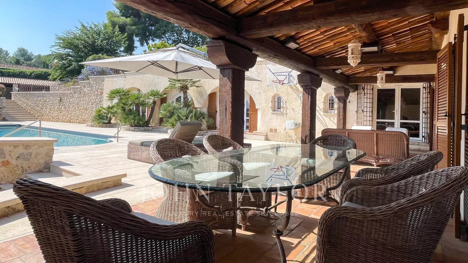 A poucos minutos da encantadora aldeia de La Colle-sur-Loup, goza de paz e sossego absolutos e de uma exposição ideal a sul, inserida num magnífico terreno ajardinado com cerca de 6.575 m². Este inclui uma piscina de espelho aquecida, grandes áreas relvadas, terraços em pedra e uma vasta área arborizada.