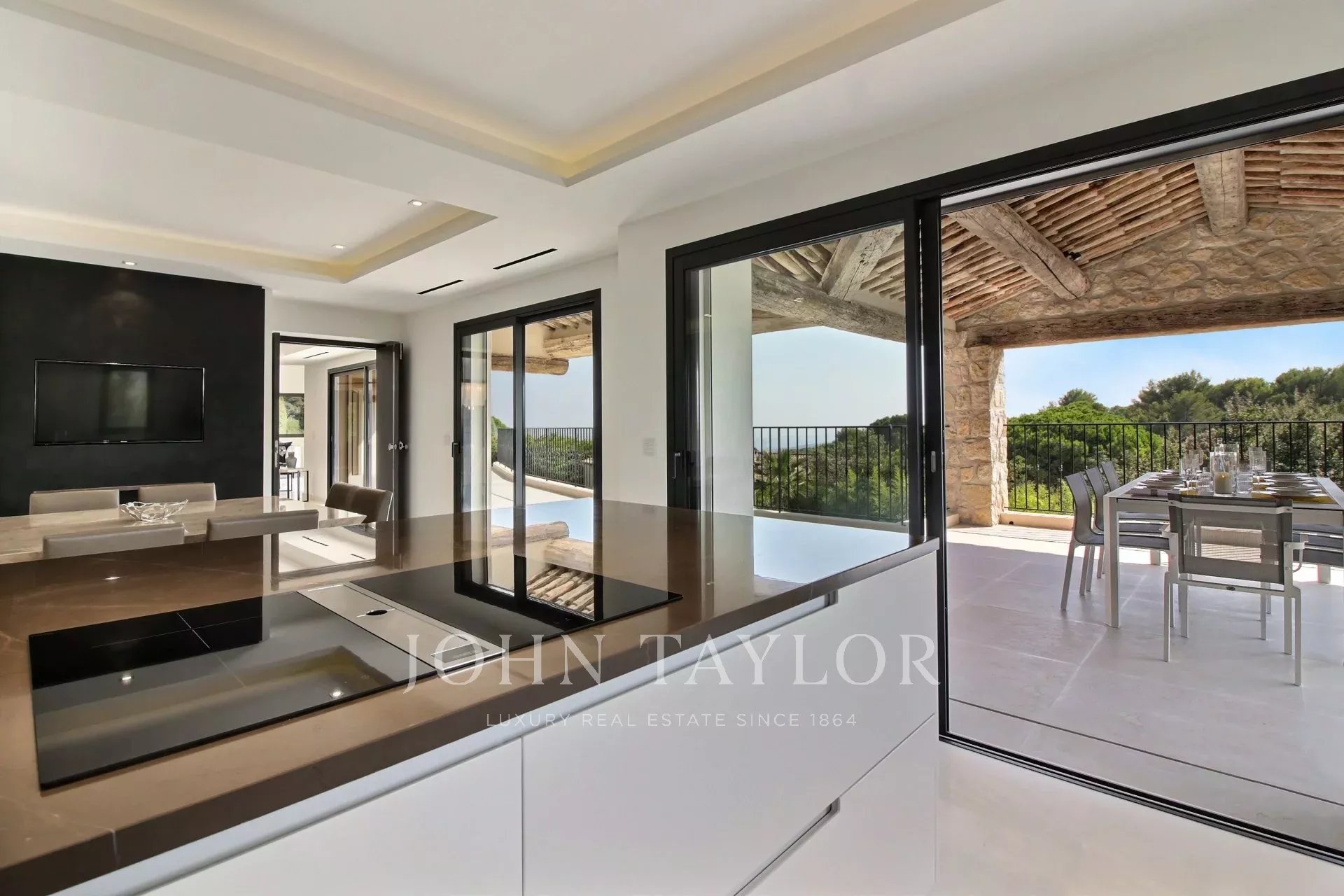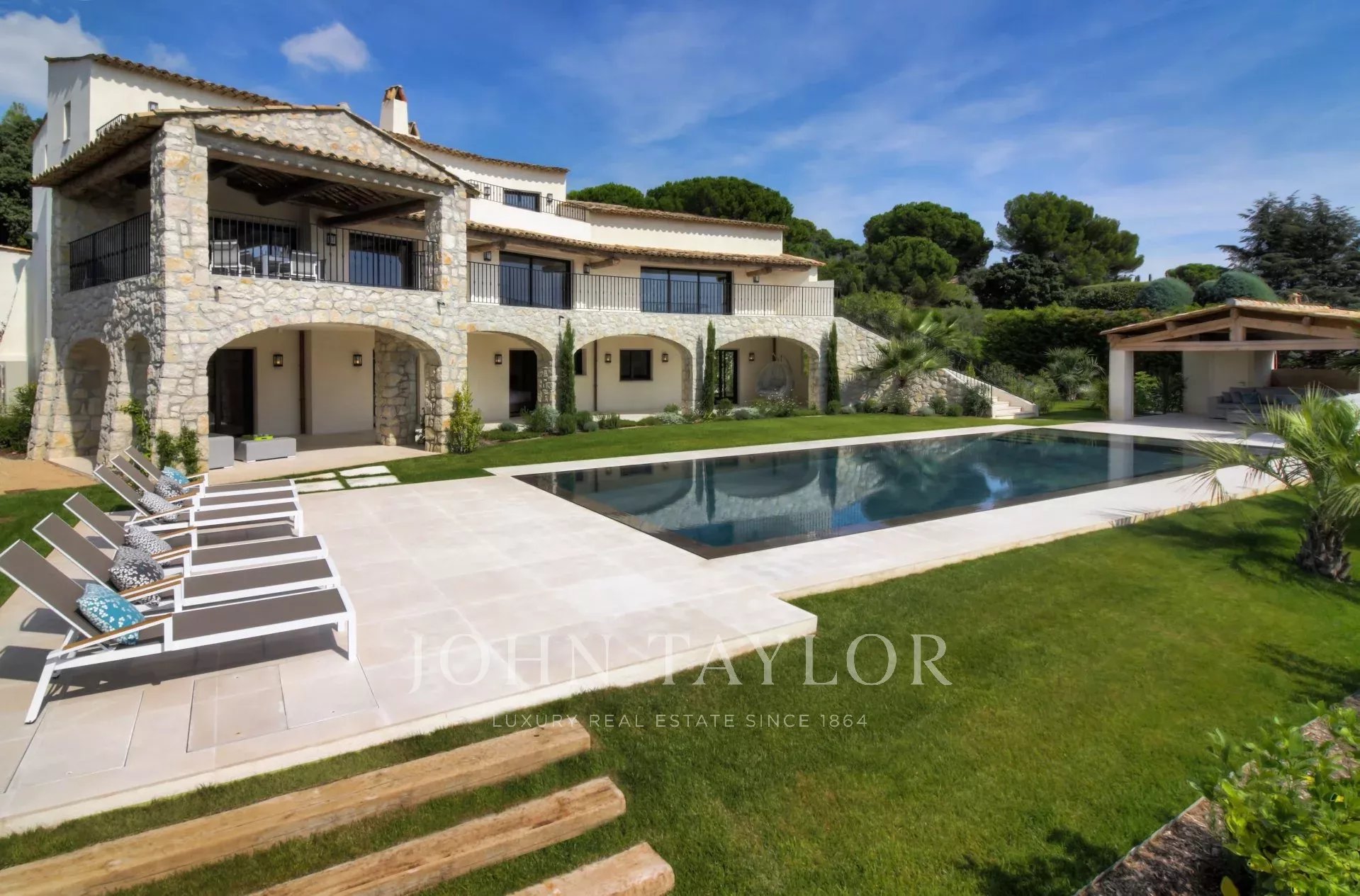 Totalmente renovada com um certo gosto pelo requinte e elegância, esta magnífica propriedade de cerca de 450 m² combina perfeitamente o charme provençal com linhas modernas nos interiores. Esta propriedade de luxo, orientada para sueste, estende-se por um jardim paisagístico de 2.500 m² com essências mediterrânicas e oferece uma vista de tirar o fôlego, aproveitando a luz brilhante da Côte d’Azur com sua piscina espelho aquecida, uma casa de piscina equipada, uma cozinha de verão, uma área lounge coberta, um chuveiro e um campo de petanca.