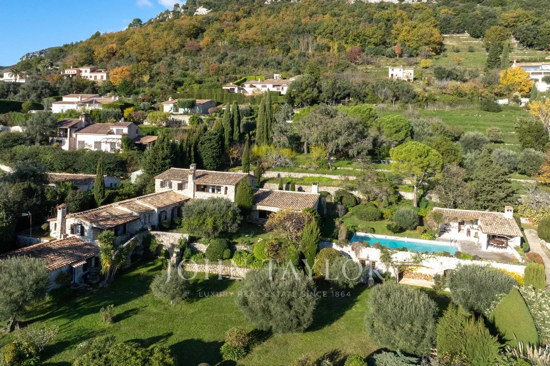 Numa posição dominante e a dois passos da encantadora e animada aldeia de Tourrettes-sur-Loup, esta majestosa bastide de pedra com cerca de 350 m² estende-se por um magnífico terreno com cerca de 5 600 m², incluindo grandes áreas planas. Oferece uma vista panorâmica sobre o mar de cortar a respiração. O seu encanto autêntico, realçado por materiais nobres e uma arquitetura intemporal, confere a esta propriedade um carácter único.