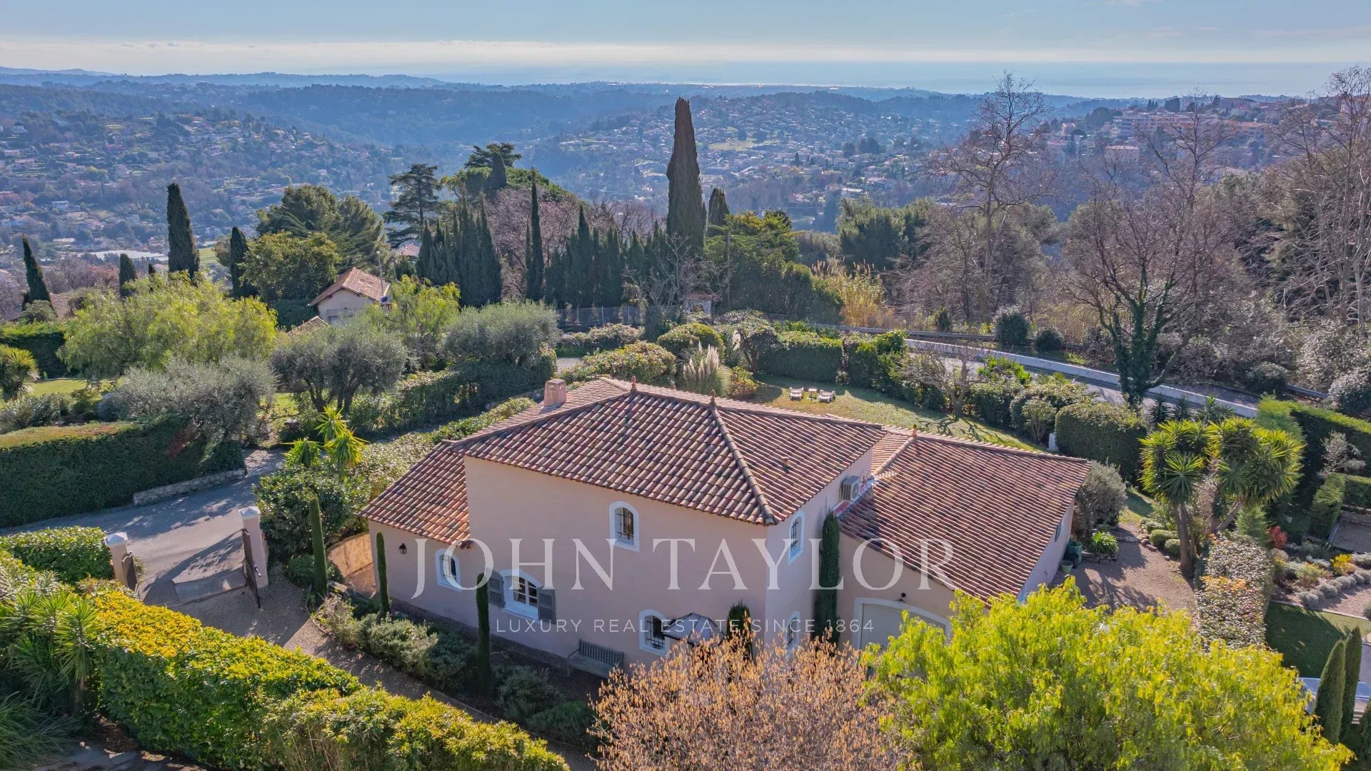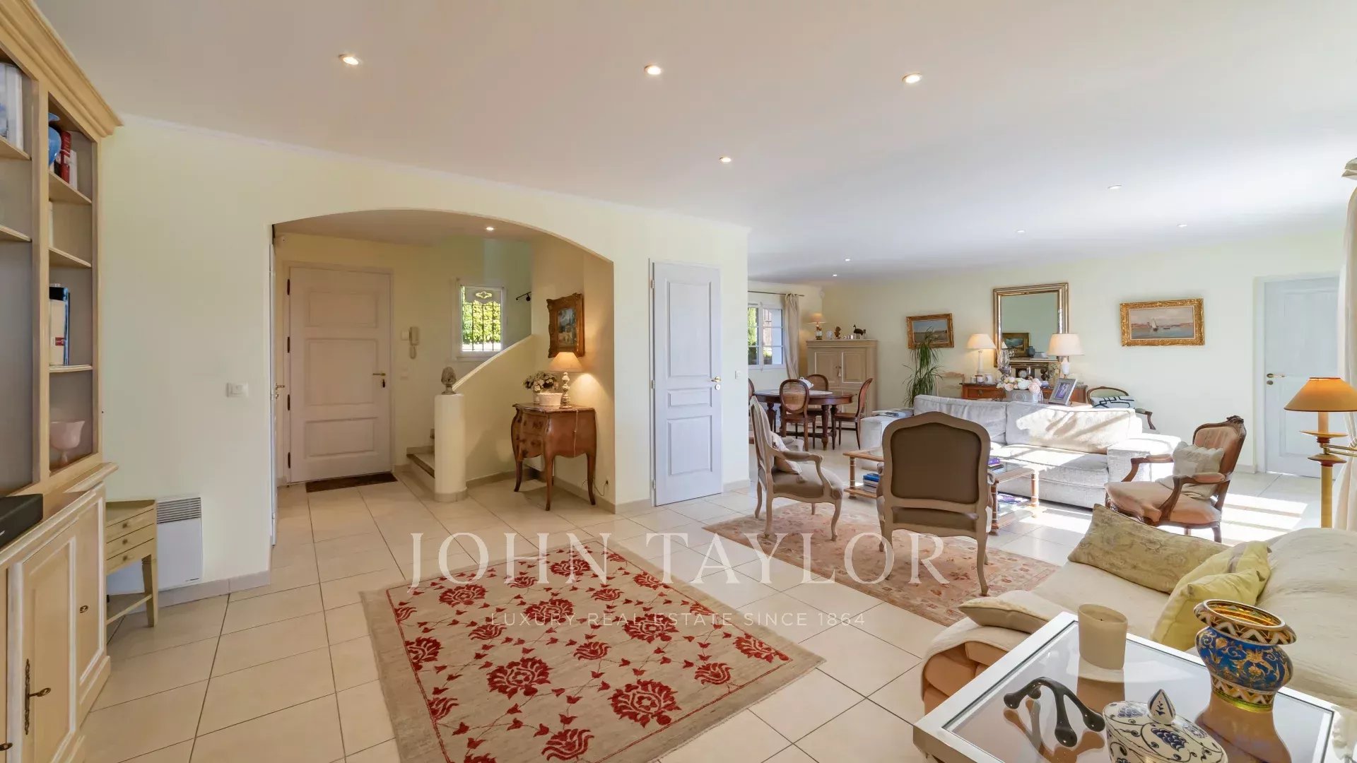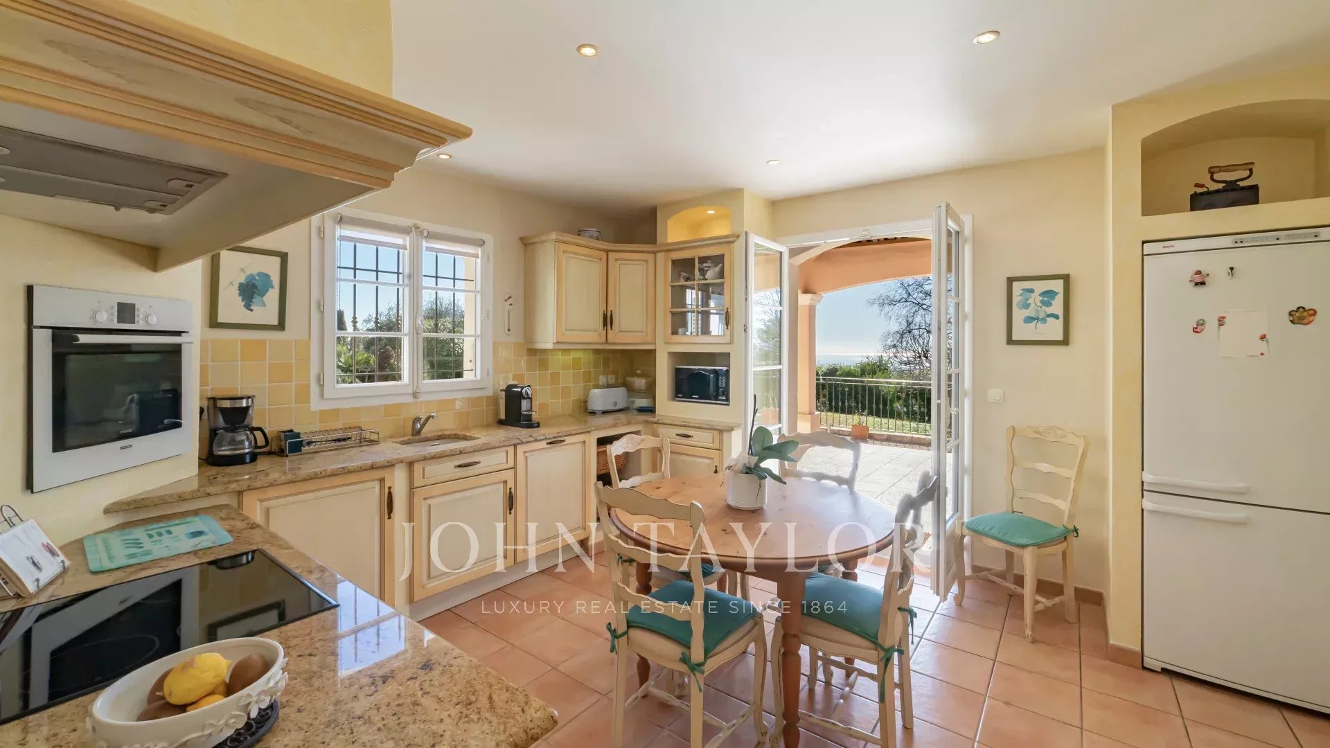 Situada numa zona residencial muito procurada, esta elegante moradia provençal com cerca de 158 m² e 4 quartos oferece um ambiente de vida excecional. Situada num terreno ajardinado de 1.500 m², dispõe de uma piscina, de vistas panorâmicas sobre o mar e de um ambiente luxuriante.