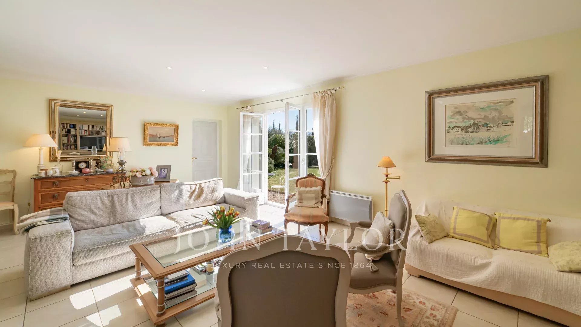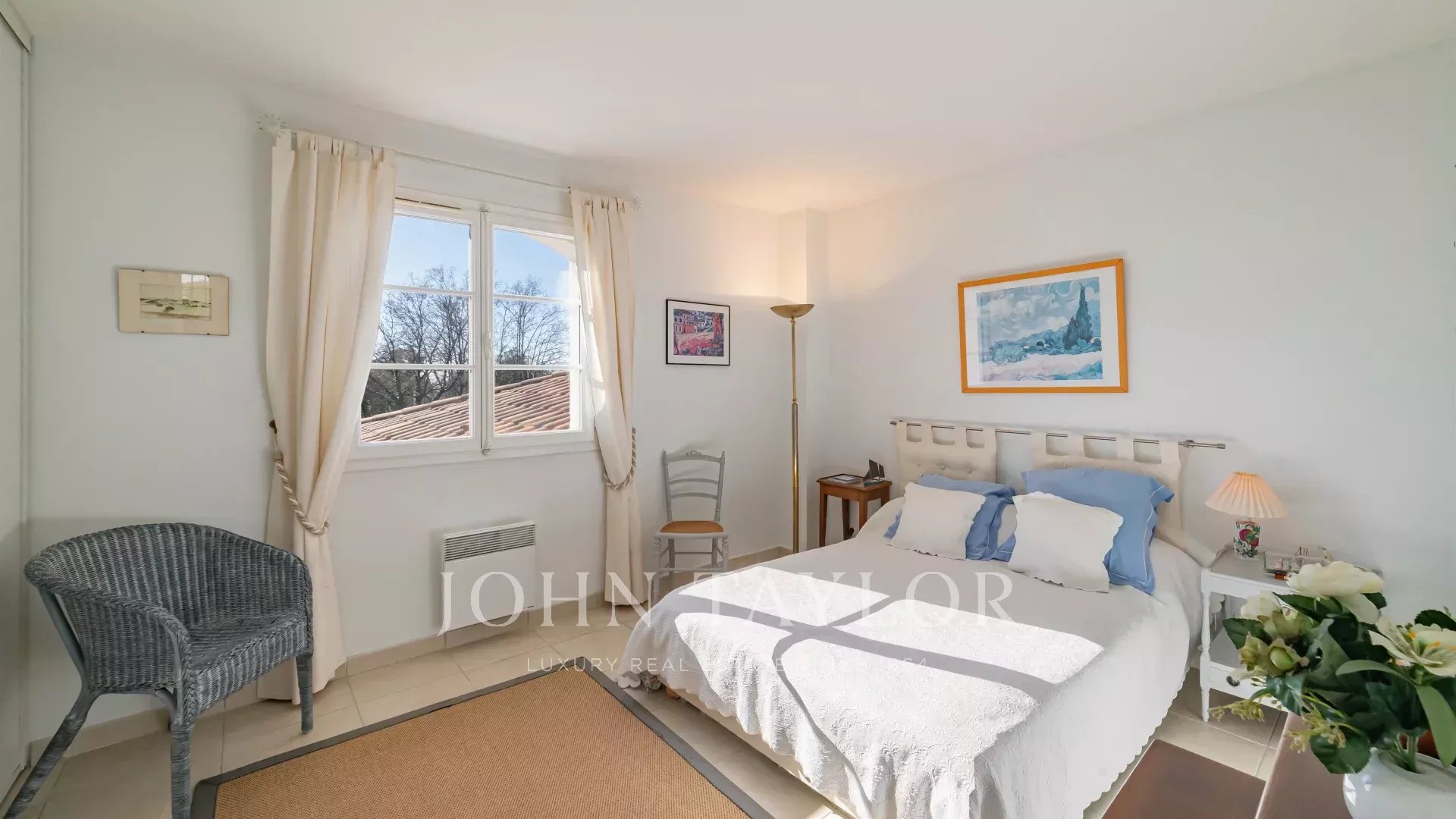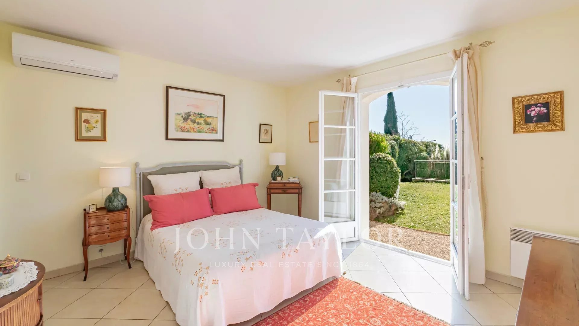 Situada numa zona residencial muito procurada, esta elegante moradia provençal com cerca de 158 m² e 4 quartos oferece um ambiente de vida excecional. Situada num terreno ajardinado de 1.500 m², dispõe de uma piscina, de vistas panorâmicas sobre o mar e de um ambiente luxuriante.