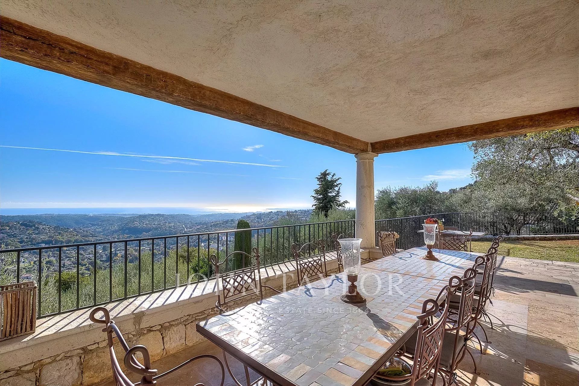 Situada numa zona muito procurada, com vista para o mar e para o Cap d'Antibes panorâmico, esta sumptuosa residência em pedra com 600 m² oferece quartos espaçosos e cheios de luz, inseridos em 3 950 m² de parque mediterrânico salpicado de oliveiras, com uma enorme piscina espelhada e uma casa de piscina.