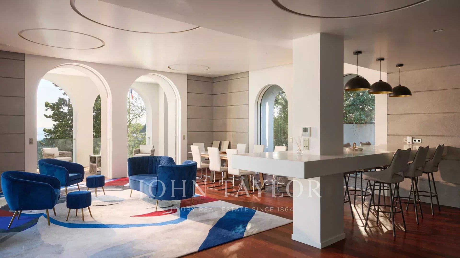 A villa de Maitre dos anos 20 é composta por uma vasta sala de estar, sala de jantar, cozinha e três quartos em suite, incluindo um quarto principal.