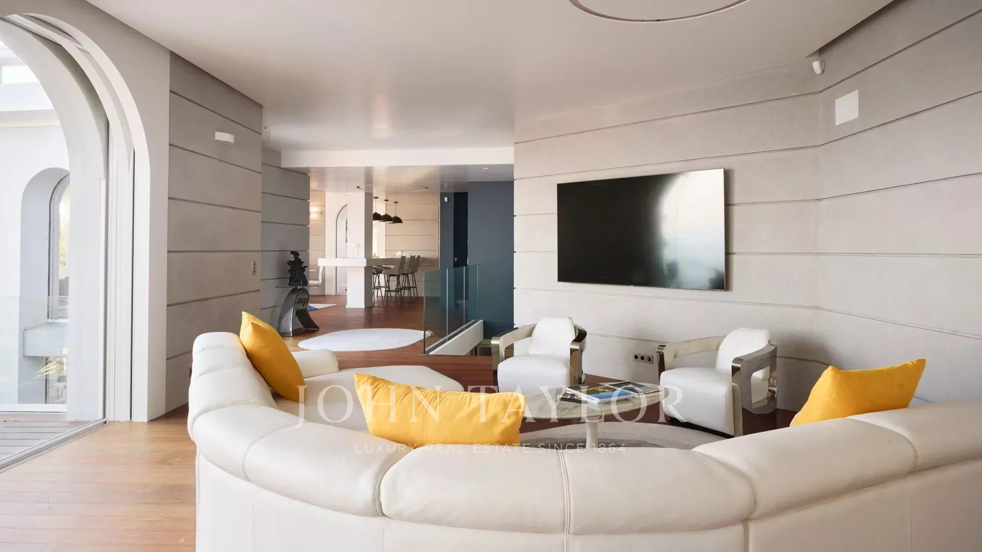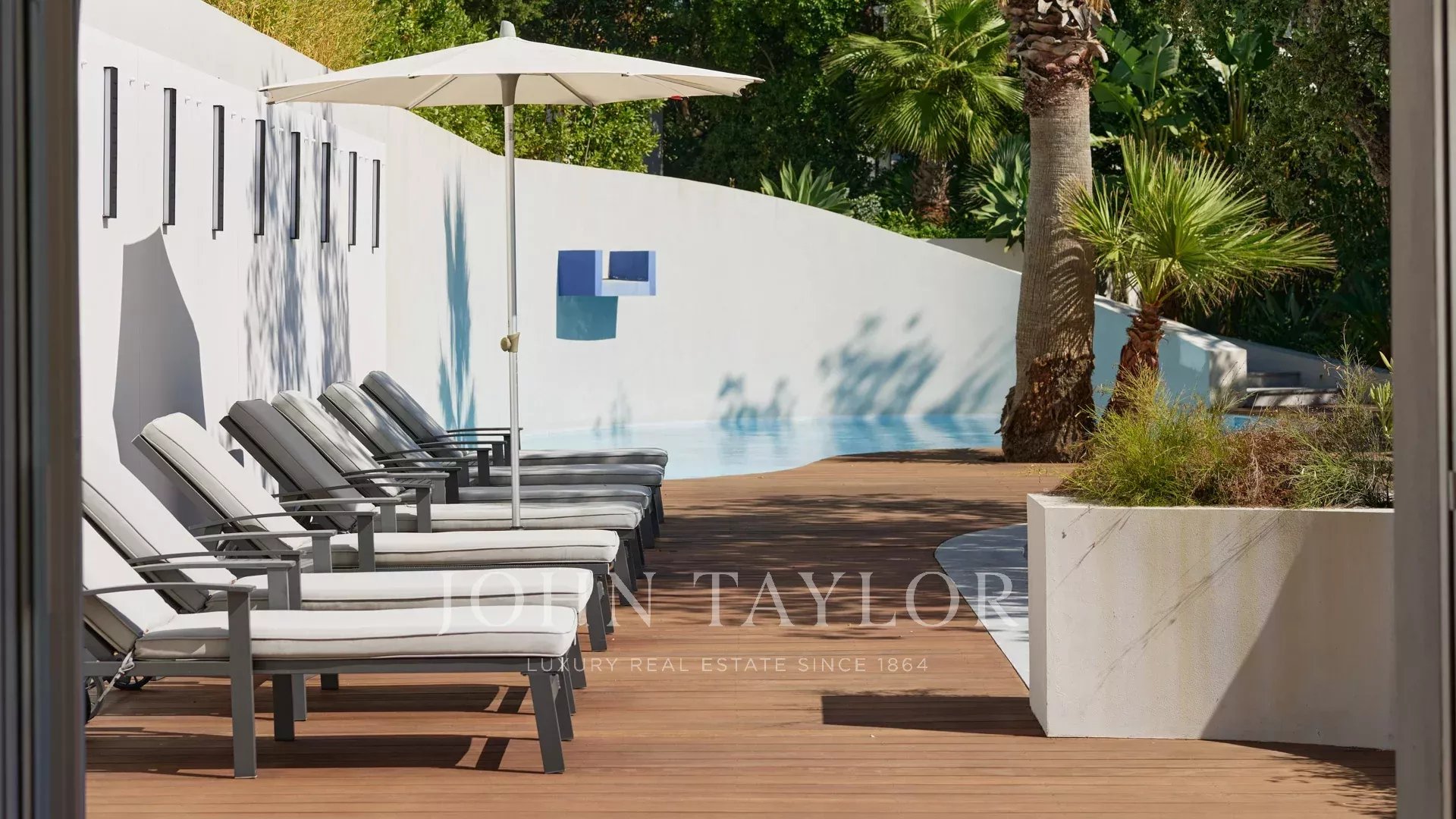 A propriedade dispõe de equipamento topo de gama, materiais de qualidade, um spa, uma sauna, um terraço no telhado e uma piscina de 84 m2 rodeada por vastas praias ao mesmo nível das salas de estar.