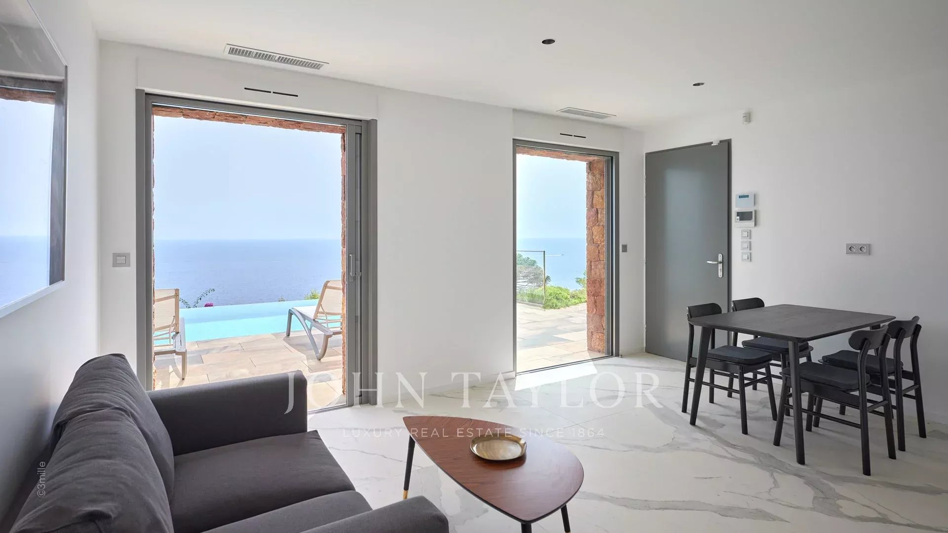 Situada numa posição dominante em absoluta paz e sossego em Théoule-sur-Mer, apenas a 5 minutos da aldeia, esta nova moradia num terreno de 2004 m² goza de vistas espectaculares sobre o mar.
