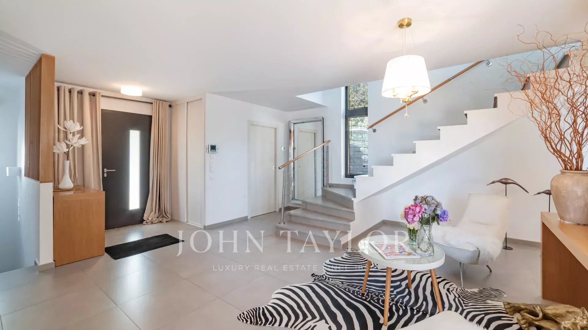 1º andar: Quarto principal que abre para um terraço coberto com 2 quartos de vestir, 1 casa de banho com duche, WC separado - 1 escritório que abre para o terraço - 1 quarto com casa de banho, duche e WC FR.