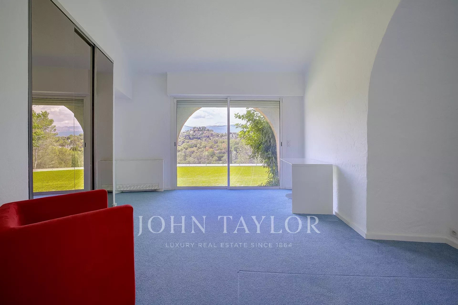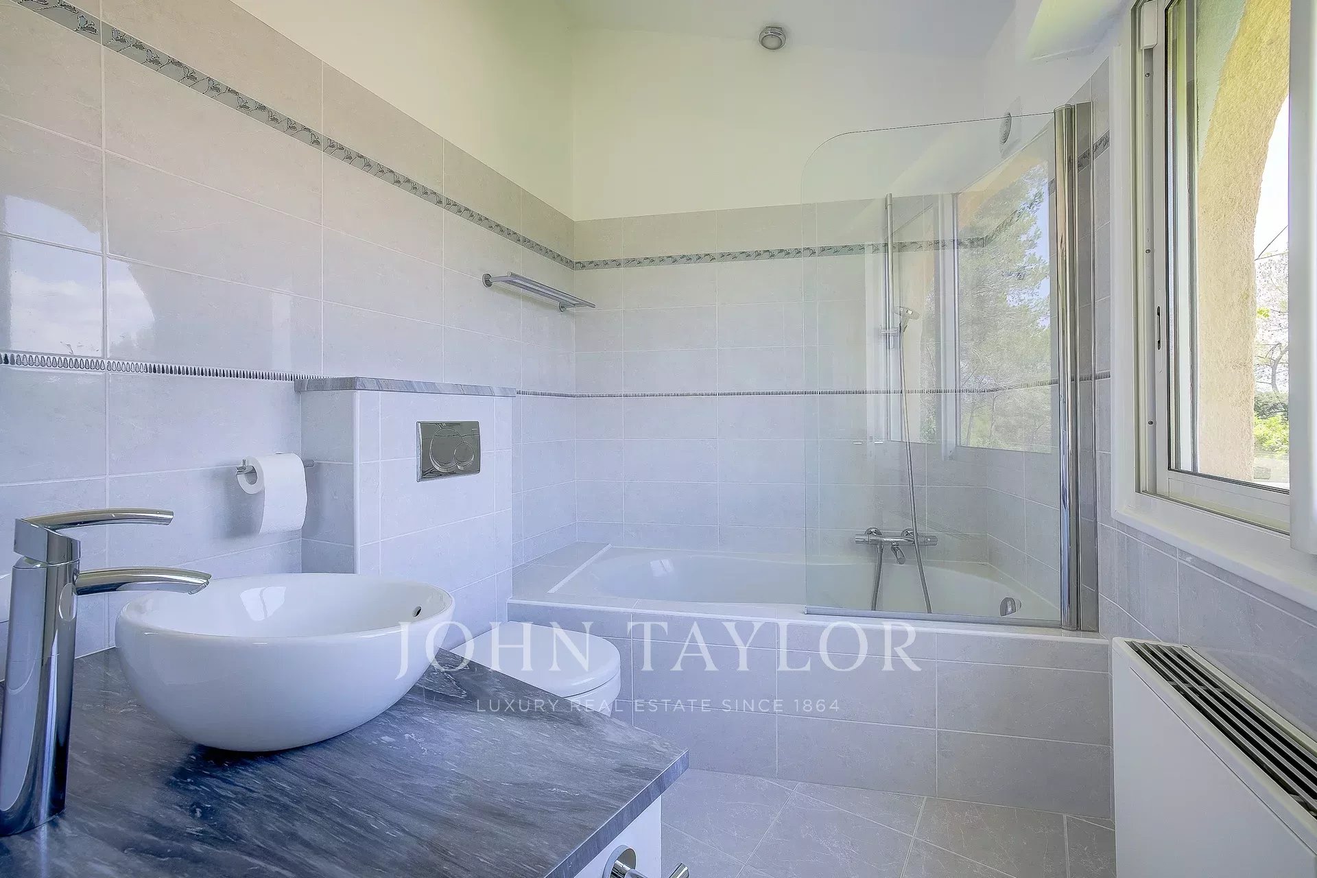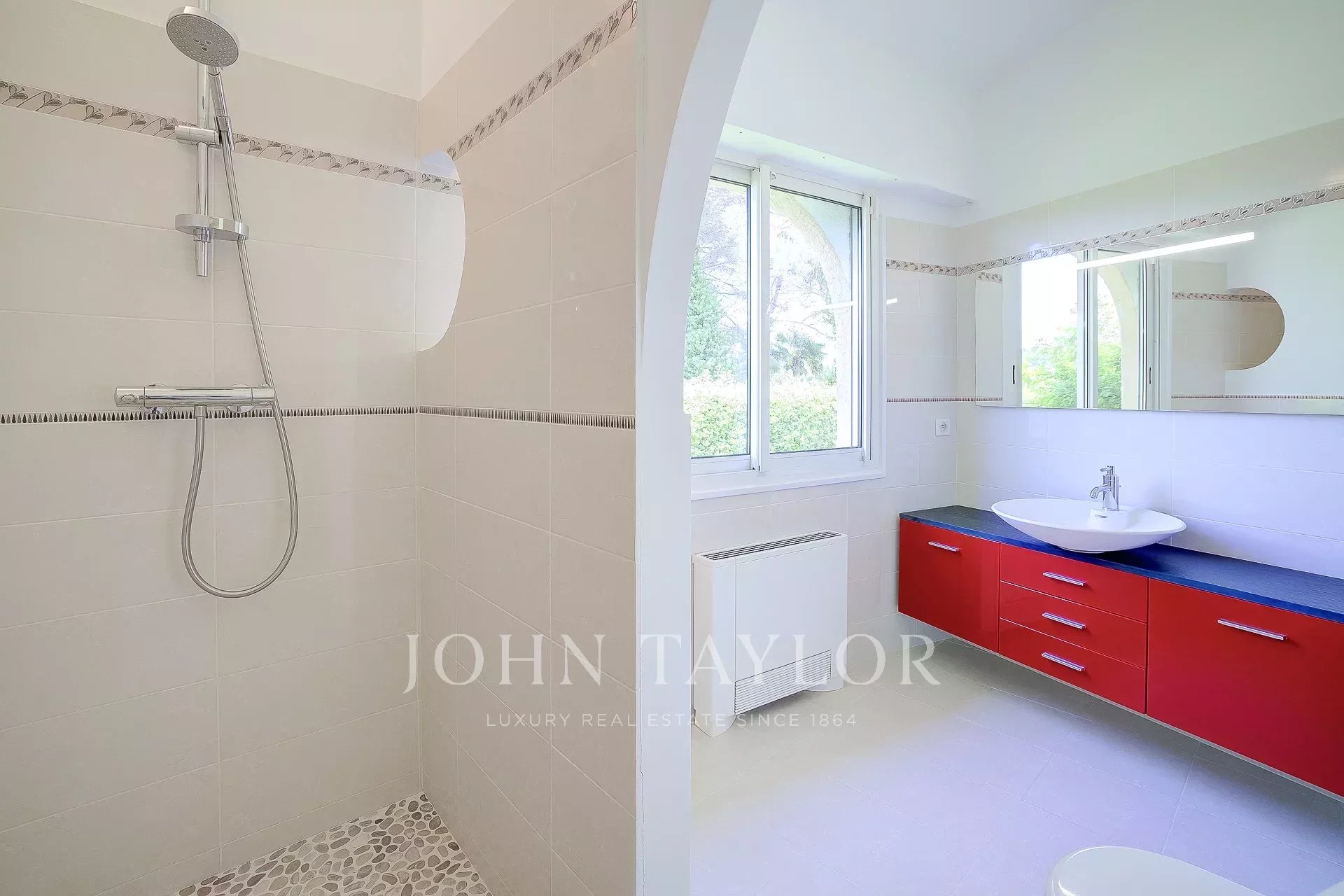 Banhado em luz, o rés do chão apresenta um hall de entrada com casa de banho de serviço, uma cozinha, sala de jantar, uma vasta sala de estar que se abre para um terraço profundo, para o jardim e para a vista através de grandes janelas salientes, um quarto principal com casa de banho e quarto de vestir, 3 outros quartos em suite com casas de banho ou chuveiros.