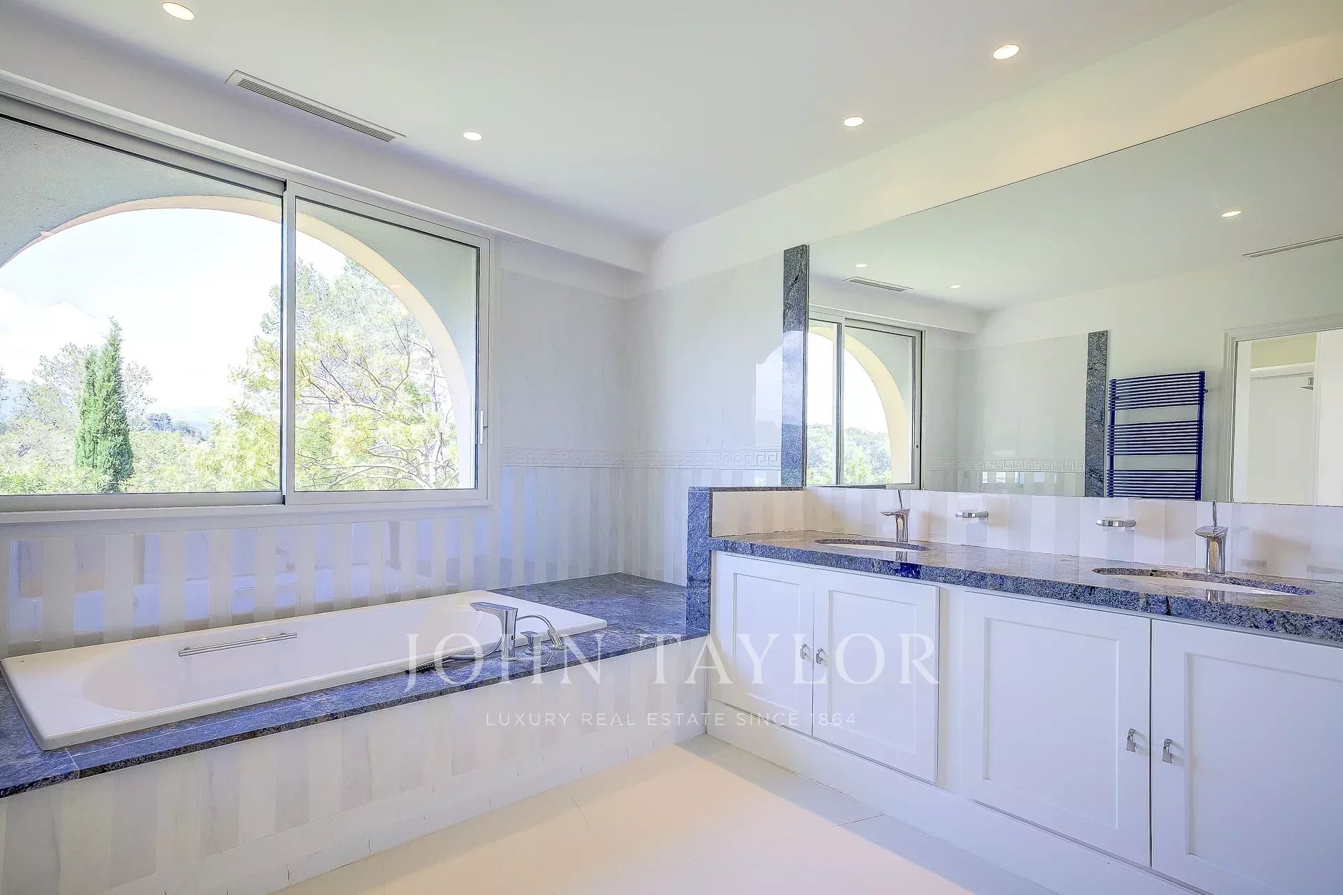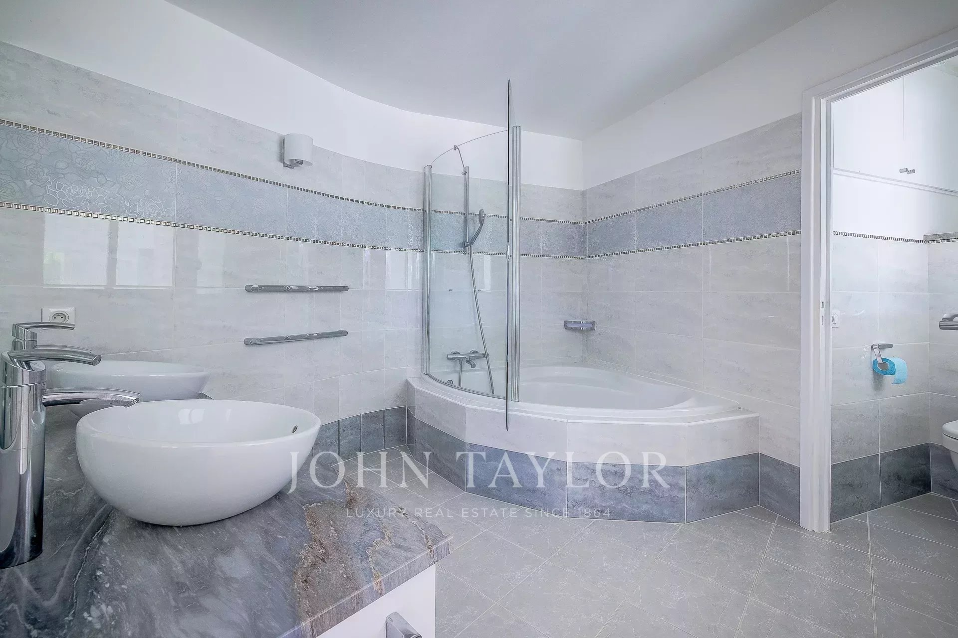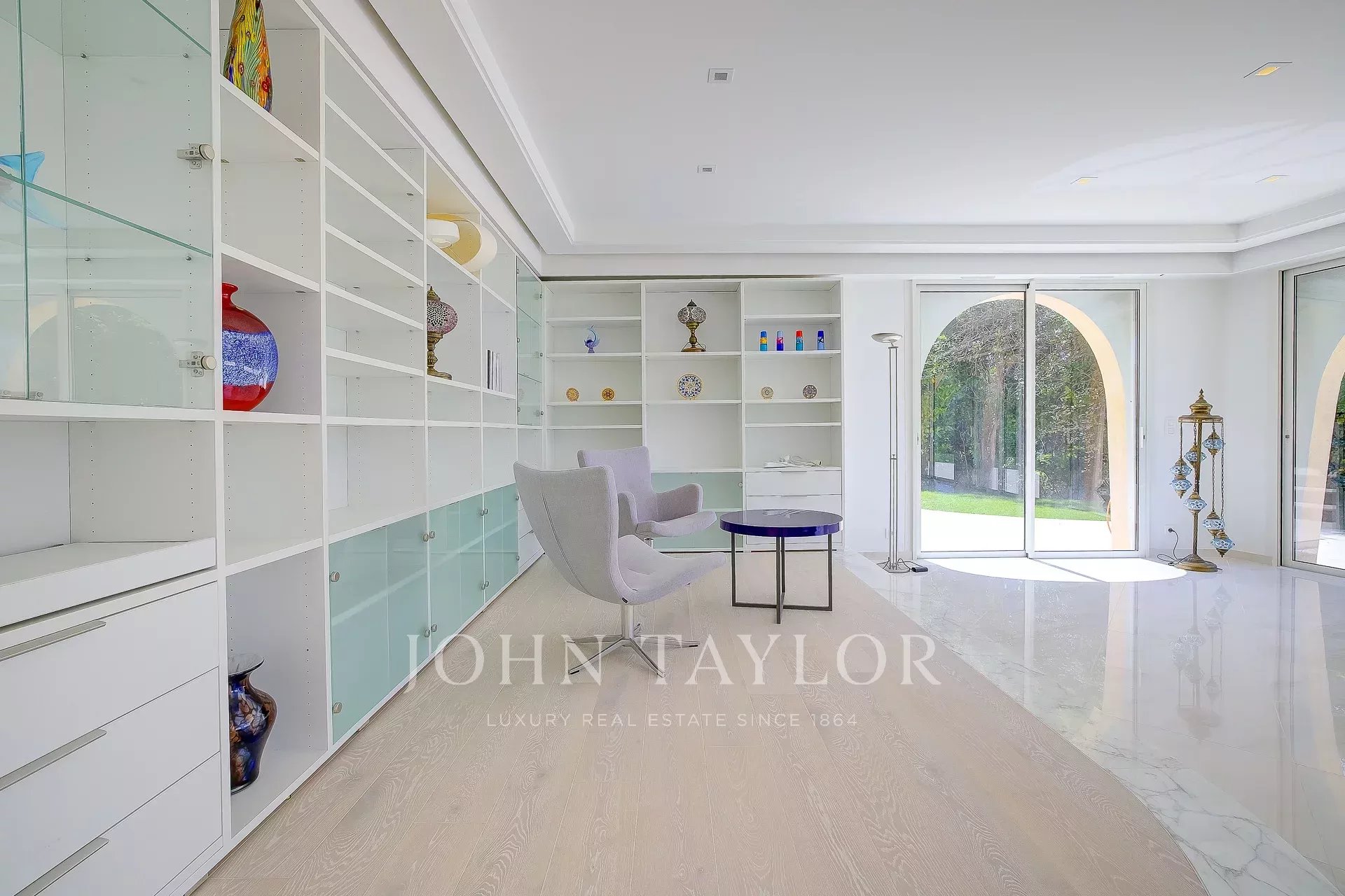 Banhado em luz, o rés do chão apresenta um hall de entrada com casa de banho de serviço, uma cozinha, sala de jantar, uma vasta sala de estar que se abre para um terraço profundo, para o jardim e para a vista através de grandes janelas salientes, um quarto principal com casa de banho e quarto de vestir, 3 outros quartos em suite com casas de banho ou chuveiros.