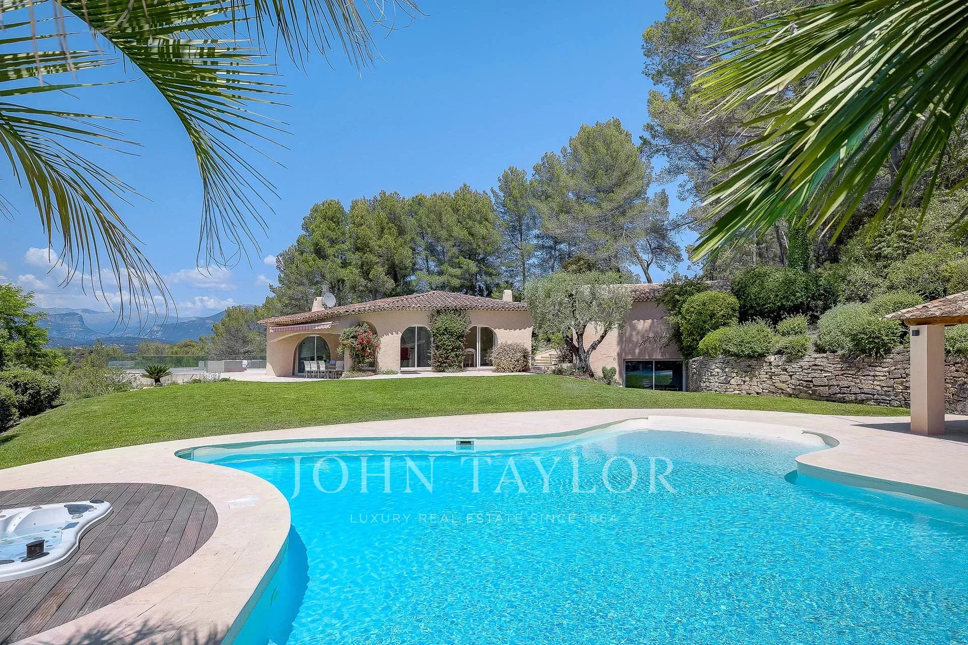 A meio caminho entre Mougins e Valbonne, na zona residencial de Le Redon, uma soberba propriedade inspirada em Couëlle, situada num terreno ajardinado de cerca de 10 300 m² com piscina, jacuzzi e casa da piscina.