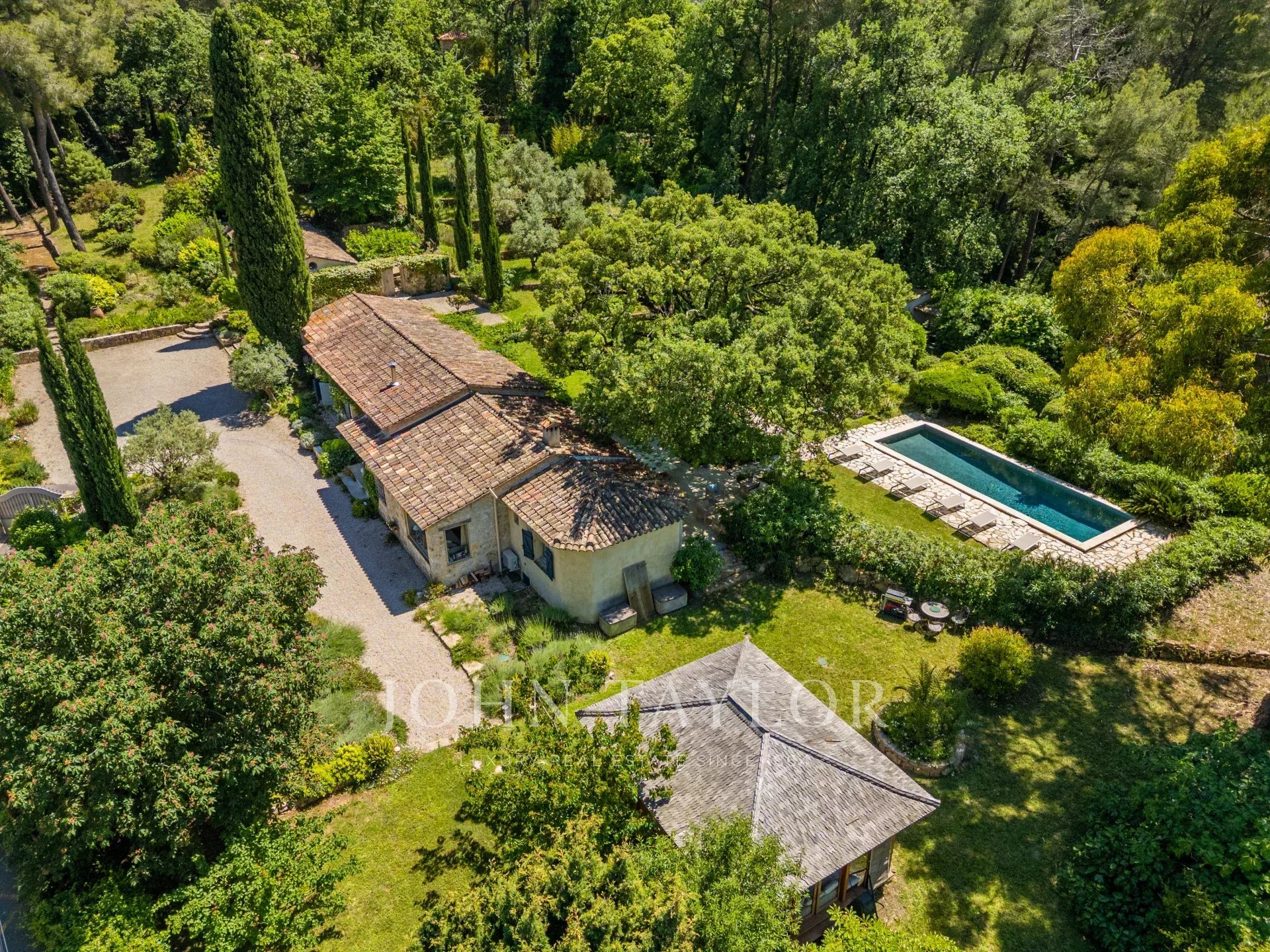 Pensada para receber família e amigos com toda independência, uma casa de hóspedes de 61 m² complementa este bem de exceção. Ela dispõe de dois quartos e de sua piscina privativa aquecida, oferecendo um espaço íntimo e exclusivo.