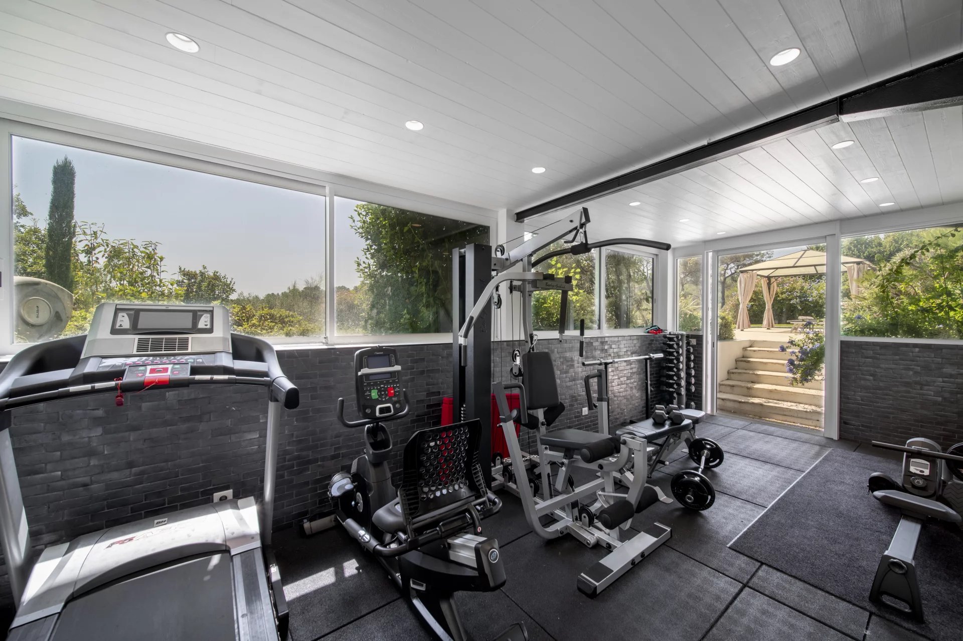Para trabalho e lazer, a propriedade inclui dois espaços de escritório dedicados, uma sala de cinema e um ginásio totalmente equipado, garantindo produtividade e descontração.
