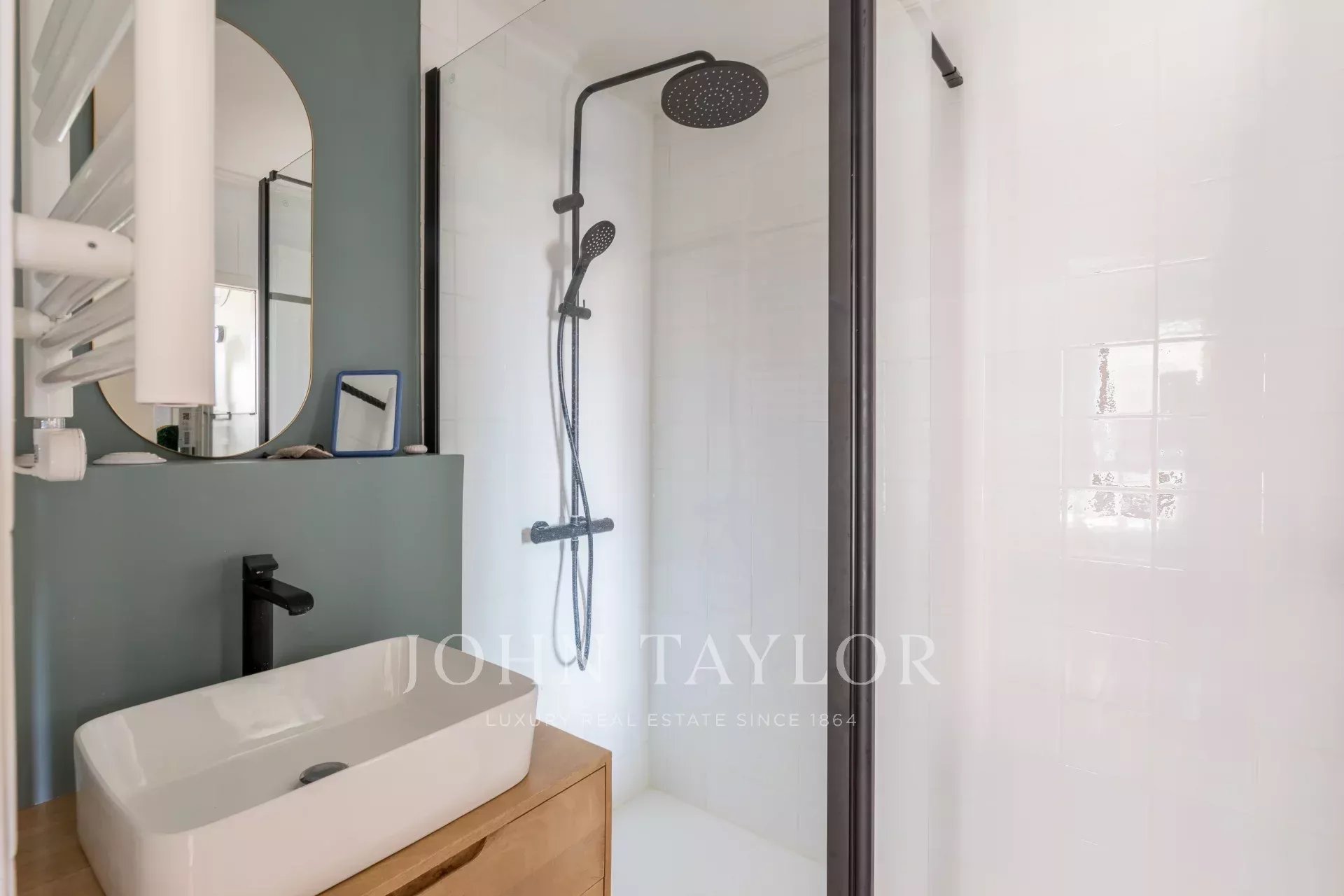 No andar de cima há cinco quartos luminosos, incluindo uma magnífica suite principal, quatro casas de banho, uma lavandaria e um terraço grande e solarengo de 20 m².