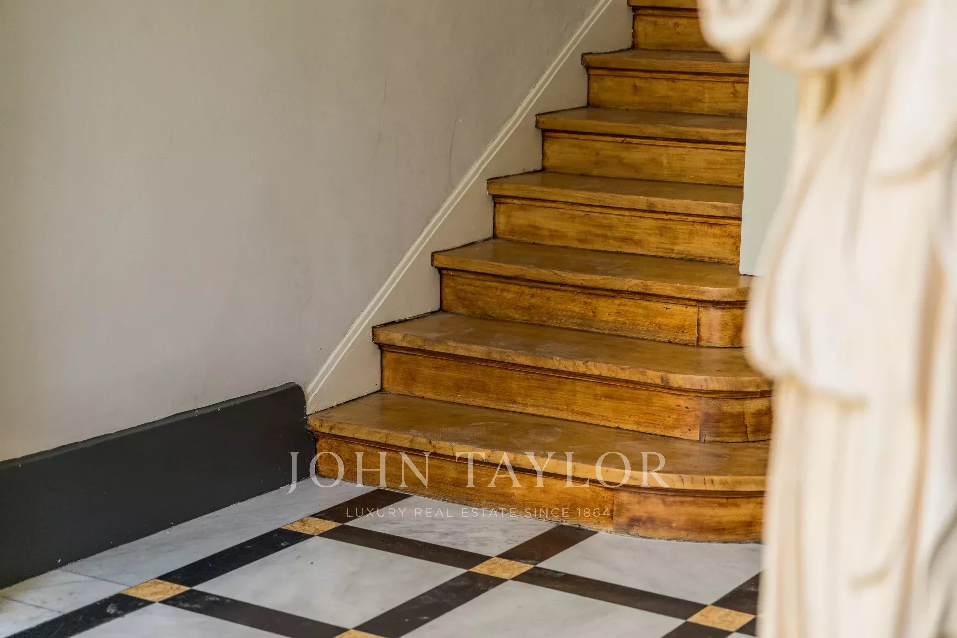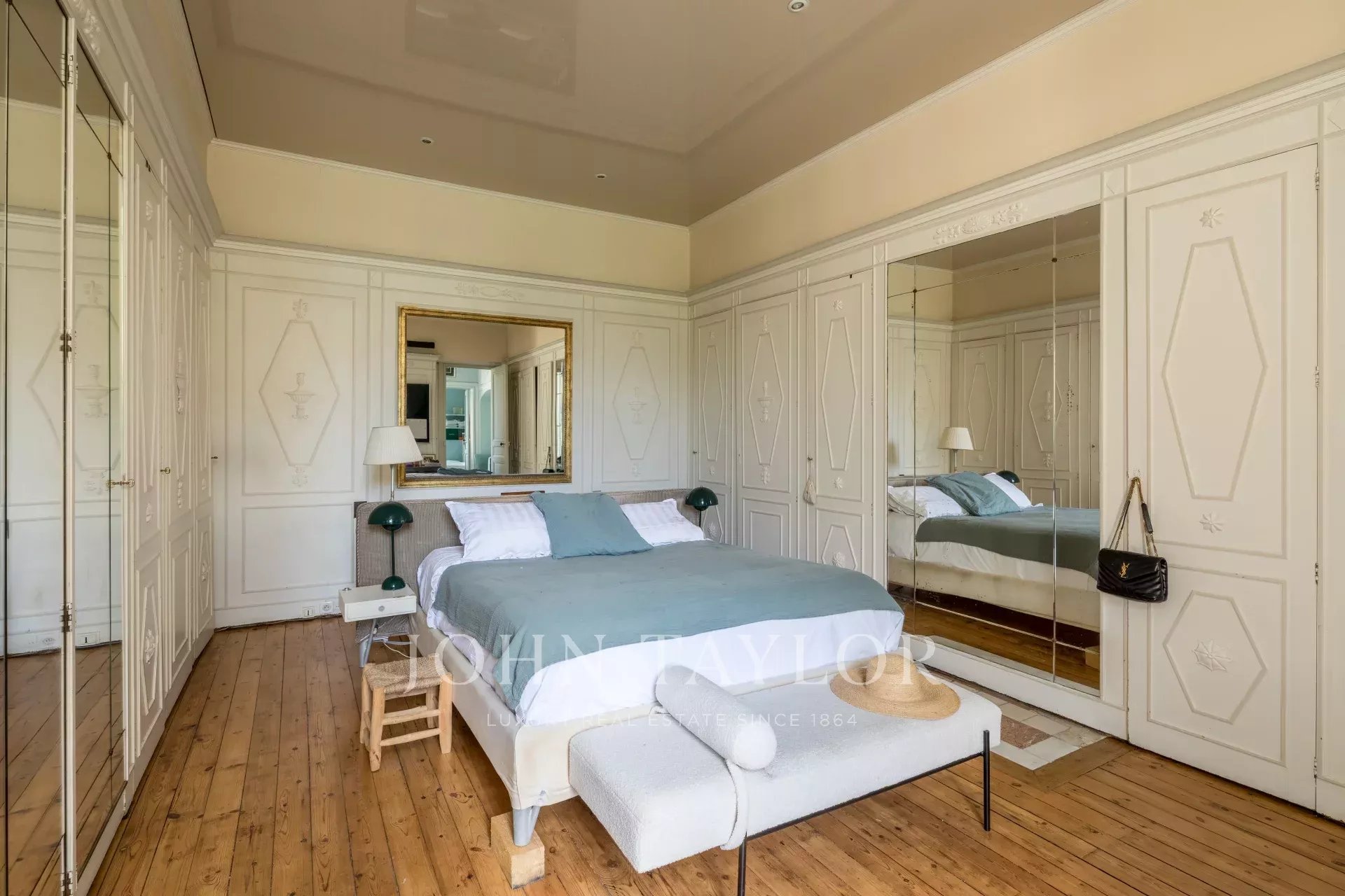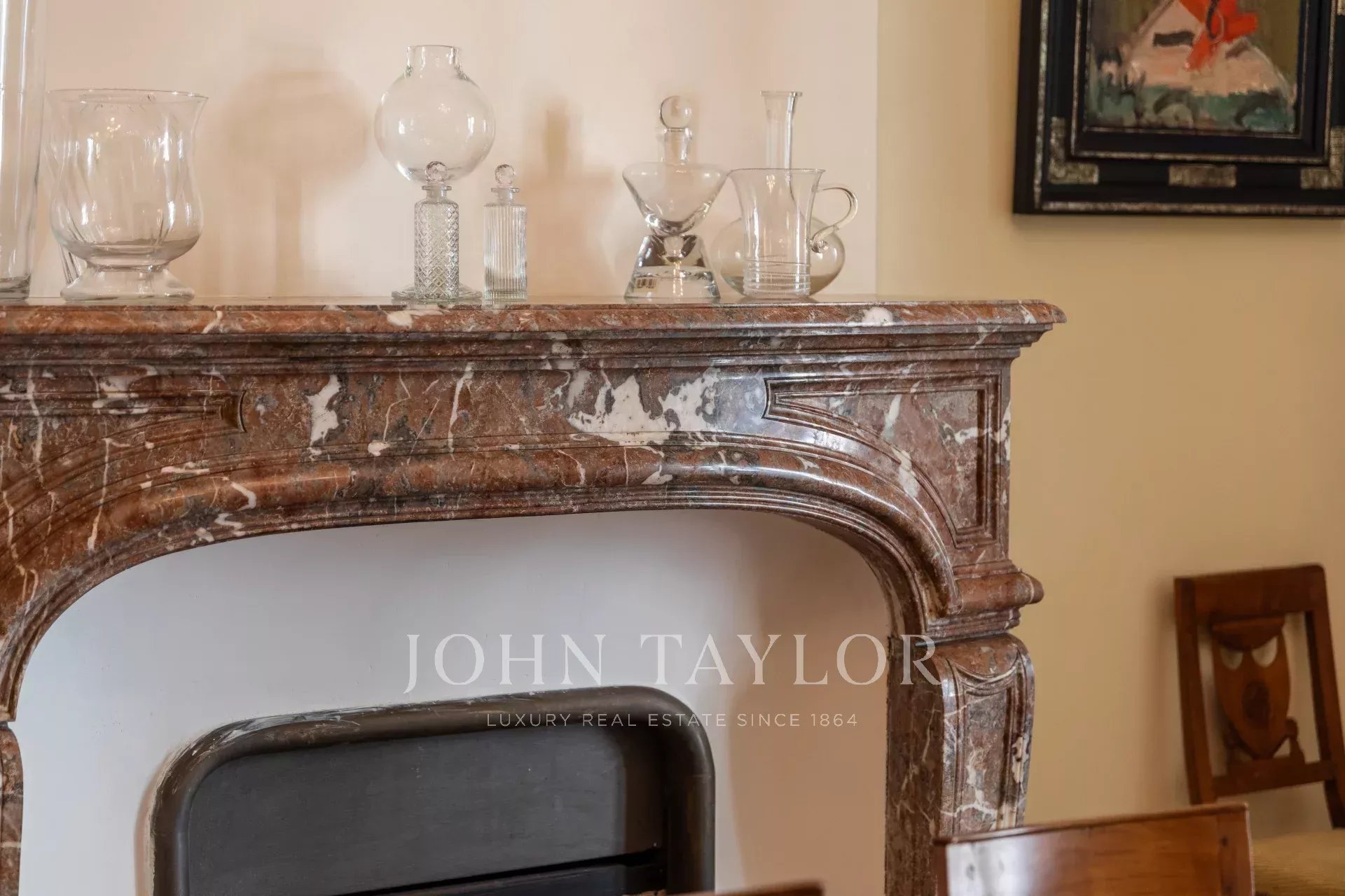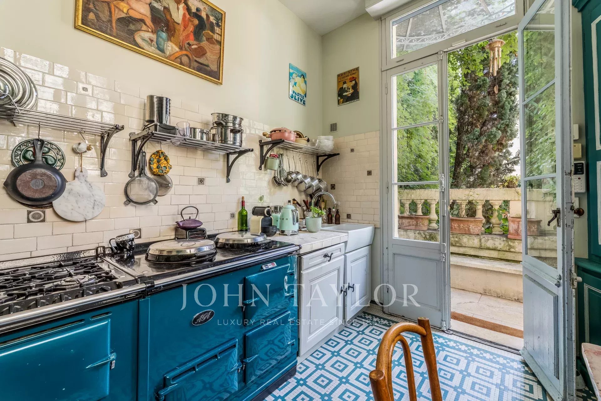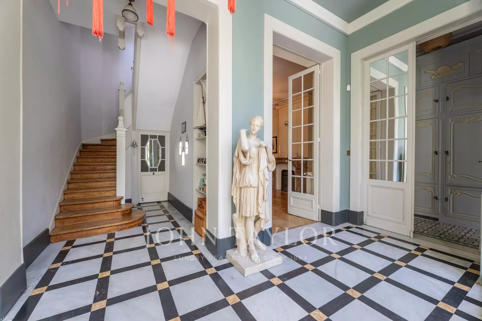 A partir da entrada, o magnífico hall de entrada banhado de luz com as suas janelas salientes conduz a um salão muito elegante com uma biblioteca nobre, um grande escritório com vista para a piscina, uma cozinha encantadora que se abre para o exterior e uma grande sala de jantar.