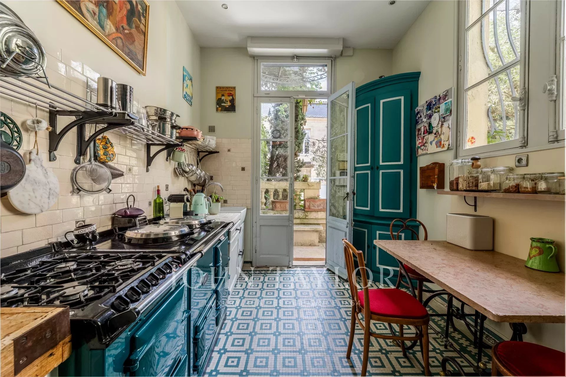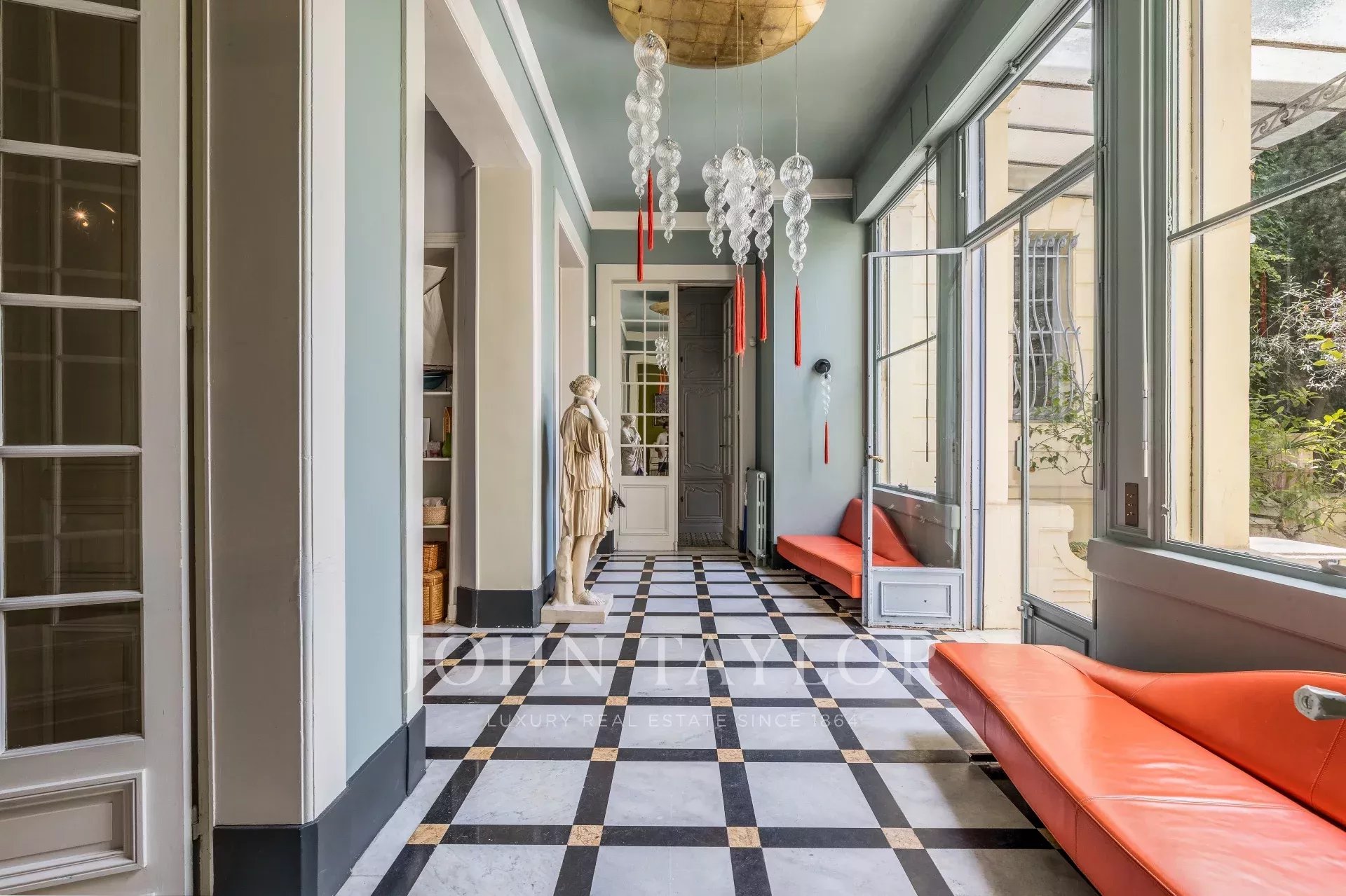 Perto da Place Pey Berland, escondida numa rua pedonal discreta, esta sumptuosa casa de cidade de 3 andares dispõe de uma piscina com piso móvel, um jardim de 150 m² plantado com árvores, uma cave de 95 m² e uma garagem dupla.