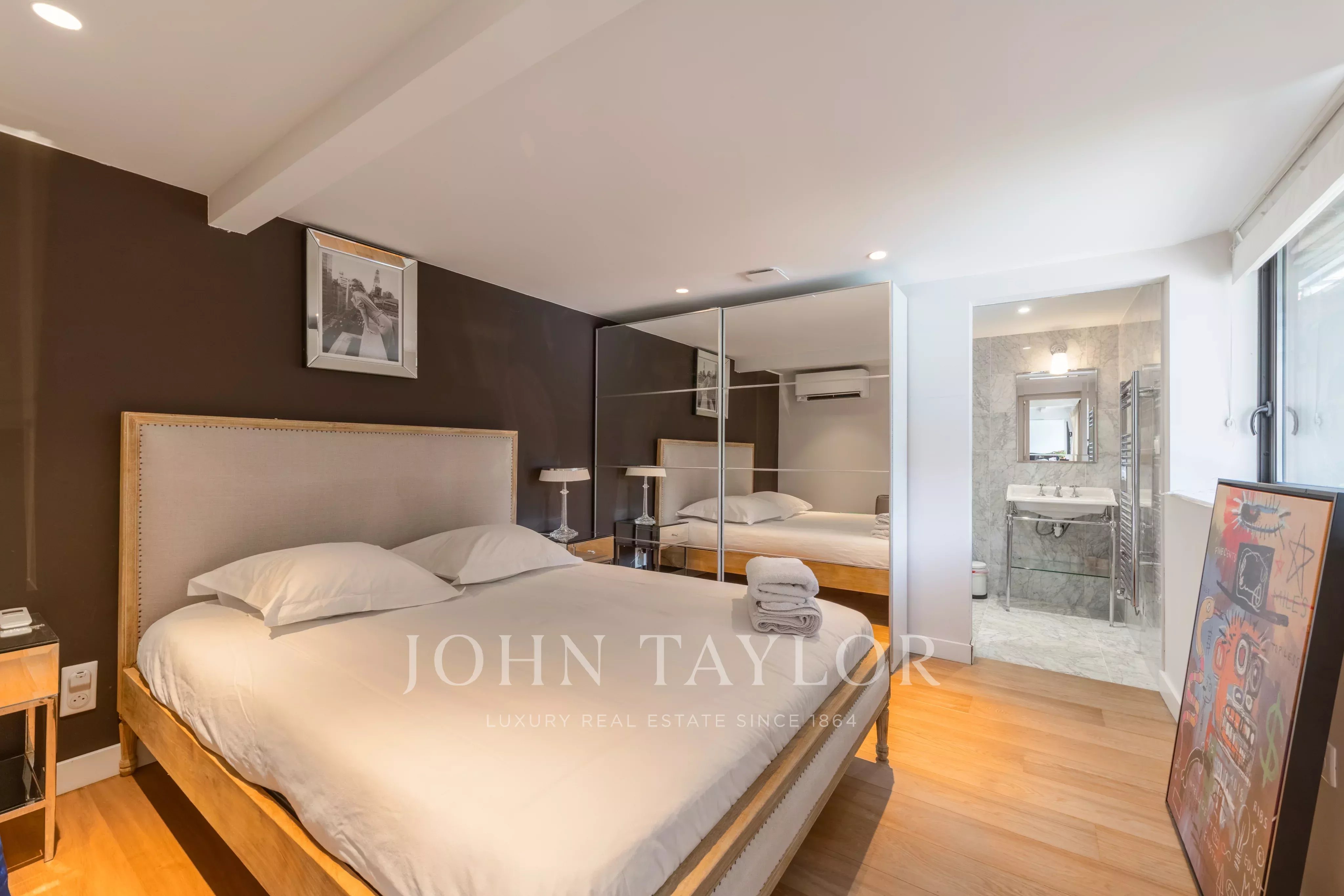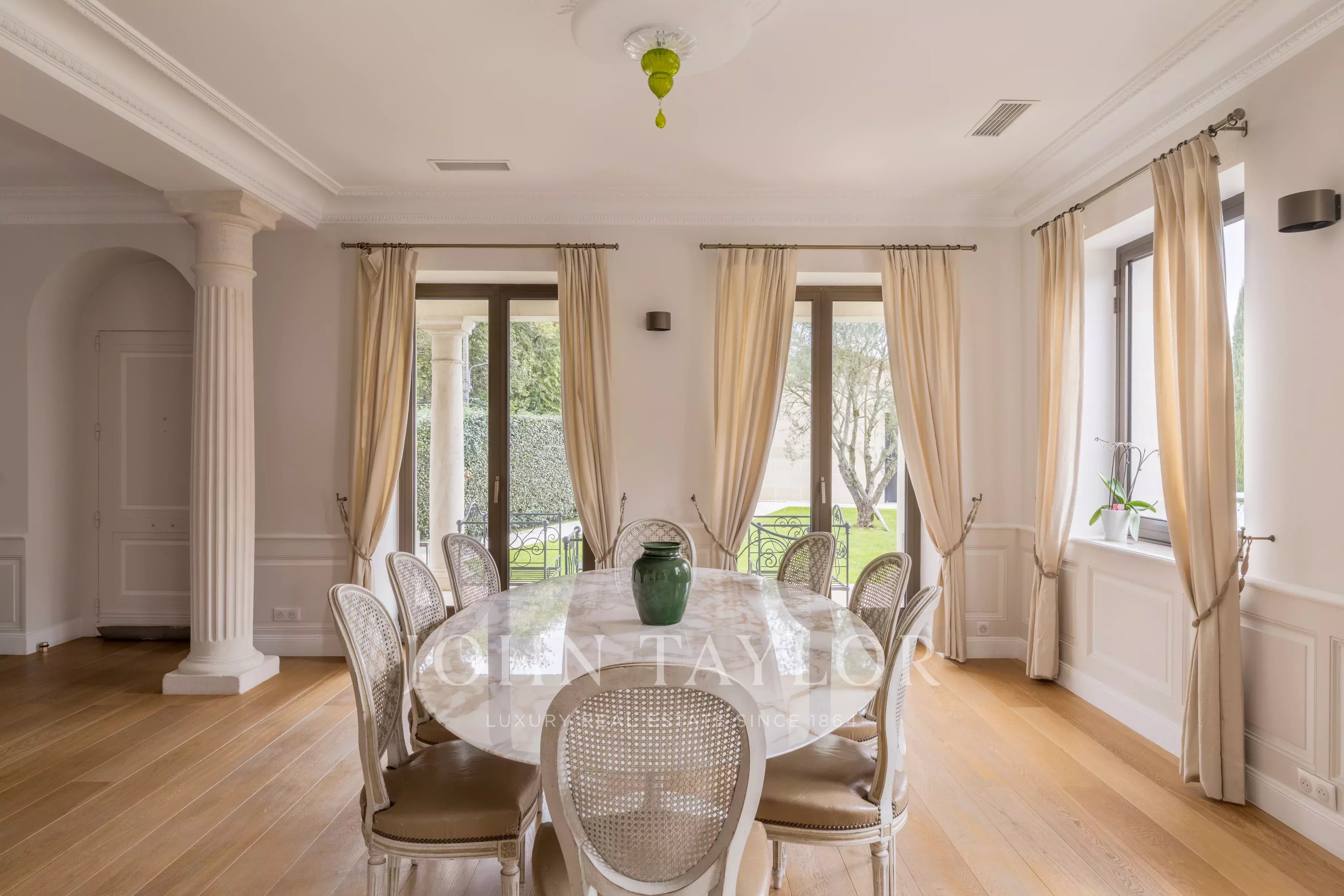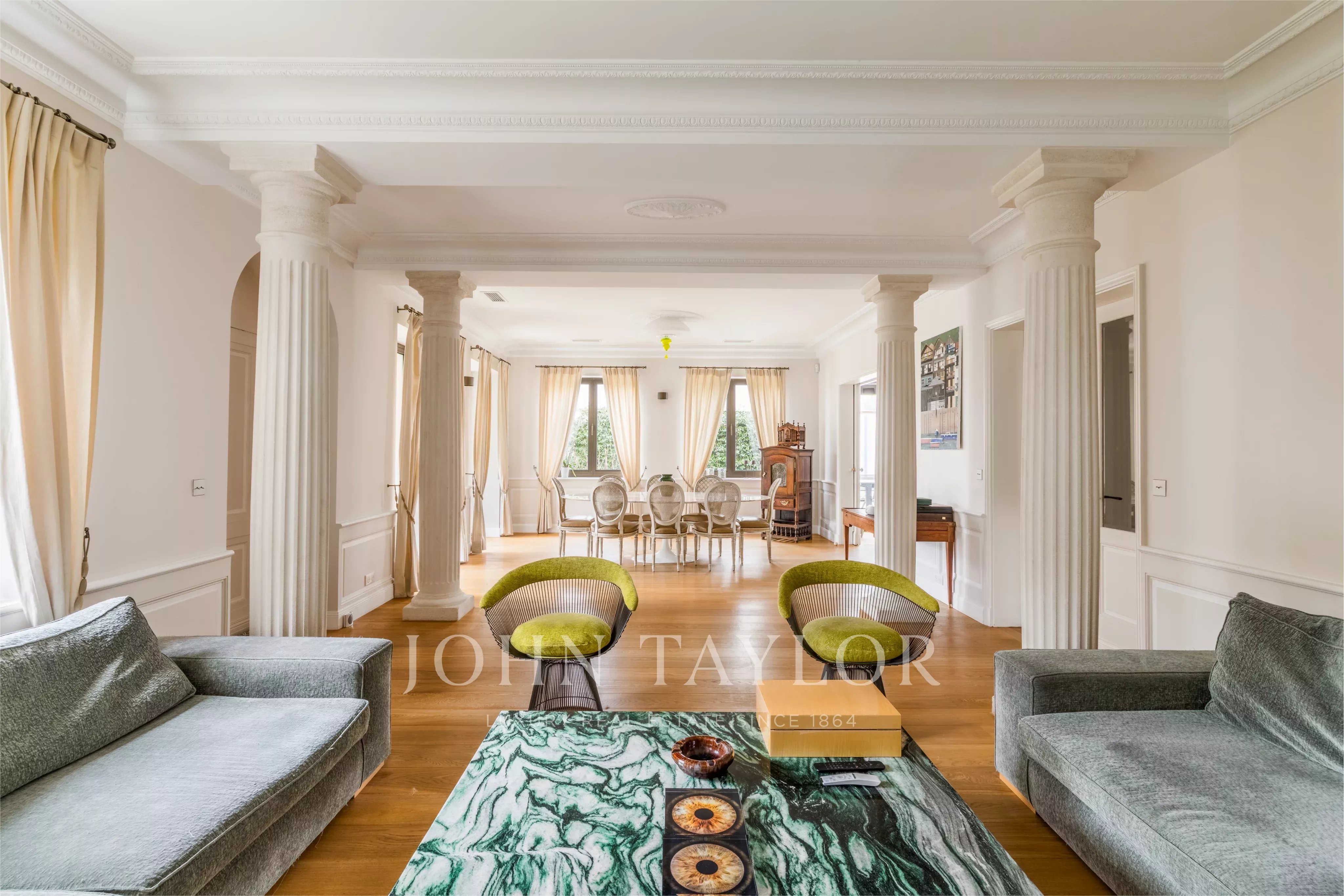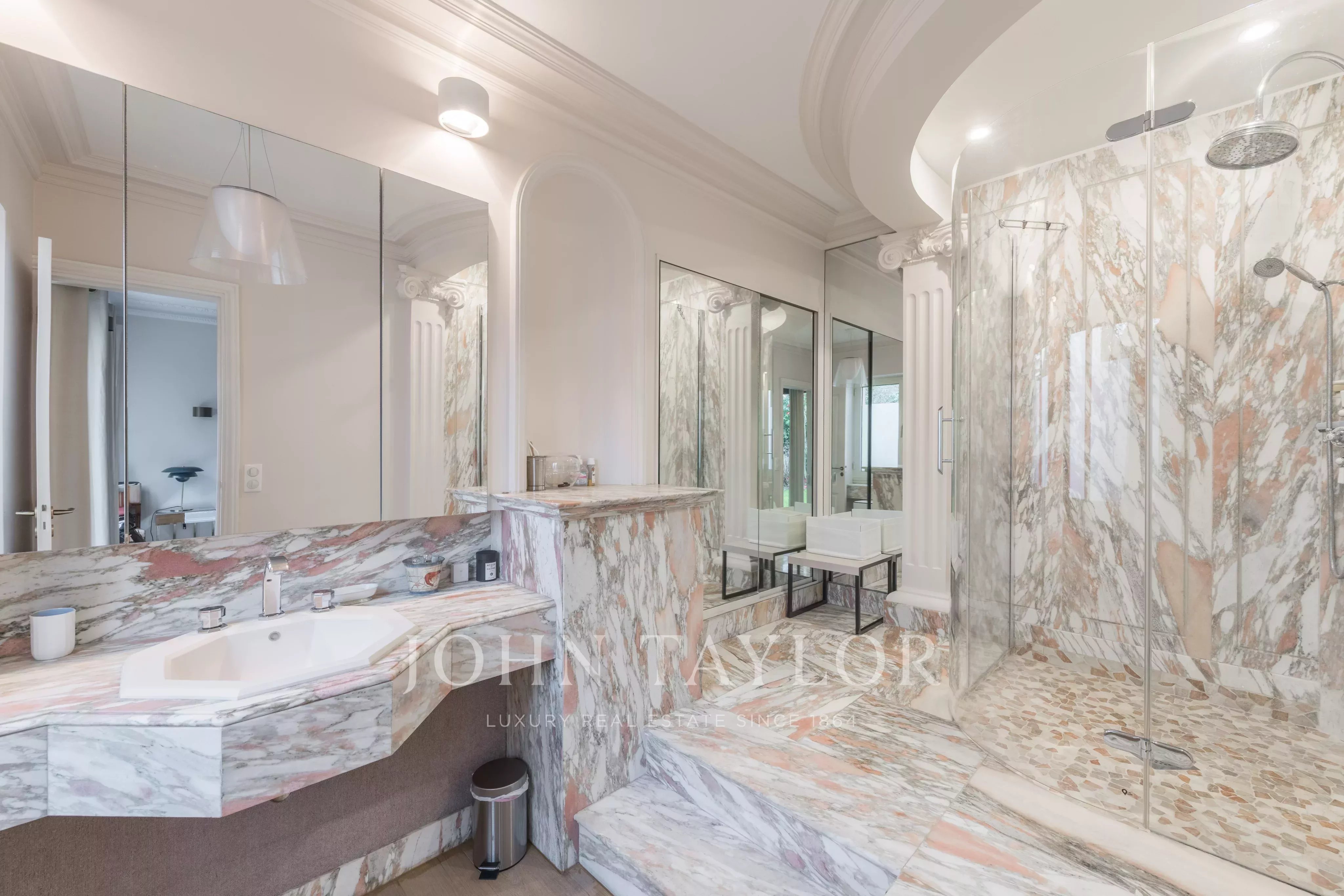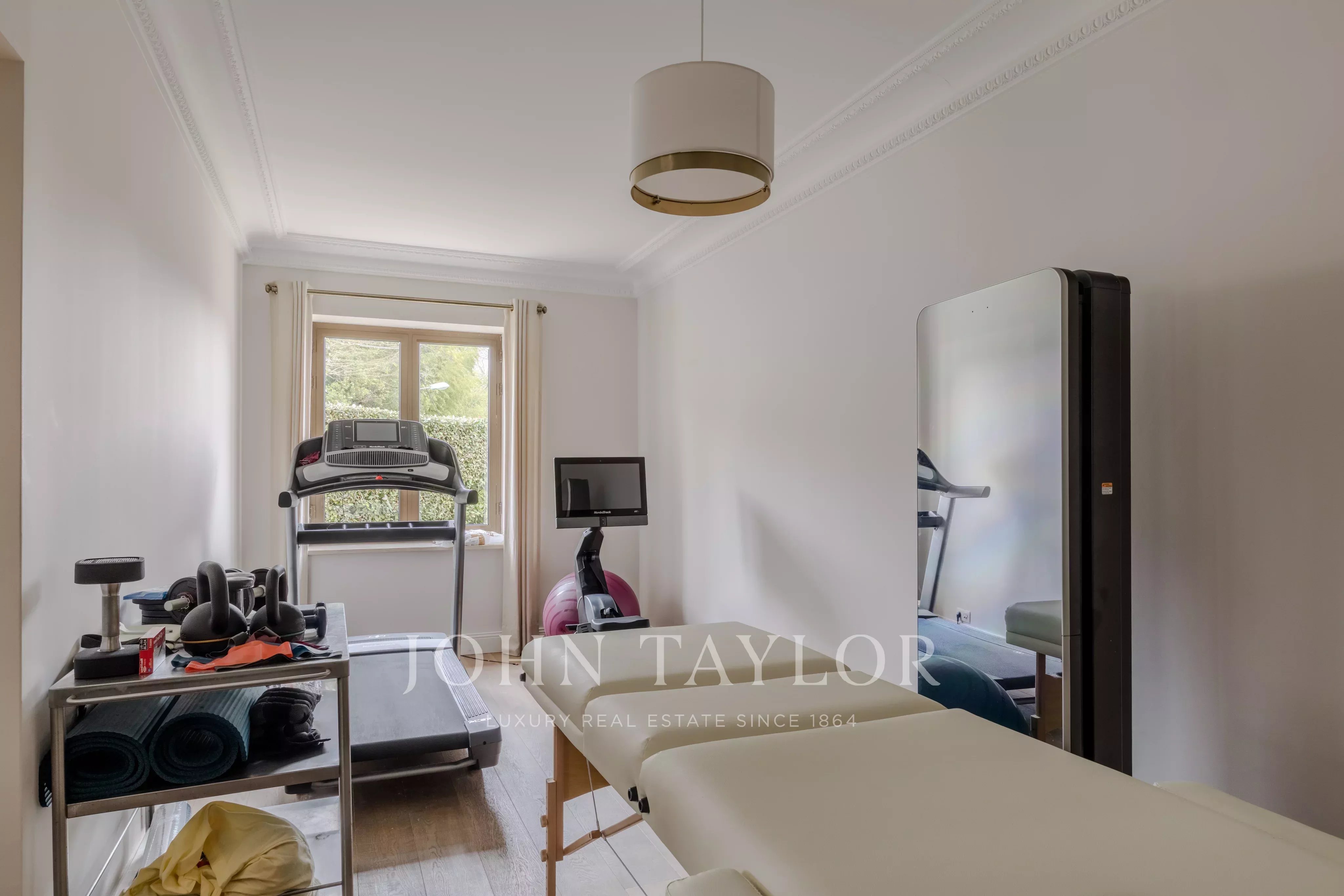 A partir do momento em que se entra, os volumes generosos e a luminosidade dos espaços habitacionais são sedutores: uma sala de televisão, uma vasta sala de jantar, uma cozinha separada totalmente equipada e um escritório constituem a primeira unidade acolhedora e simpática. Uma segunda área de receção de cerca de 80 m², com arrecadação adjacente, oferece um potencial de conversão notável (suite principal adicional, sala de cinema, área de lazer, etc.). Uma sala de desporto e um quarto com casa de banho privativa completam este nível, dando-lhe a oportunidade de viver num só nível.