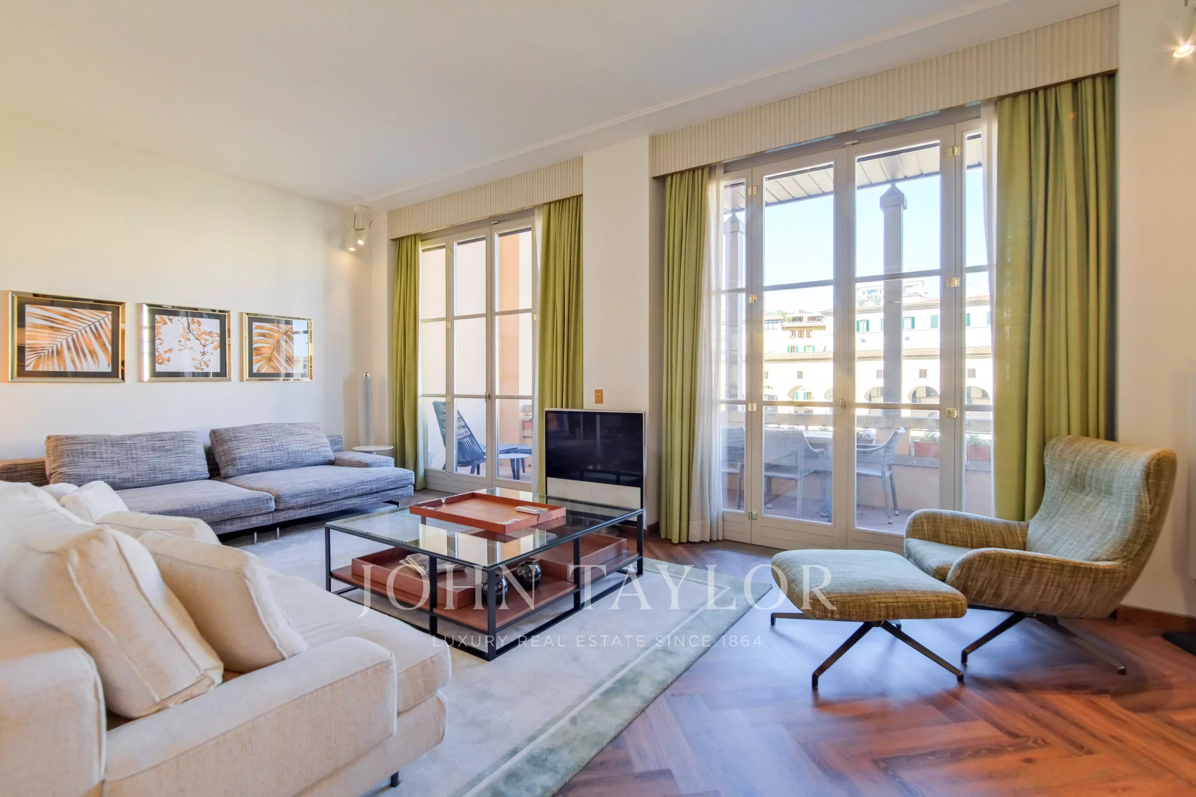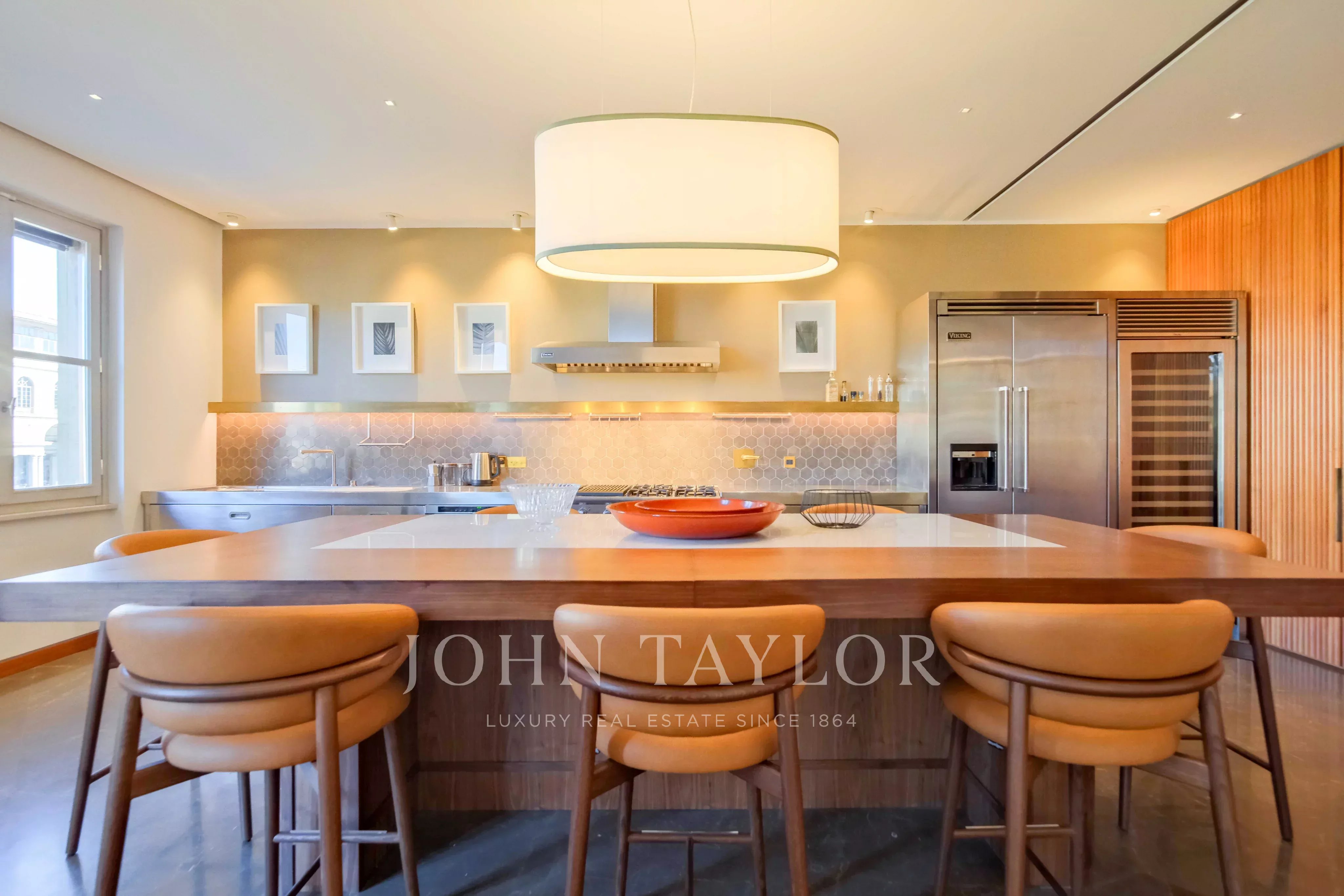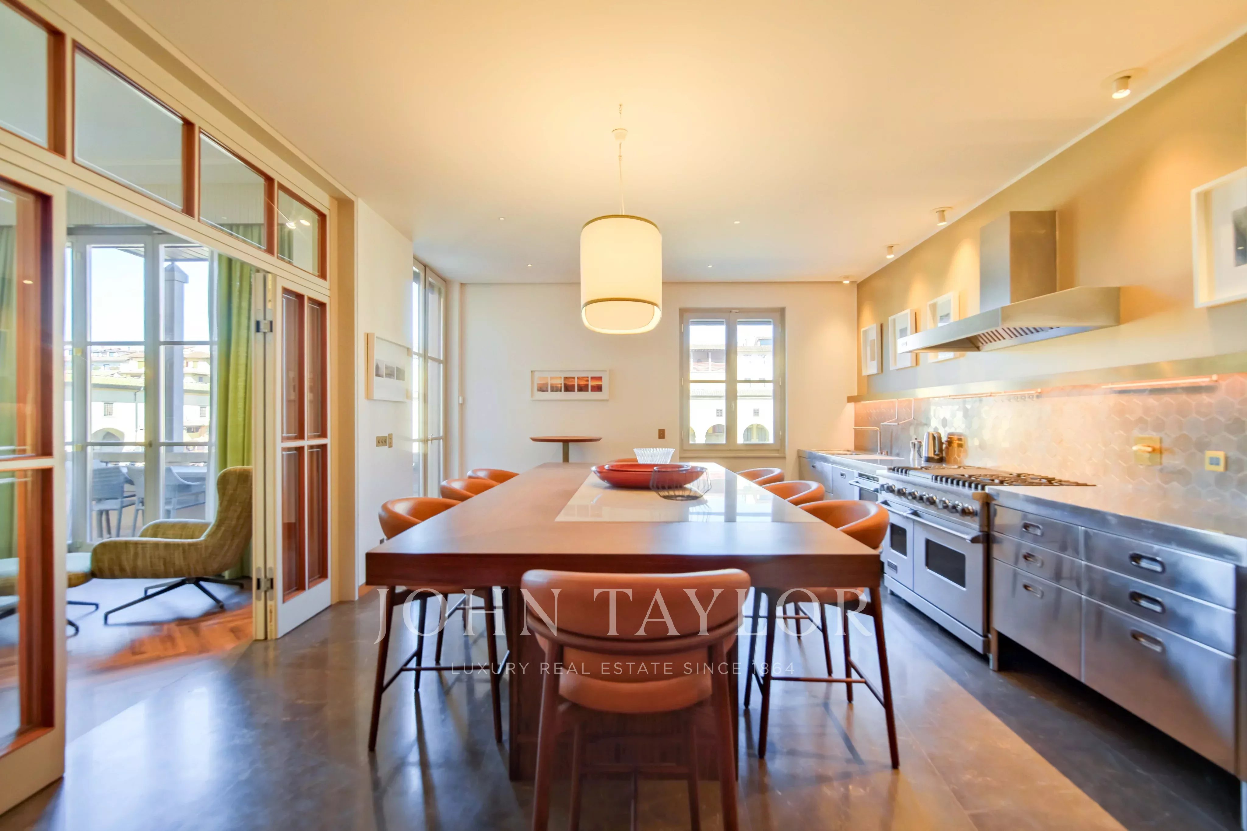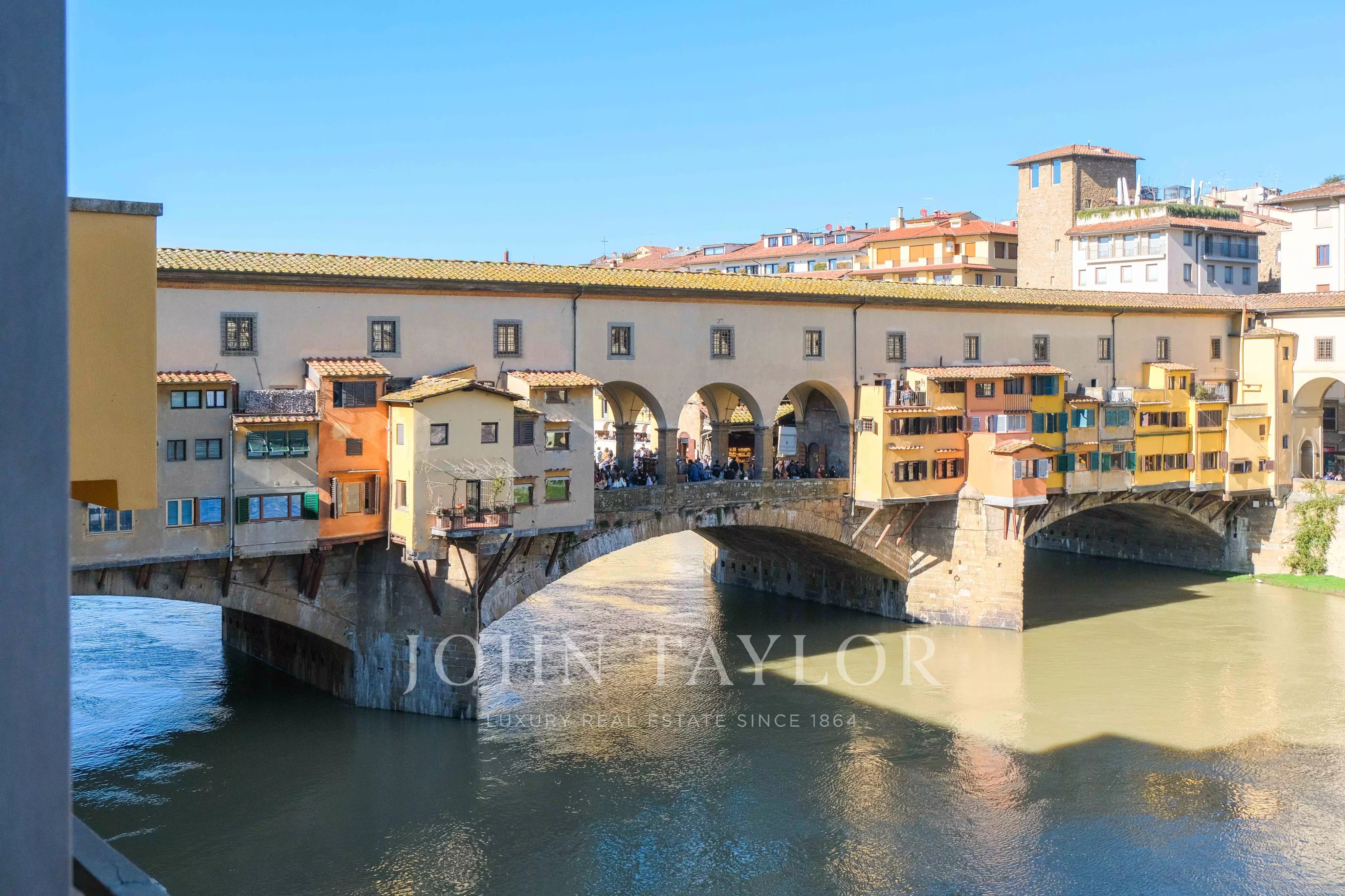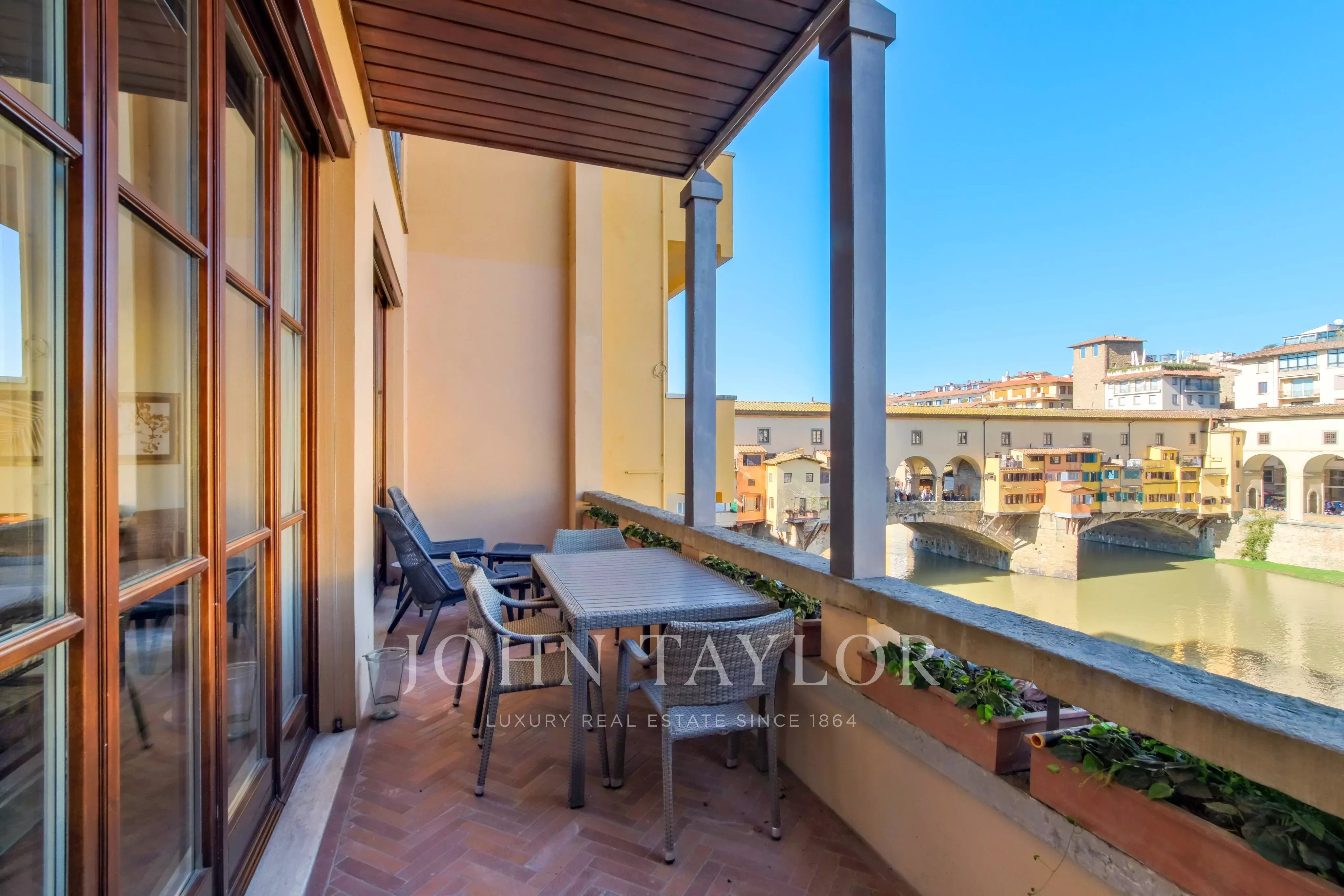 Uma residência italiana exclusiva de rara elegância, com cerca de 200 metros quadrados, embelezada por um magnífico terraço com vista para a Ponte Vecchio e o Arno.