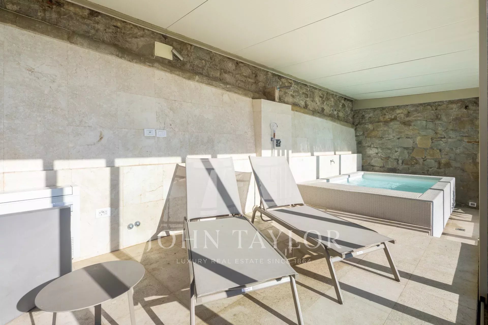 No exterior, o jardim privado convida a desfrutar de momentos de paz e descontração rodeados pela natureza. Para além disso, a zona de bem-estar com jacuzzi é ideal para se regenerar após um longo dia. Esta moradia representa uma oportunidade única para quem procura uma residência exclusiva numa das zonas mais cénicas e evocativas de Itália.