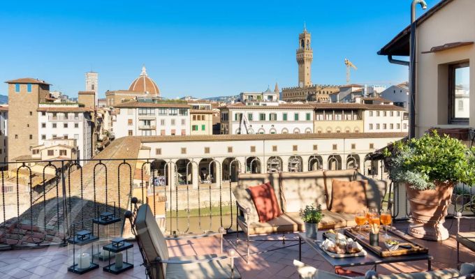 Este elegante apartamento, localizado nas margens do Arno, em Florença, oferece vistas ...