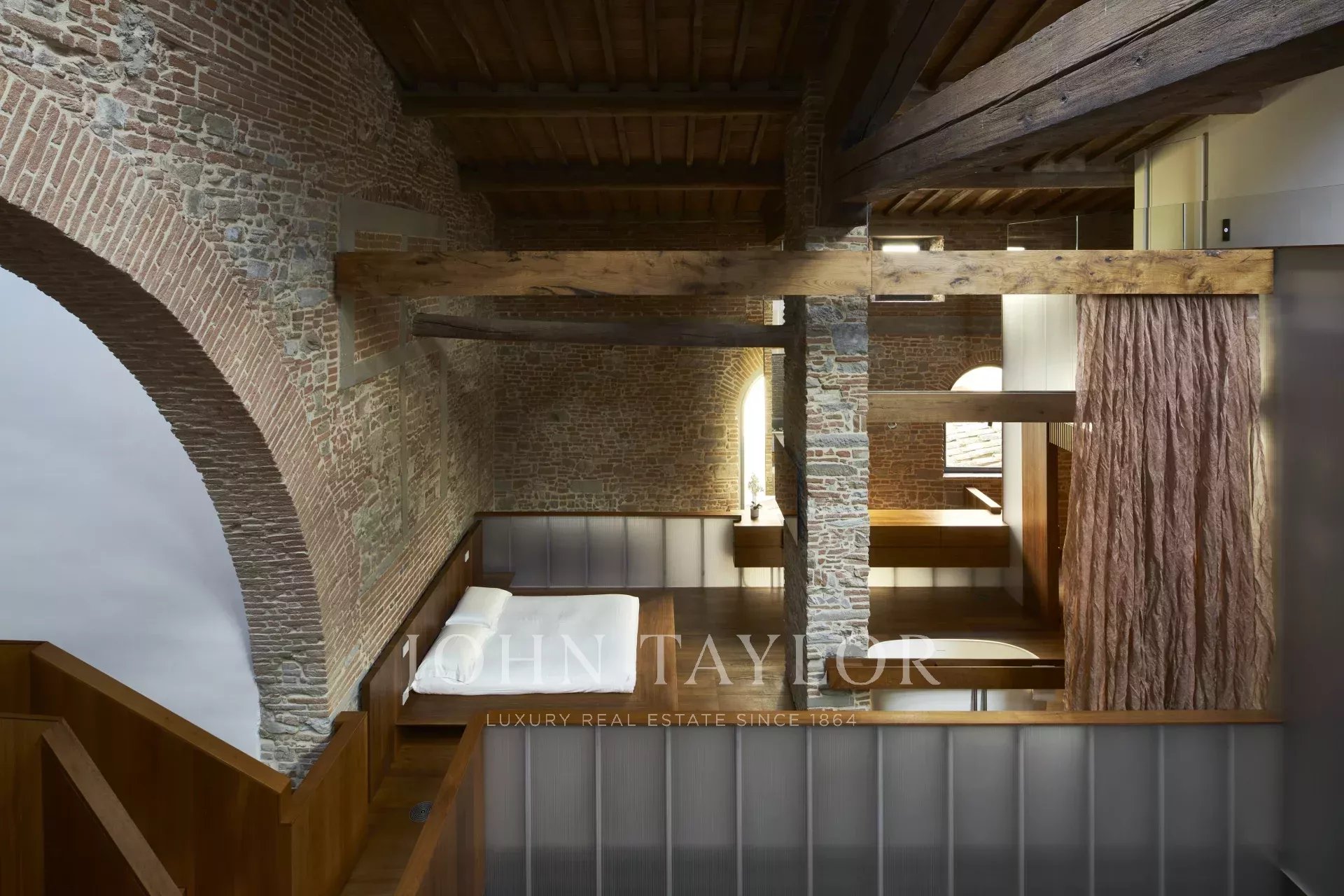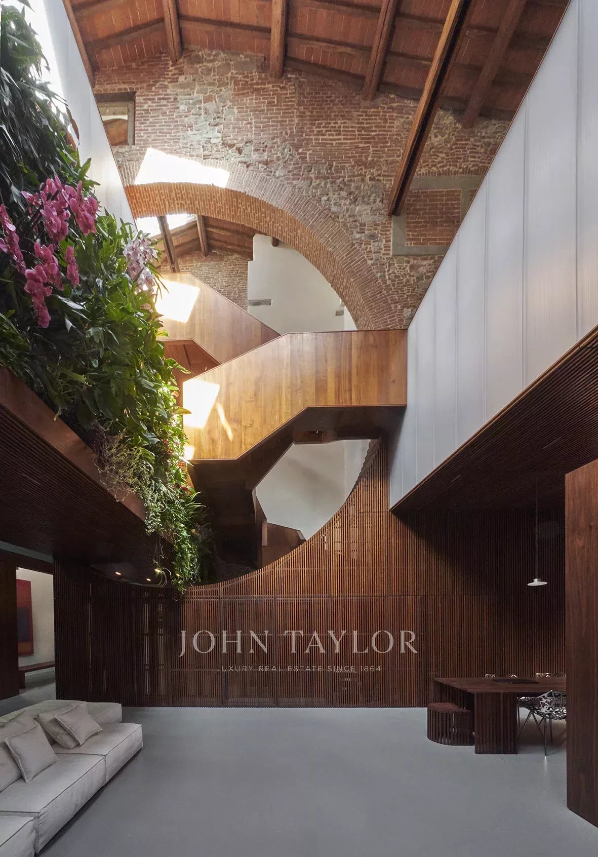 Originalmente um teatro, este notável loft estende-se por cerca de 600 m² e sofreu uma transformação completa sob o trabalho visionário de um arquiteto florentino de renome.