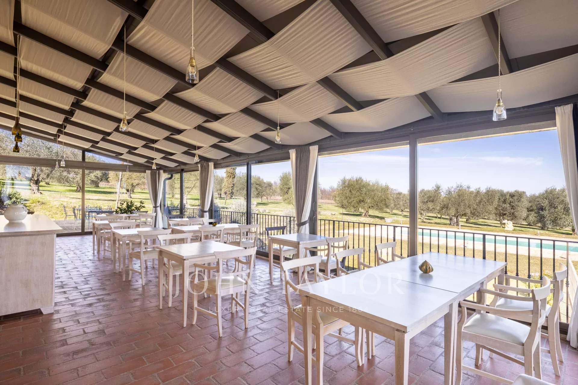 A propriedade principal é uma villa totalmente renovada, com vários salões, uma cozinha, 8 quartos de hóspedes e 2 quartos adicionais para uso interno, cobrindo 667 m². Um anexo separado oferece mais 5 quartos de hóspedes com 150 m².