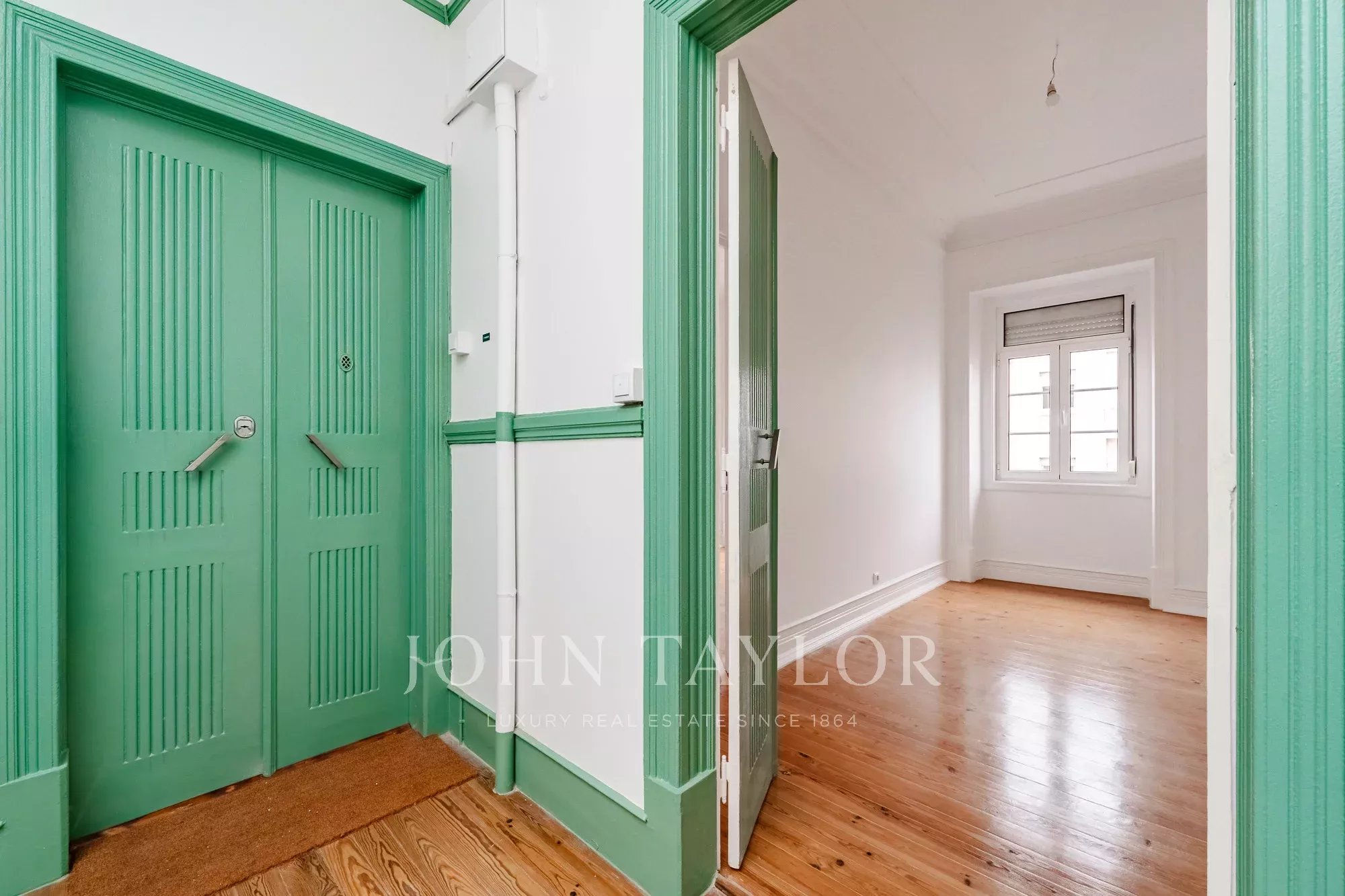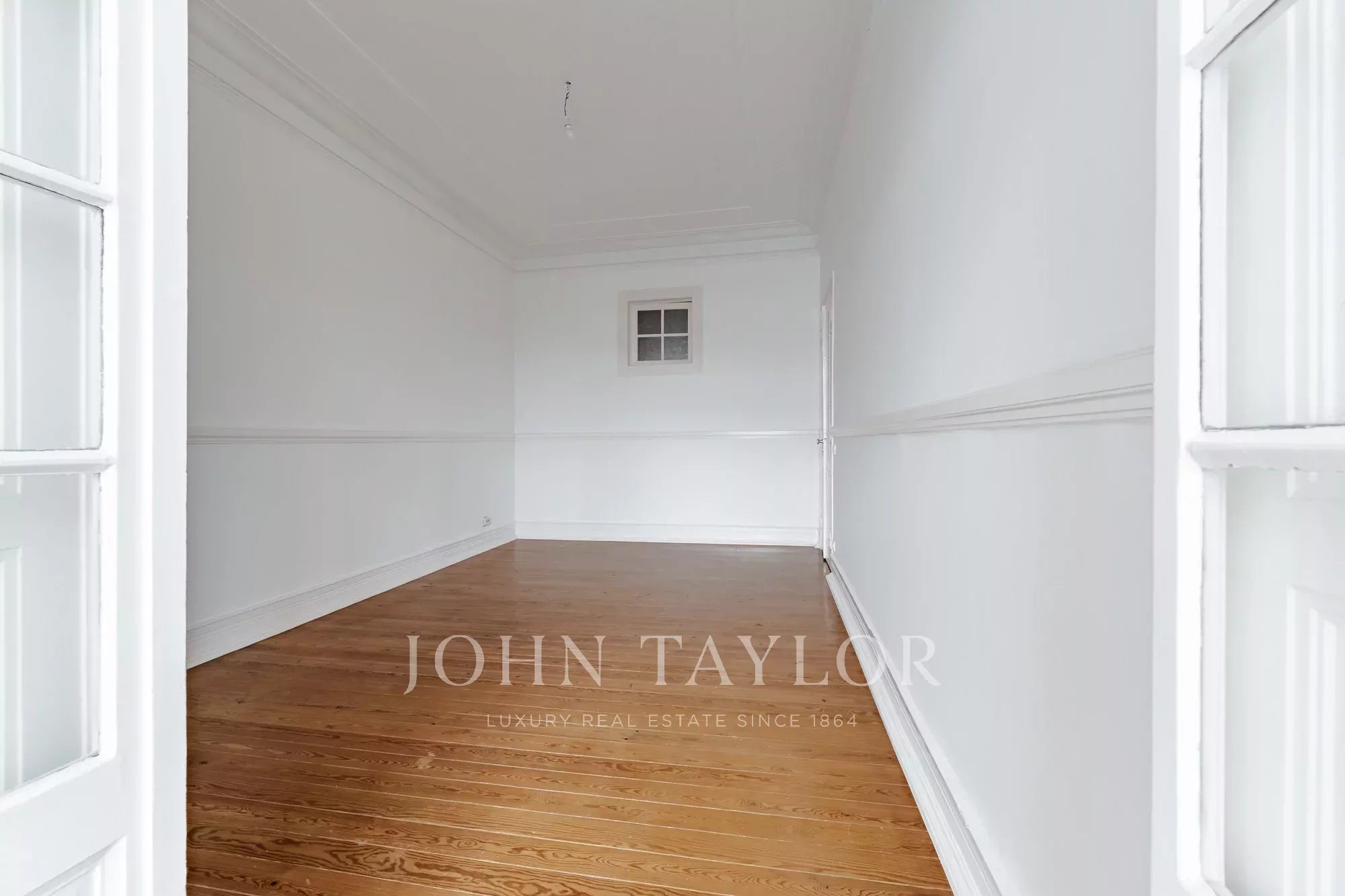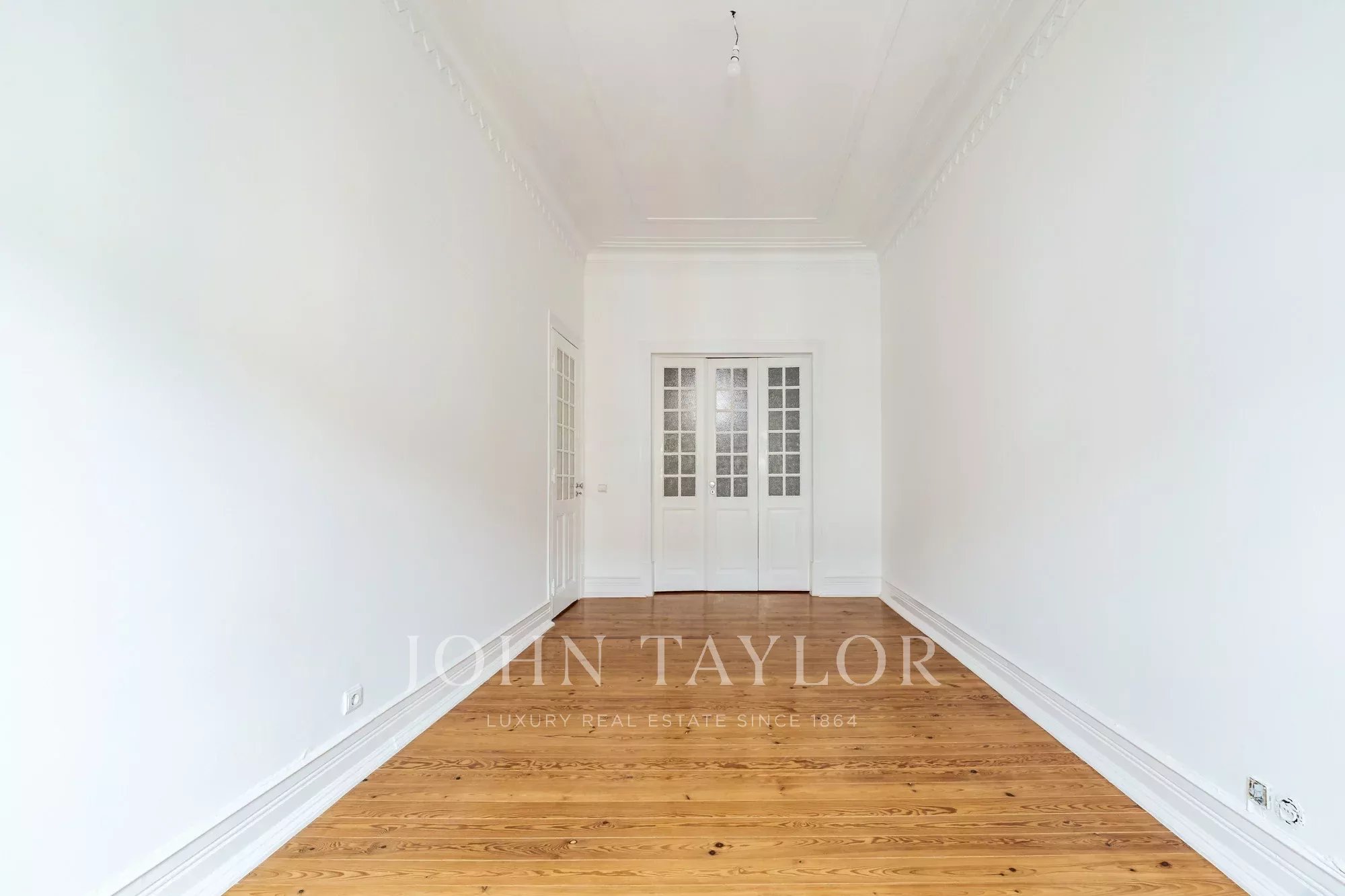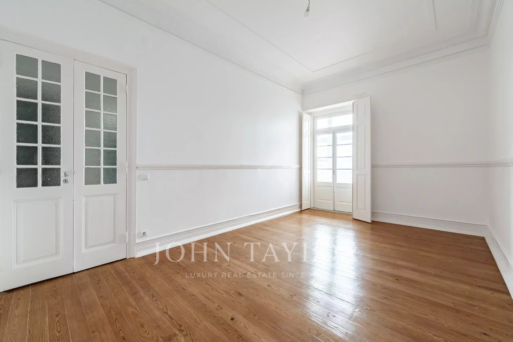 Os pavimentos em madeira envernizada, os tetos altos com 3,20 m e frisos decorativos conferem-lhe um charme clássico e acolhedor, complementado pela cozinha semi-equipada com pavimento em mosaico.