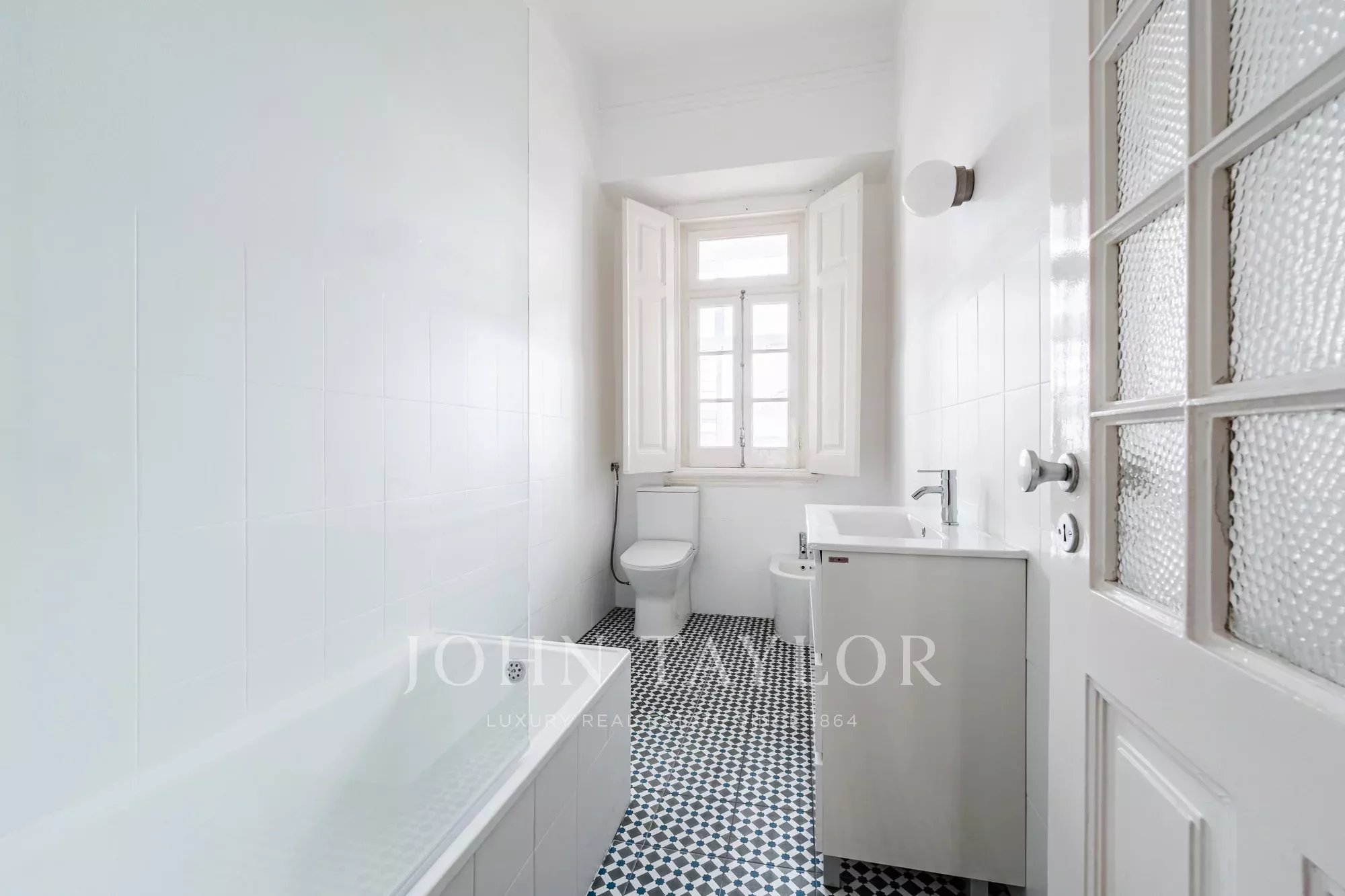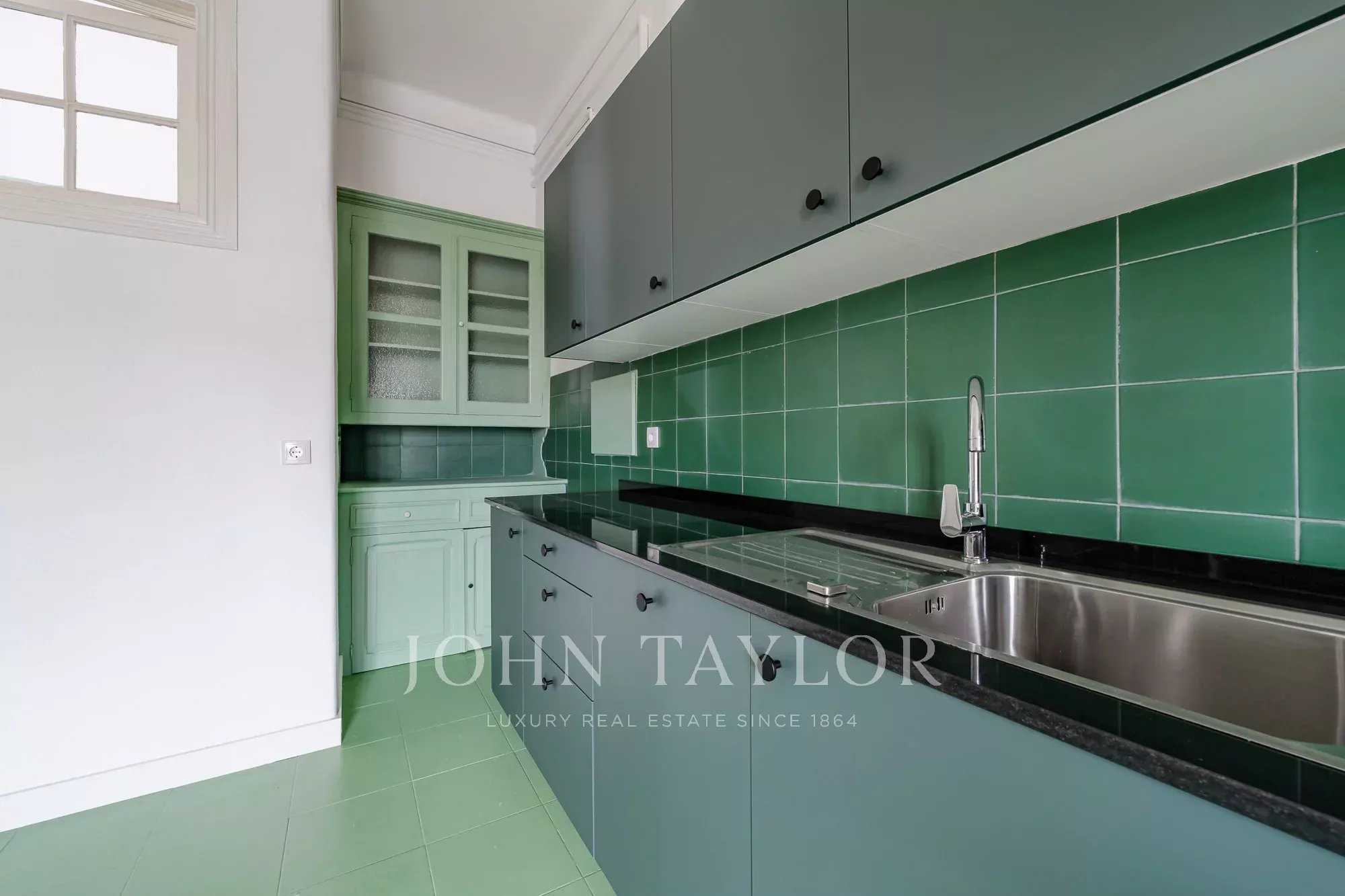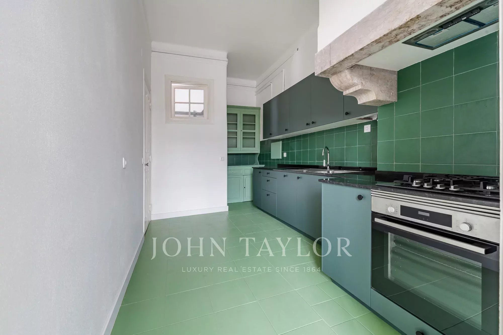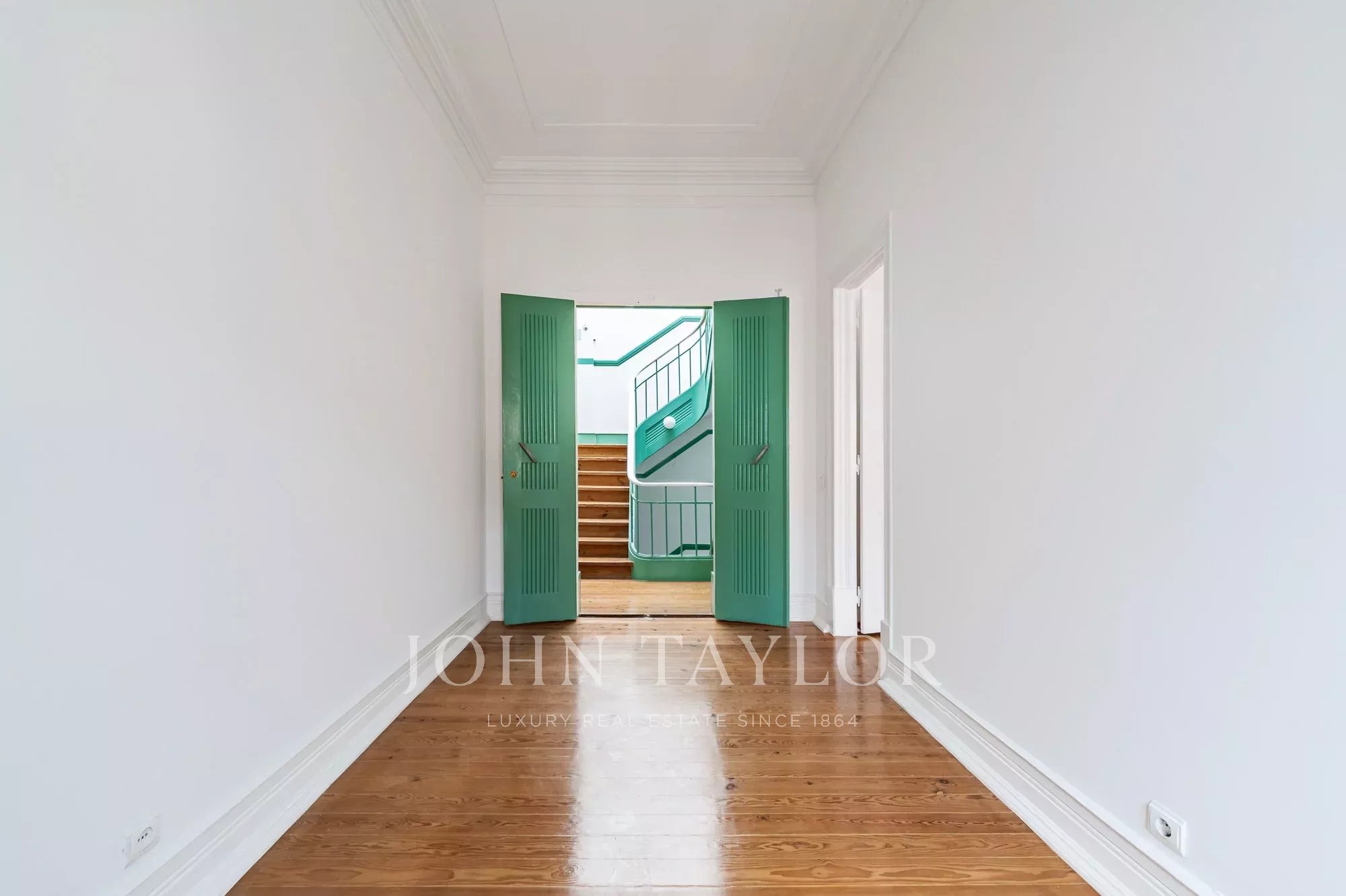 Os pavimentos em madeira envernizada, os tetos altos com 3,20 m e frisos decorativos conferem-lhe um charme clássico e acolhedor, complementado pela cozinha semi-equipada com pavimento em mosaico.