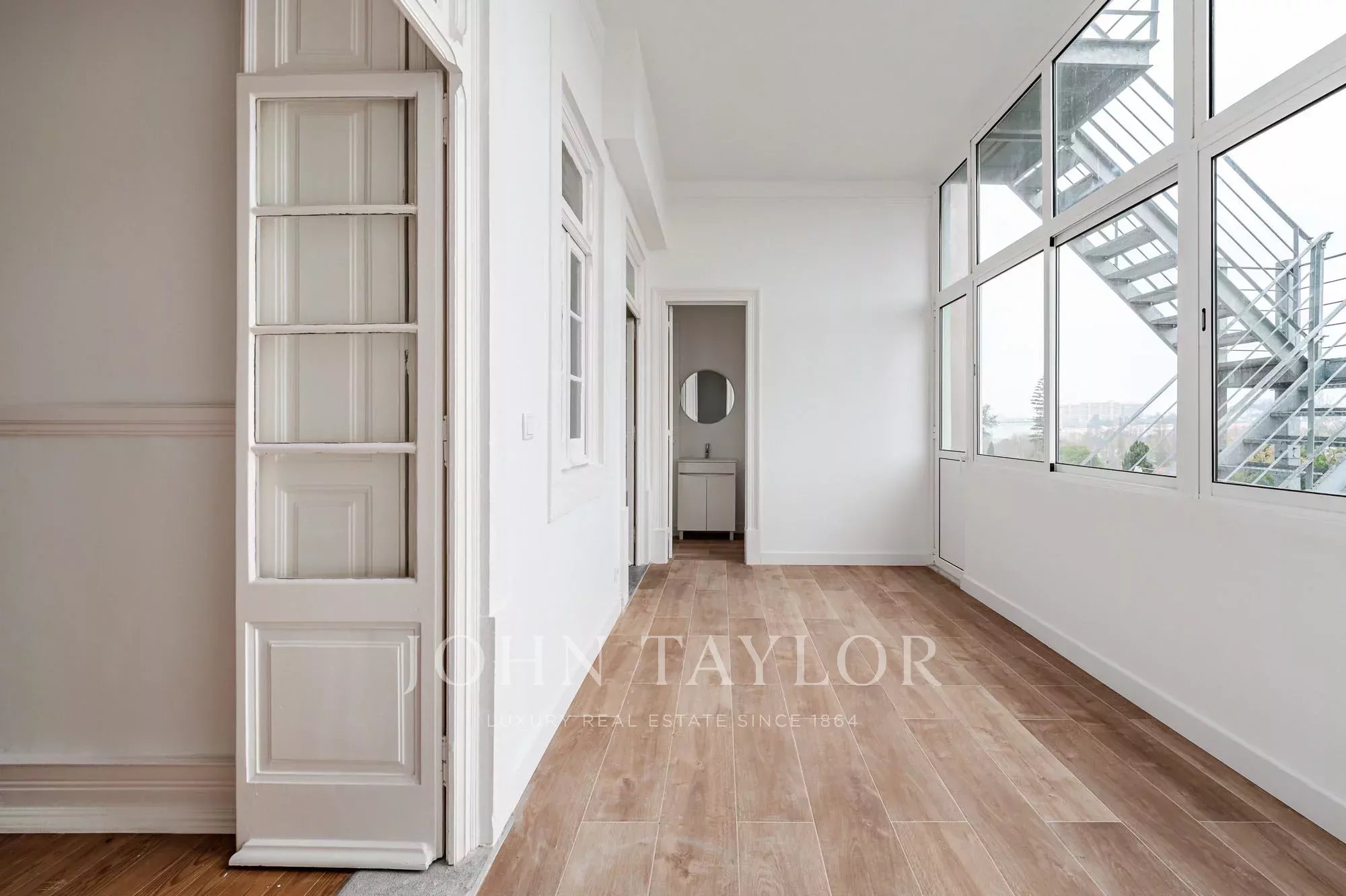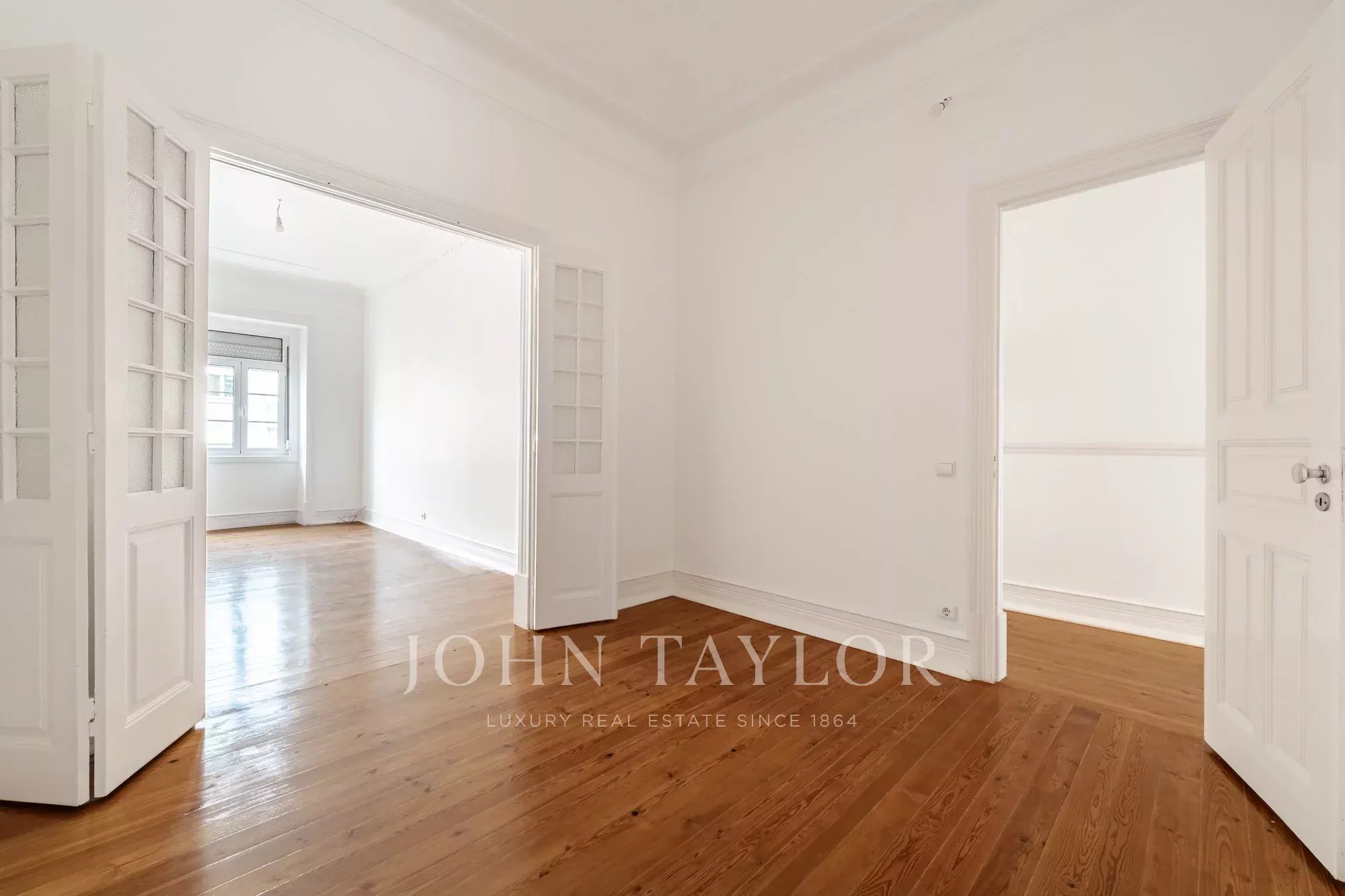 Apartamento T3+1 com 130 m², situado no 2.º andar de um edifício de arquitetura Art Déco, sem elevador, totalmente renovado. O imóvel dispõe de uma ampla sala de estar e sala de jantar, cozinha semi-equipada, três quartos, um escritório, marquise, zona de lavandaria com lavabo social e despensa.