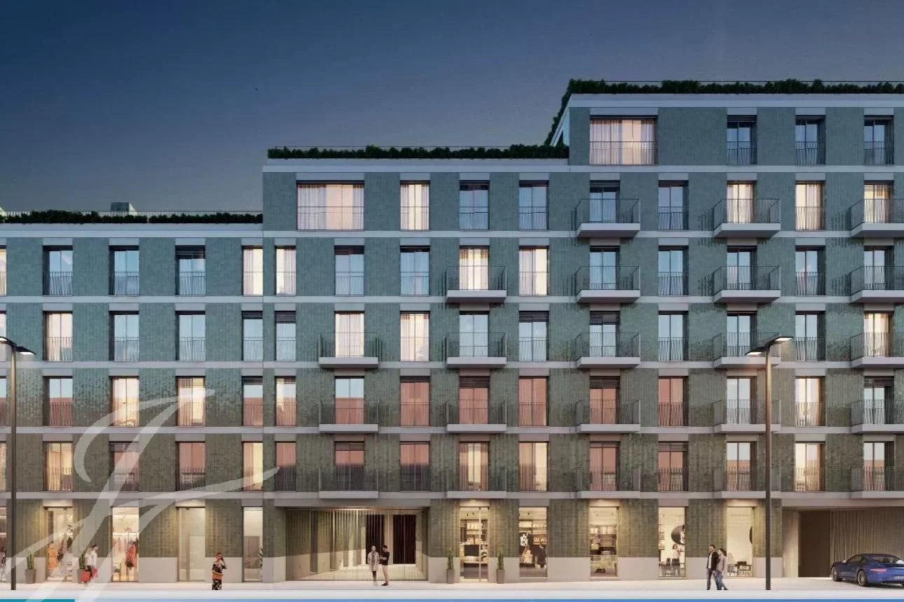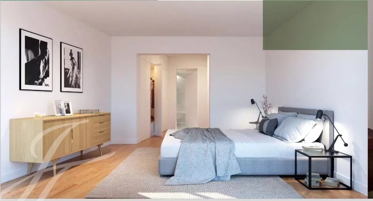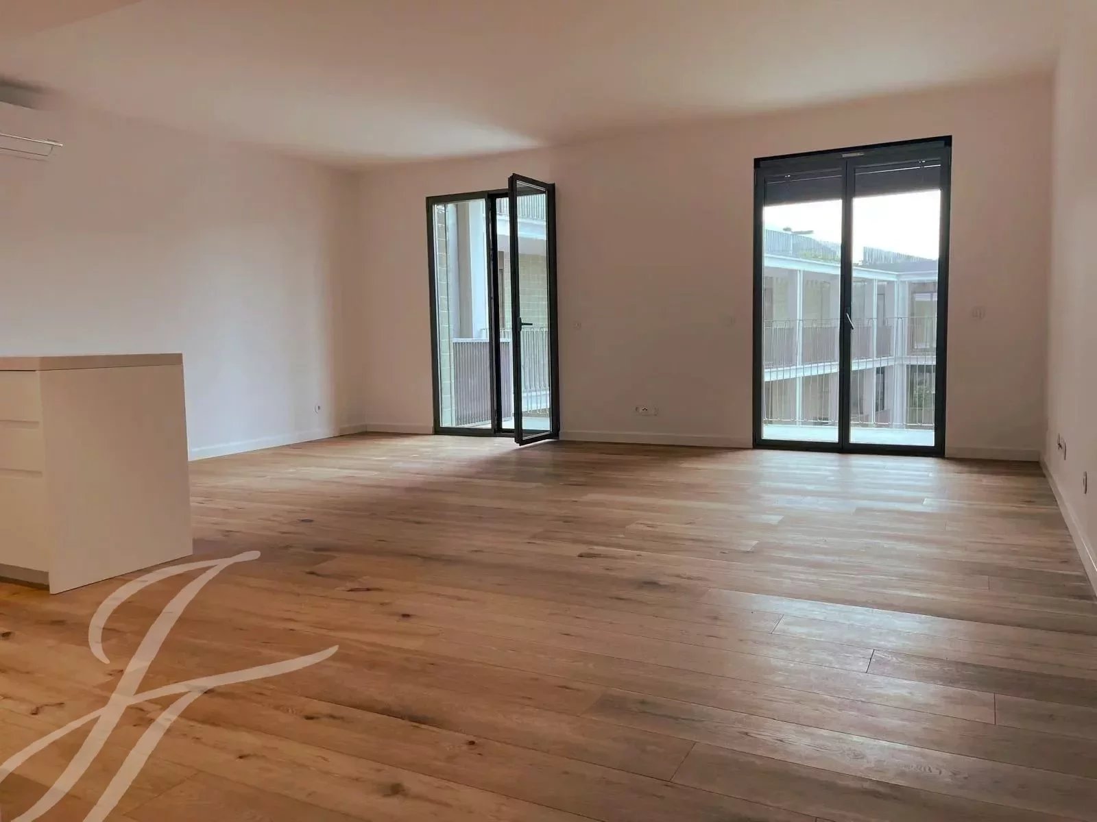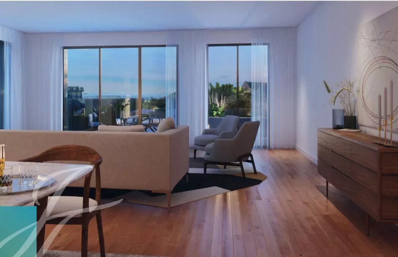 A tipologia do apartamento oferece uma espaçosa sala de estar, uma moderna cozinha aberta totalmente equipada com electrodomésticos Bosch encastrados (frigorífico, forno, máquina de lavar roupa, máquina de lavar louça e micro-ondas).